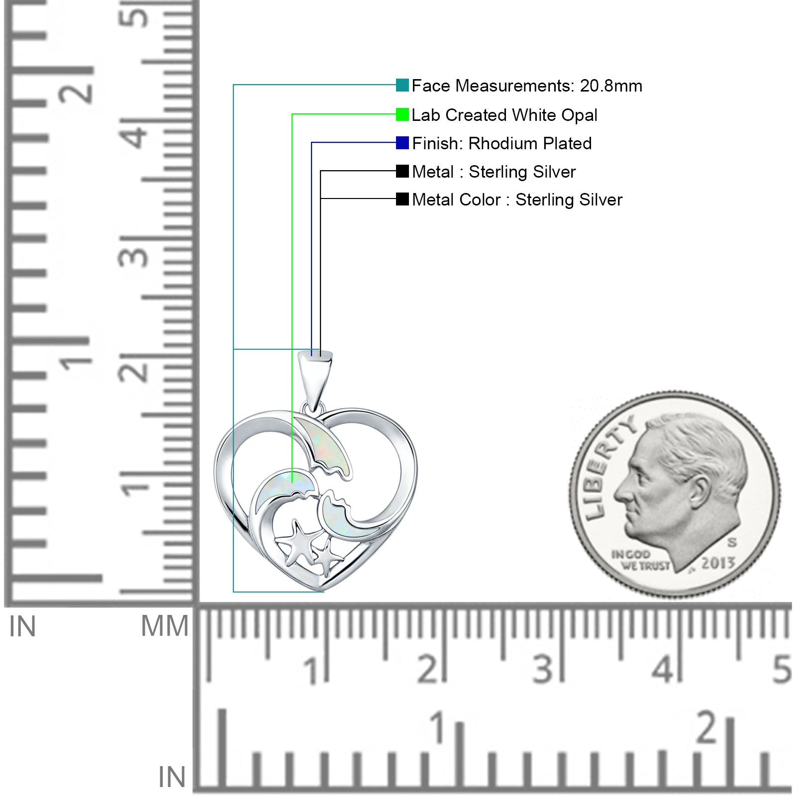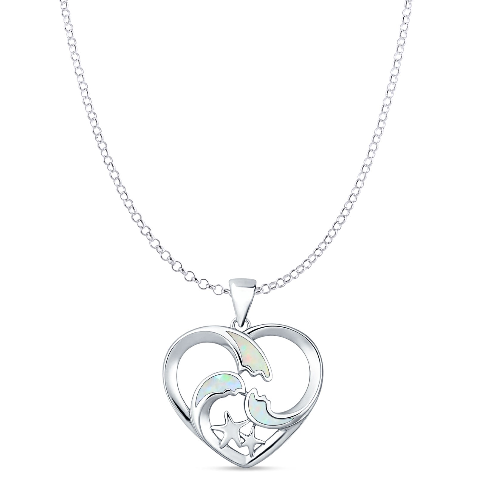 Lab Created White Opal Heart & Star Pendant Rolo Chain Necklace 925 Sterling Silver
