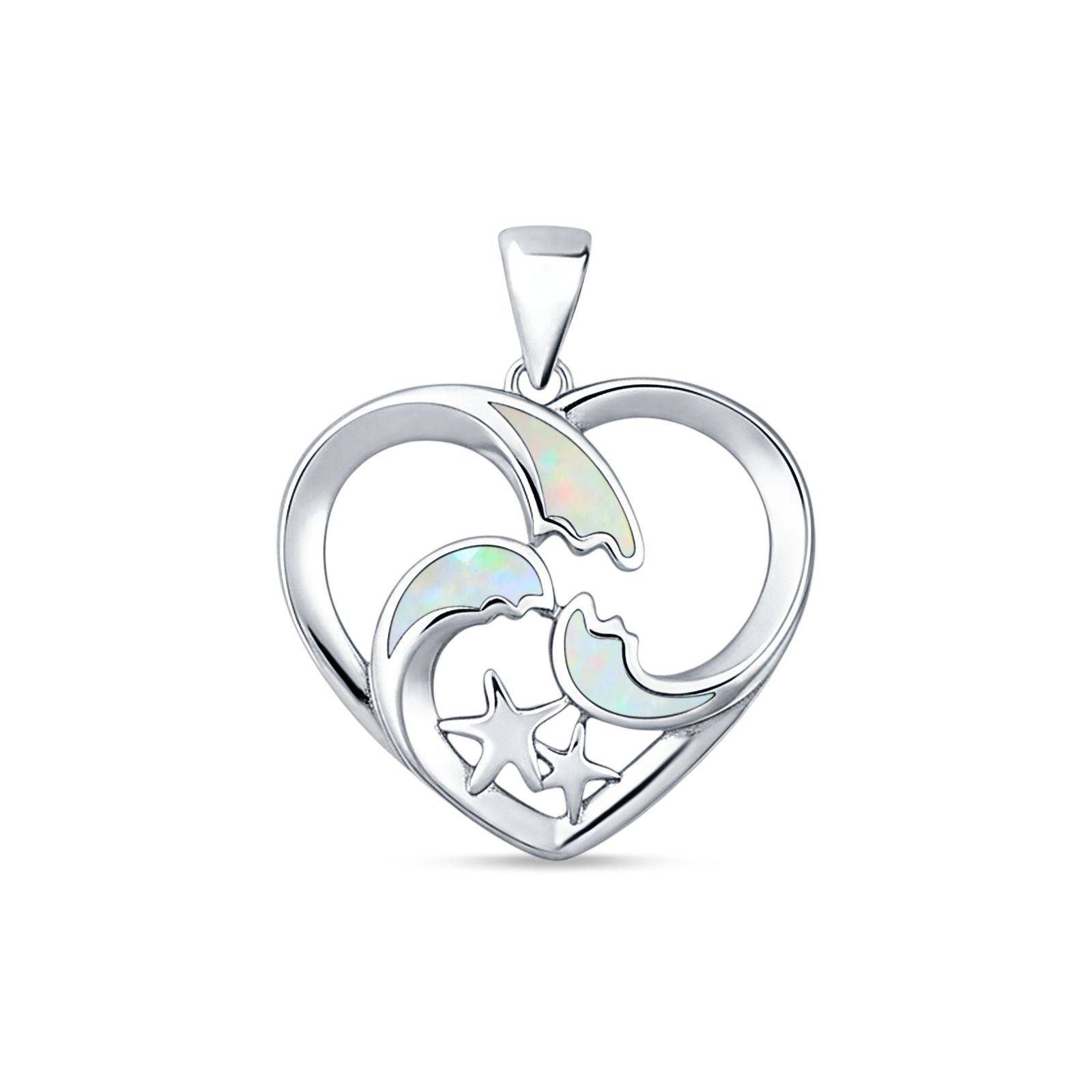 Style: Lab Created White Opal Heart & Star Pendant Necklace