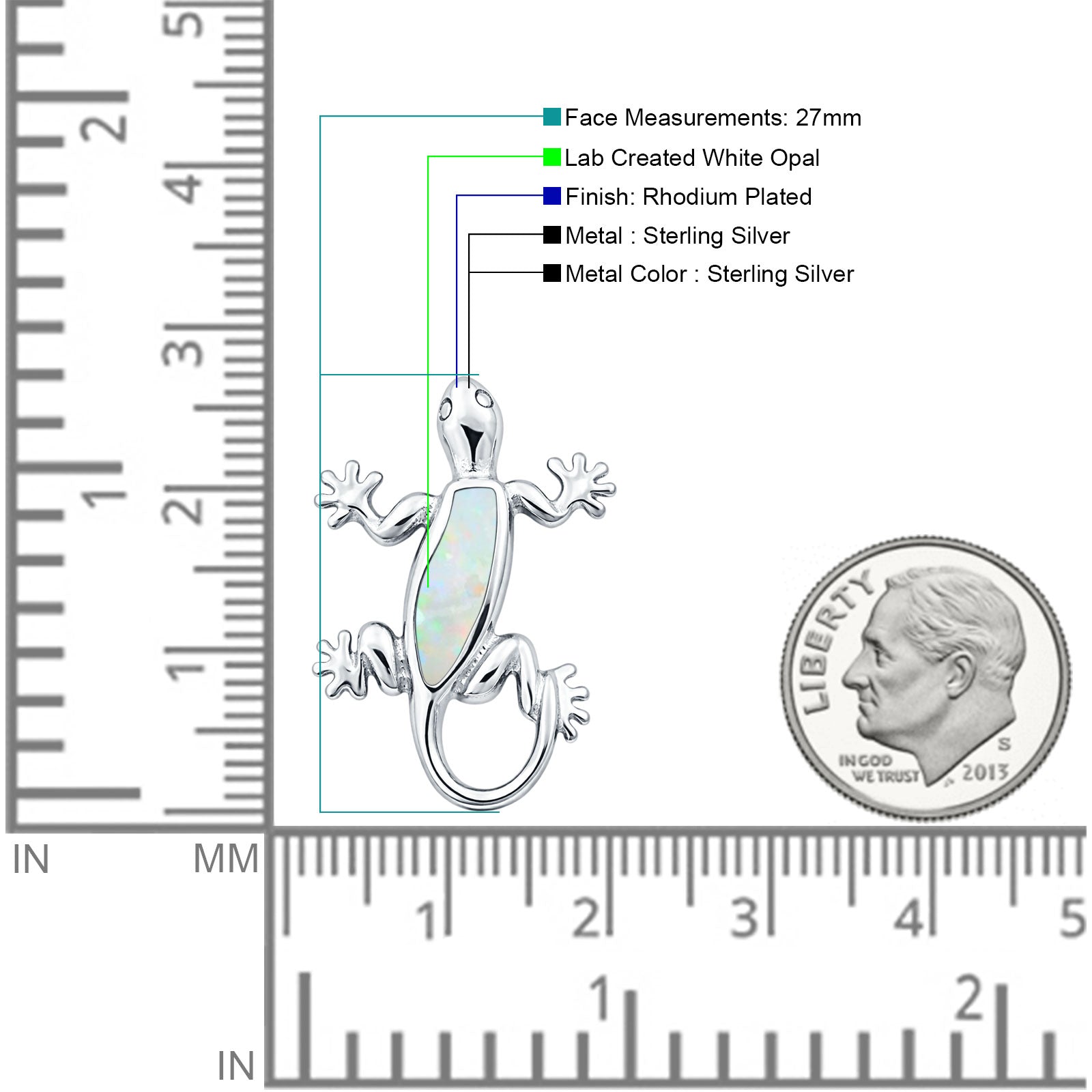 Style: Lab Created White Opal Lizard Pendant Necklace