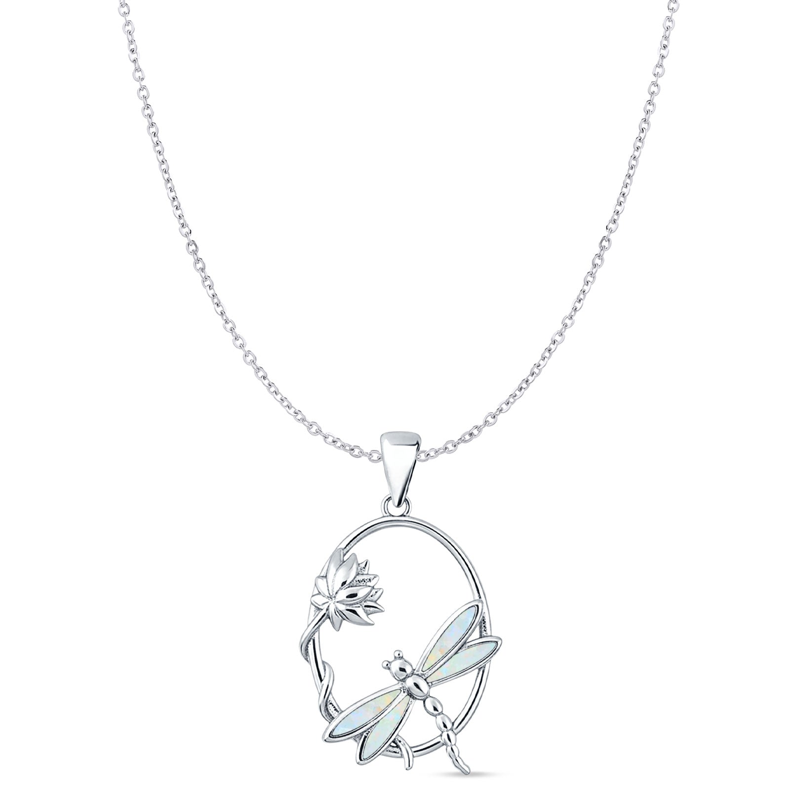 Style: Lab Created White Opal Lotus & Dragonfly Pendant Necklace