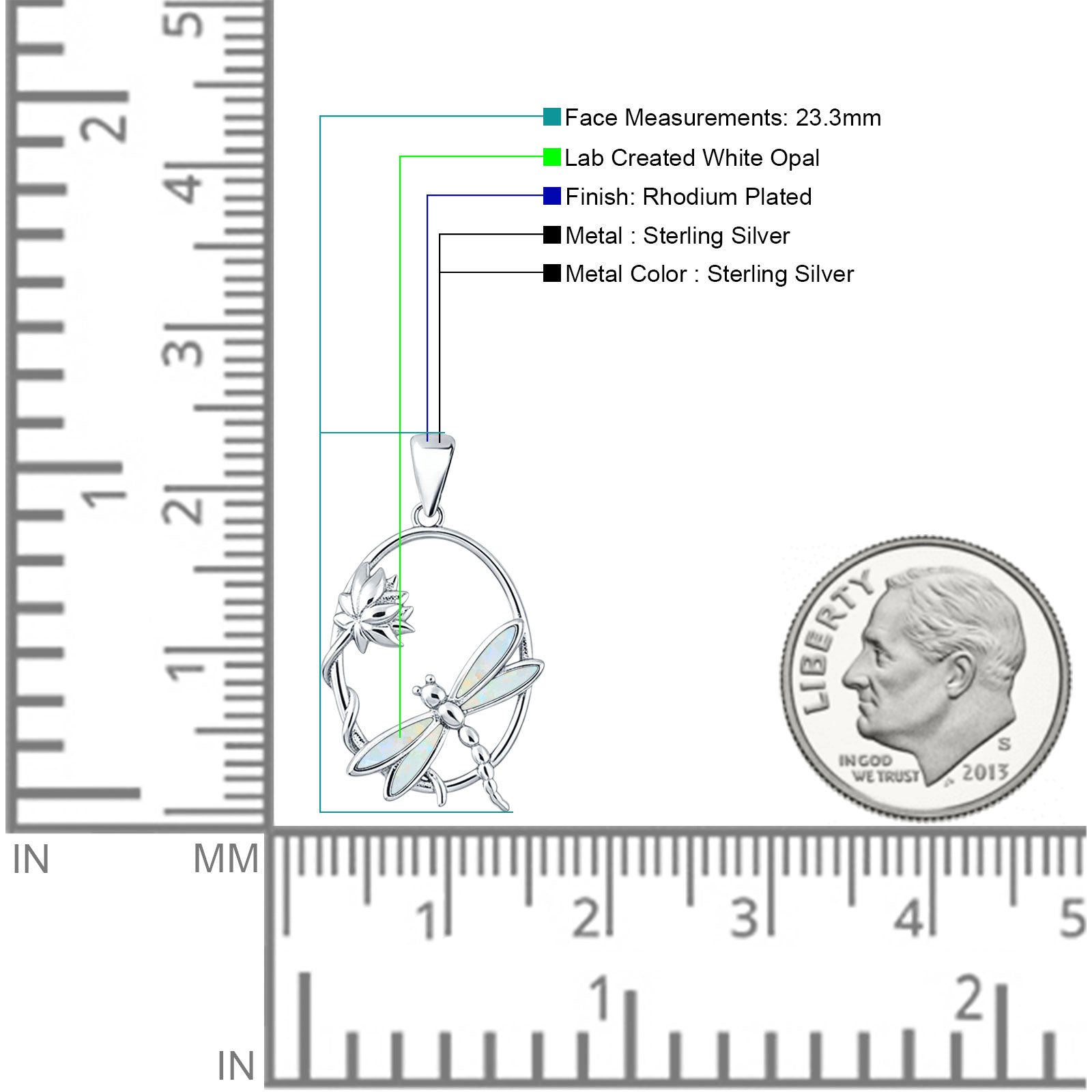 Lab Created White Opal Lotus & Dragonfly Pendant Cable Chain Necklace 925 Sterling Silver