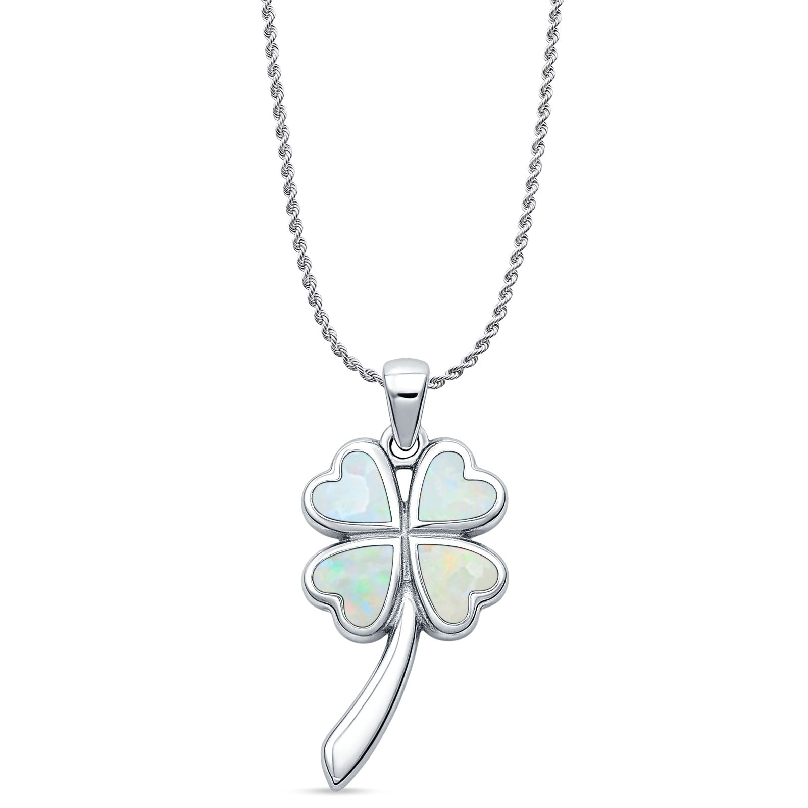 Lab Created White Opal Plumeria Heart Pendant Rope Chain Necklace 925 Sterling Silver