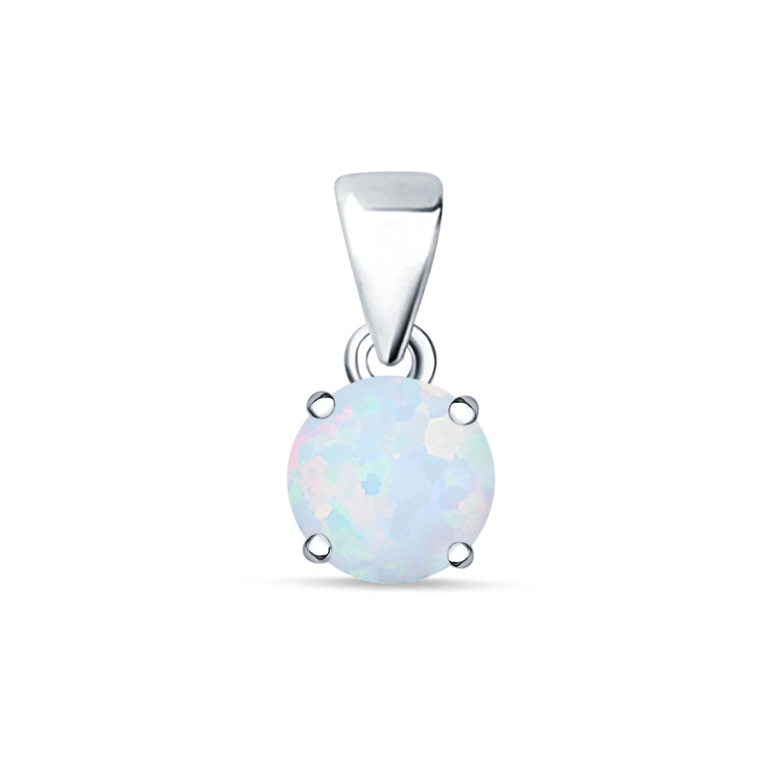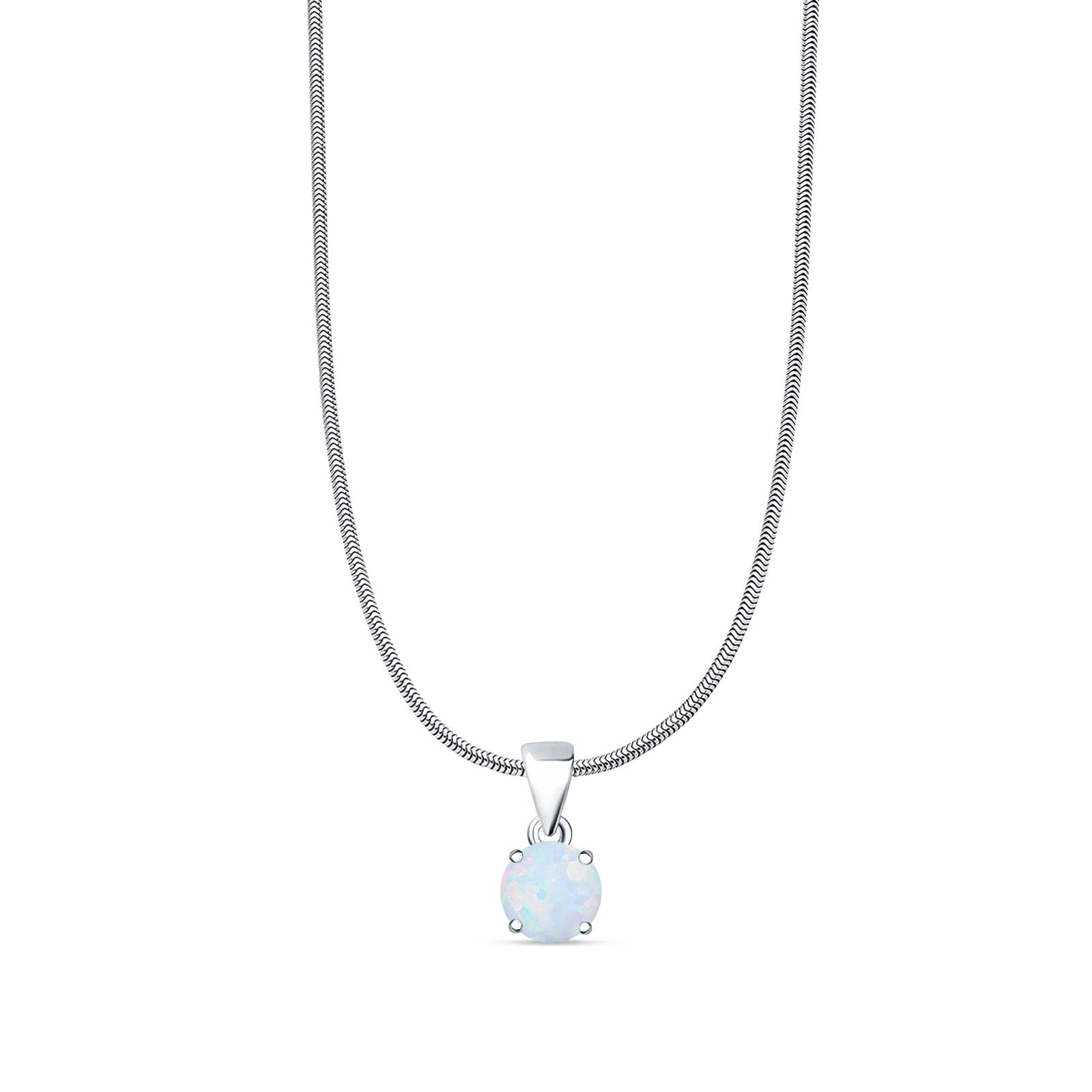 Lab Created White Opal Round Pendant Snake Chain Necklace 925 Sterling Silver