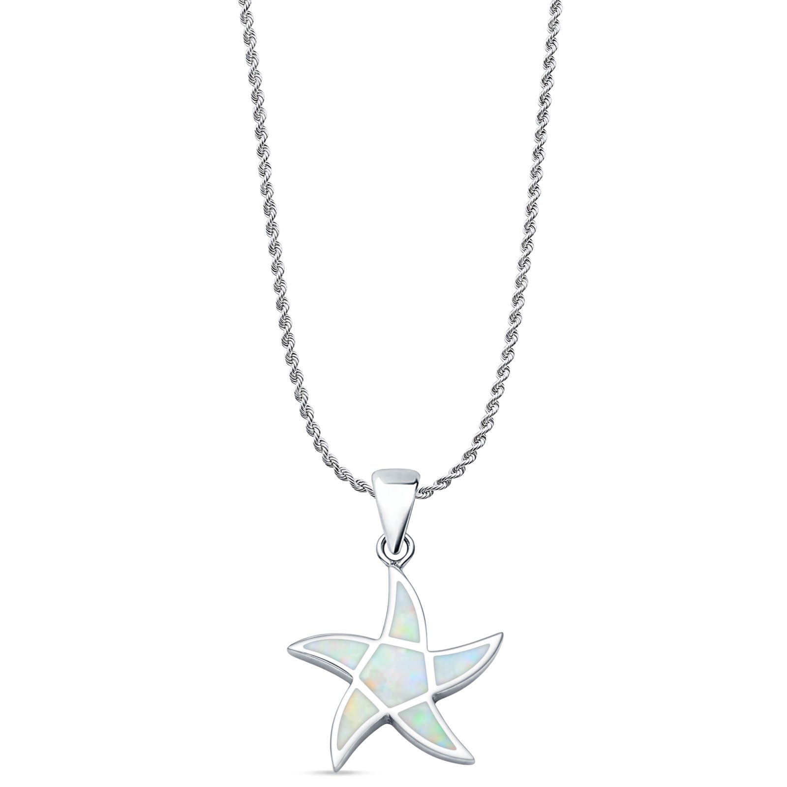 Style: Lab Created White Opal Starfish Pendant Necklace