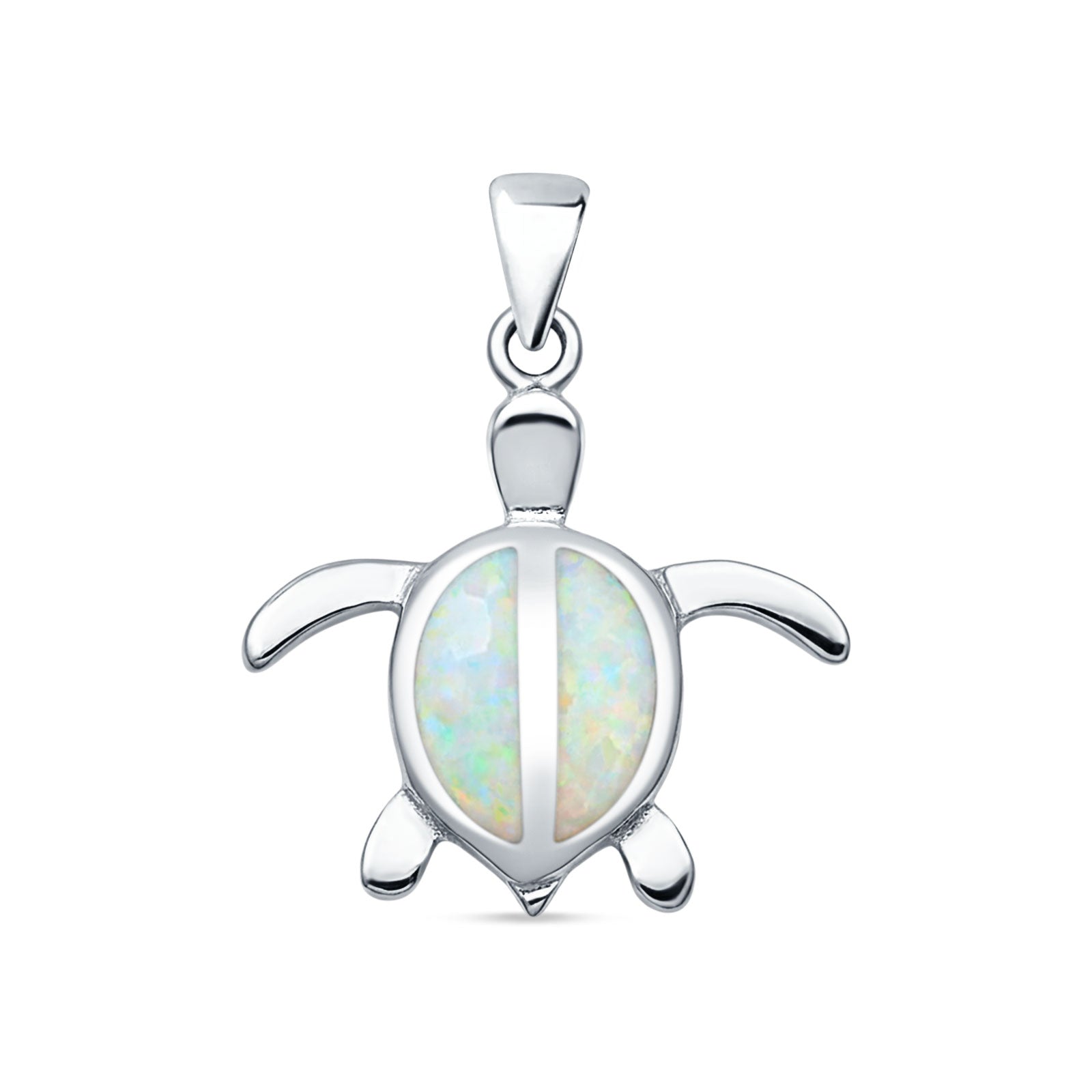 Style: Lab Created White Opal Turtle Pendant Necklace