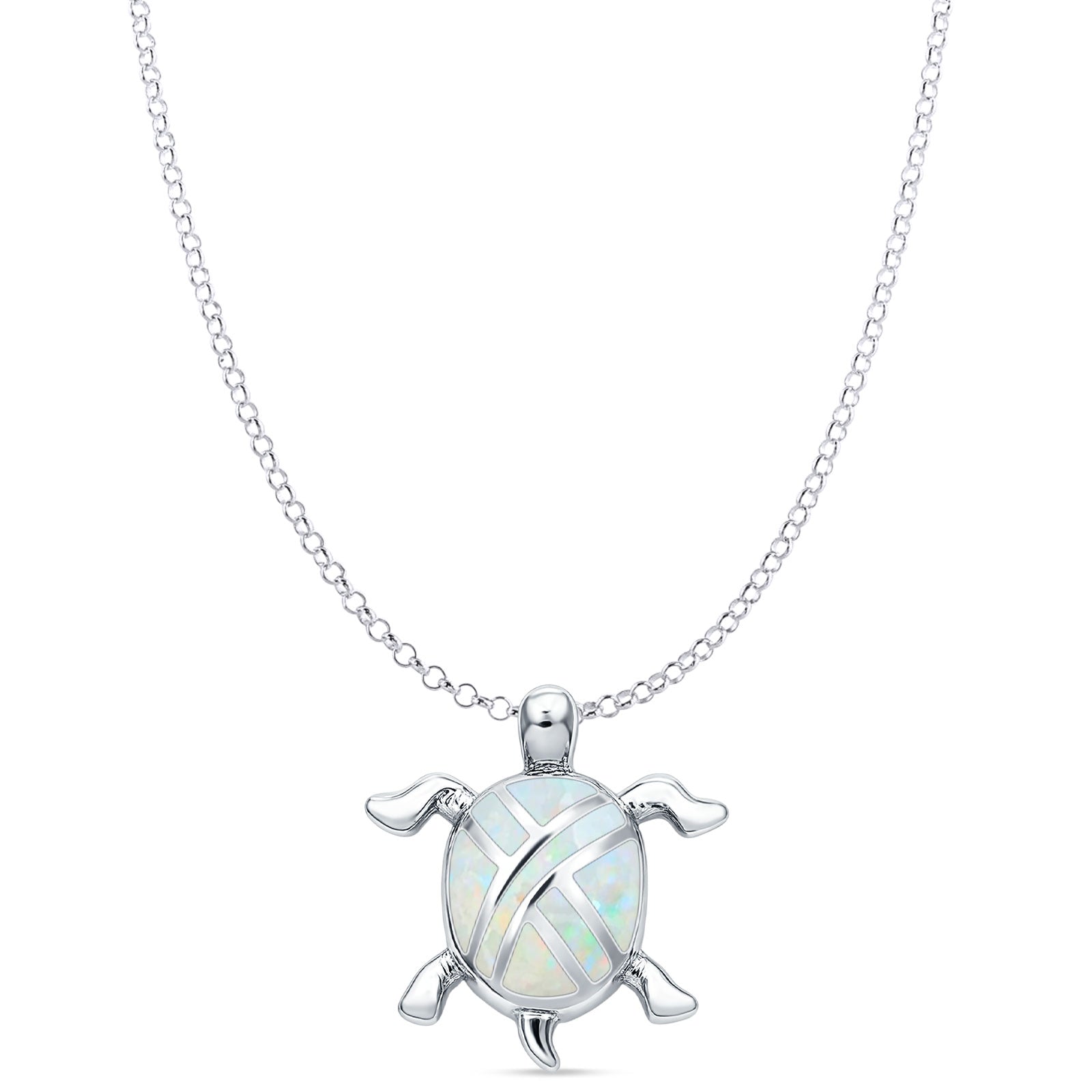 Style: Lab Created White Opal Turtle Pendant Necklace