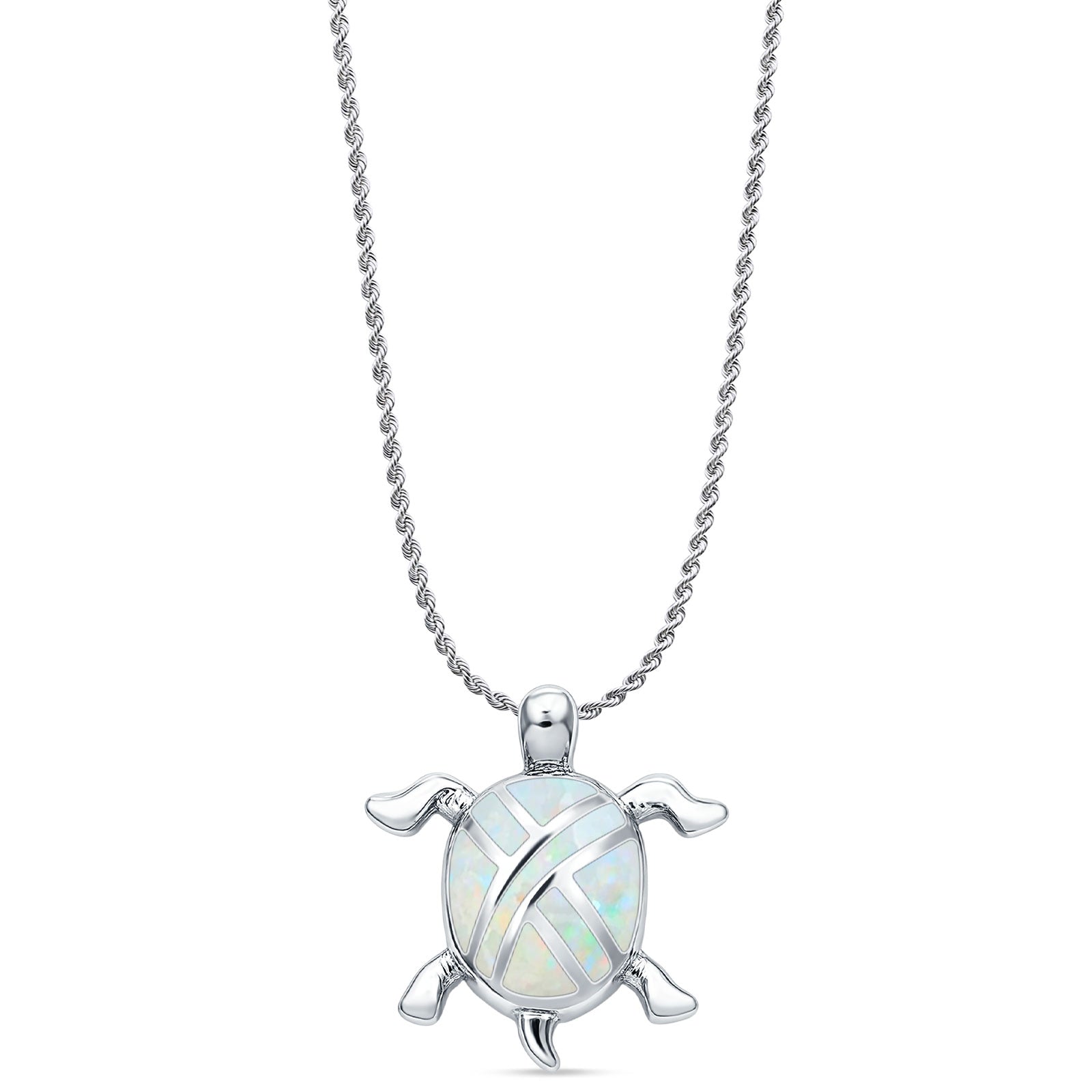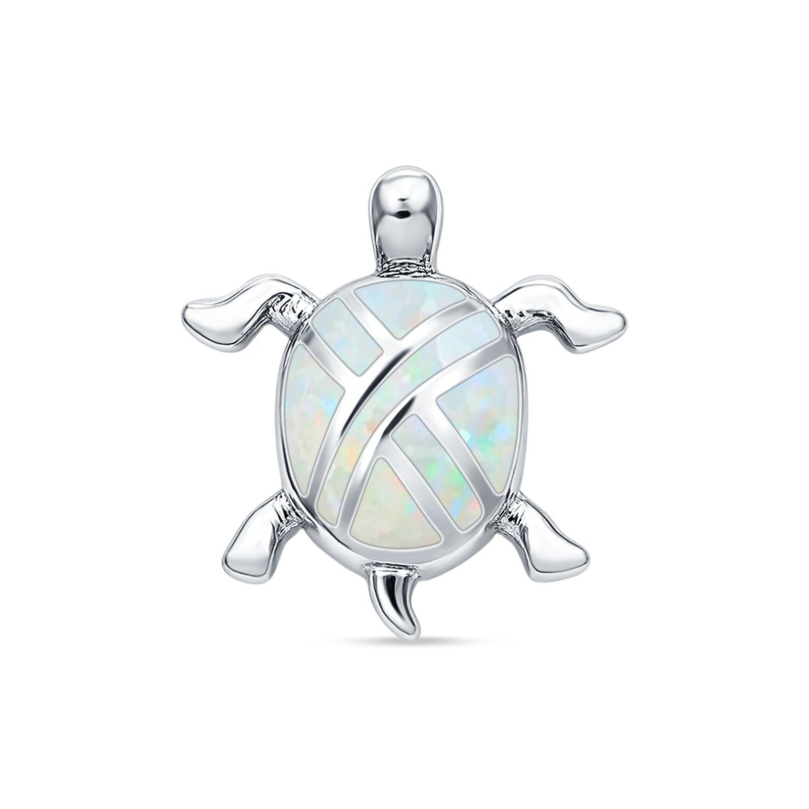Style: Lab Created White Opal Turtle Pendant Necklace