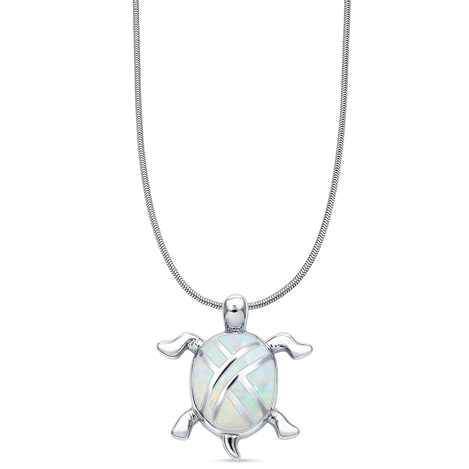 Style: Lab Created White Opal Turtle Pendant Necklace