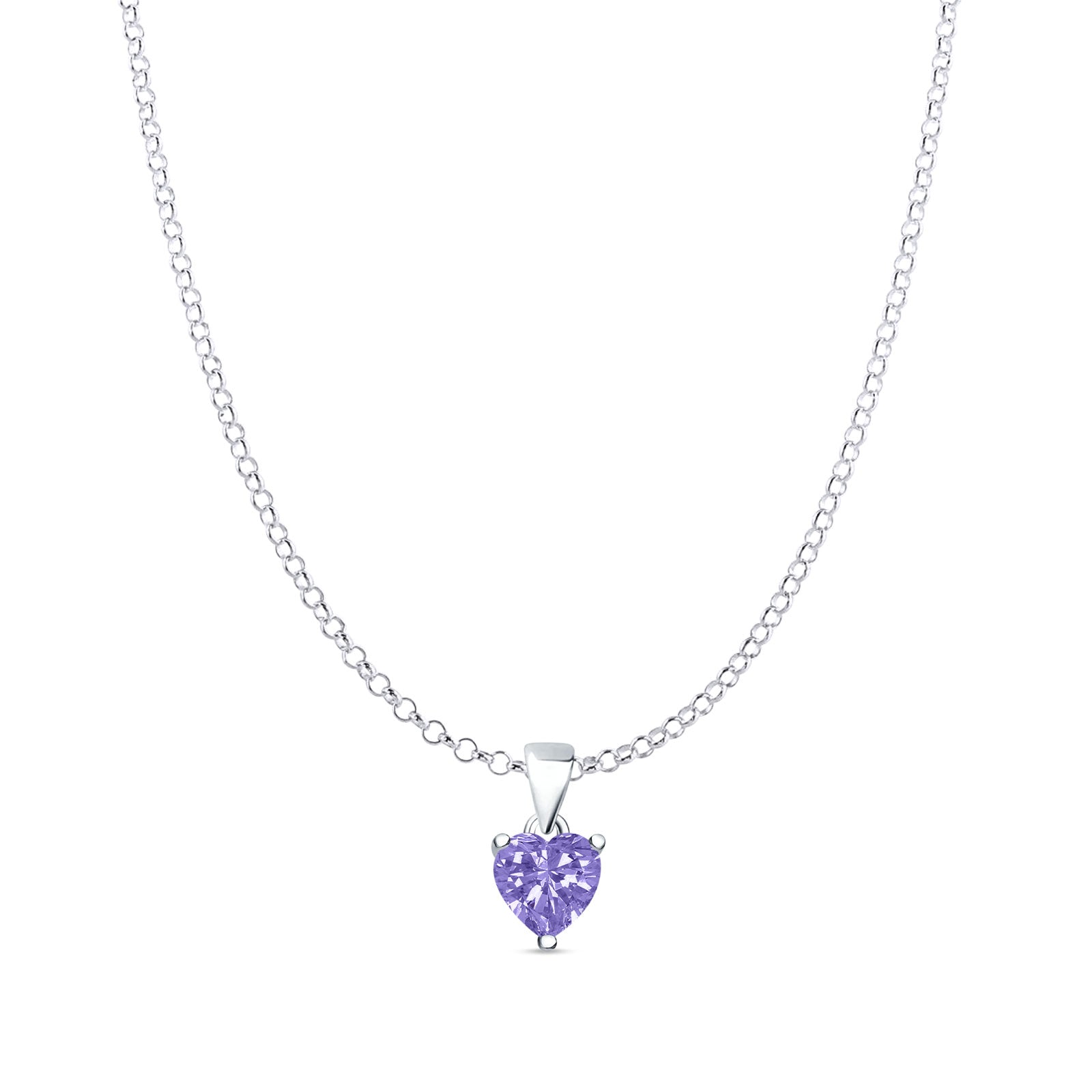 Lavender CZ Heart Pendant Rolo Chain Necklace 925 Sterling Silver