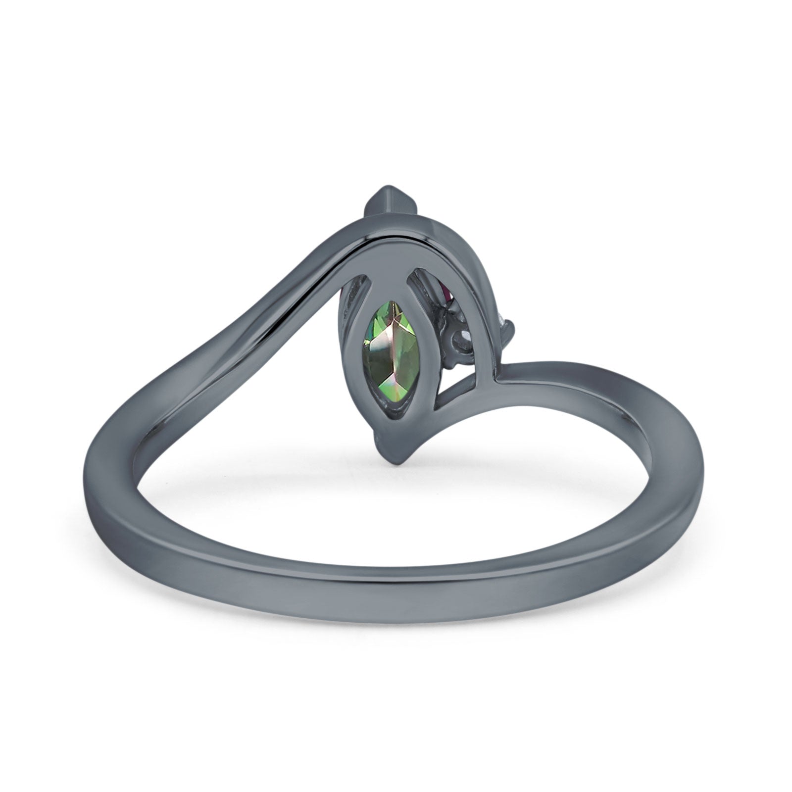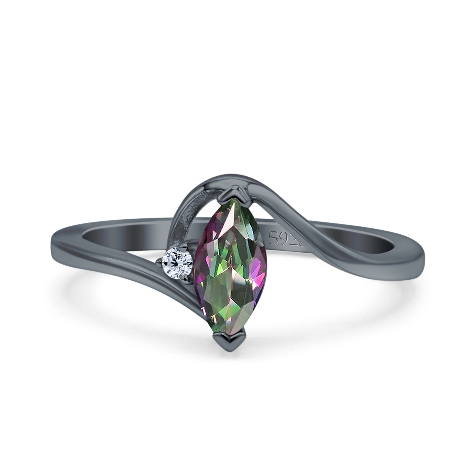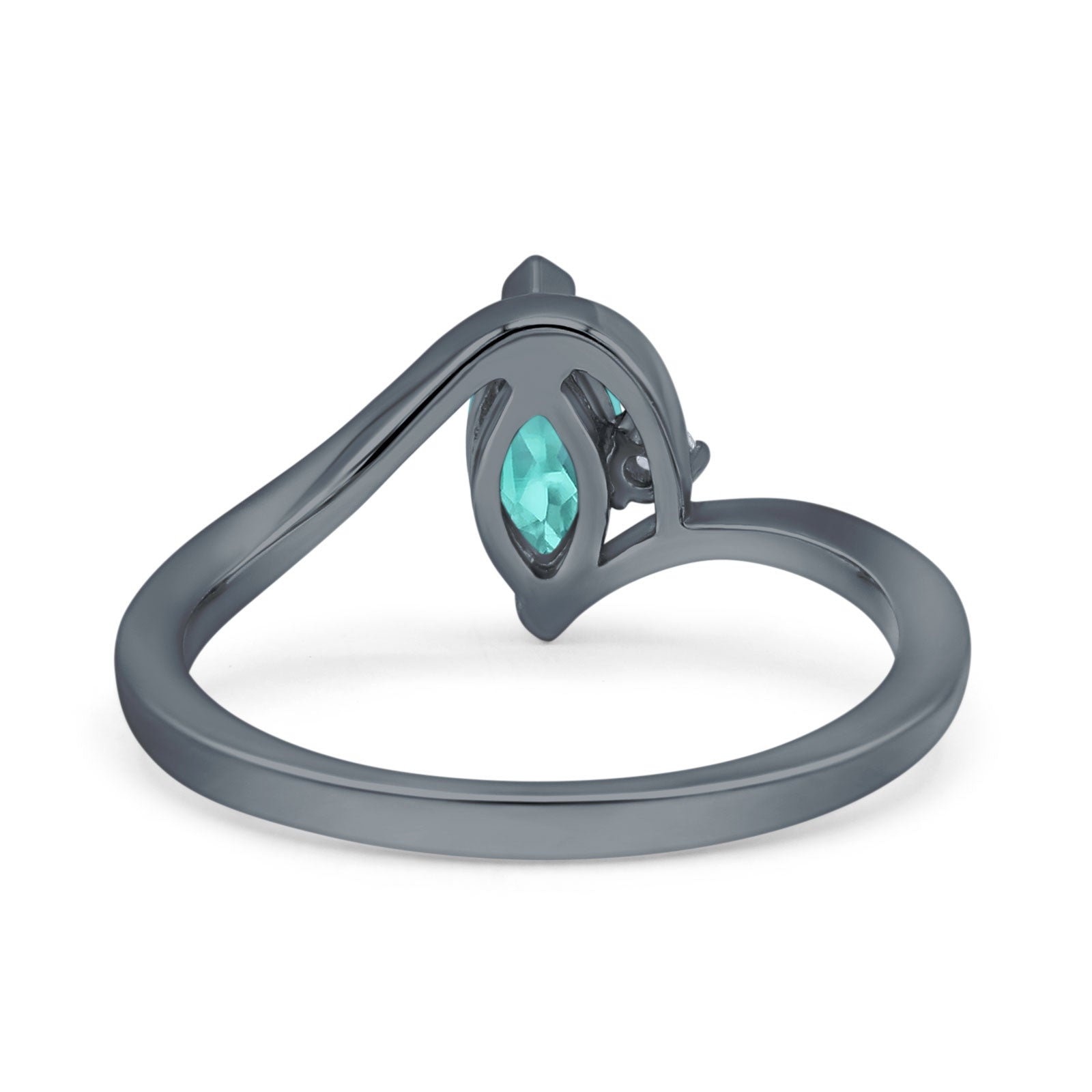 Marquise Art Deco Wave Wedding Engagement Ring Simulated Cubic Zirconia 925 Sterling Silver
