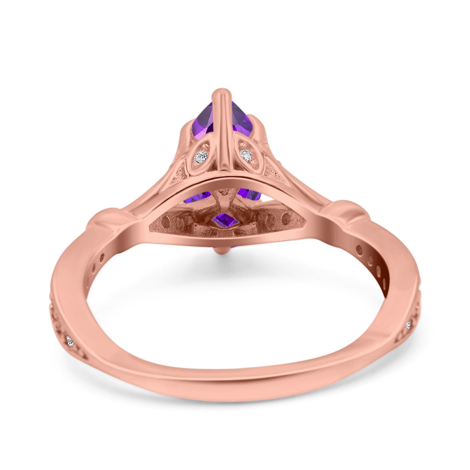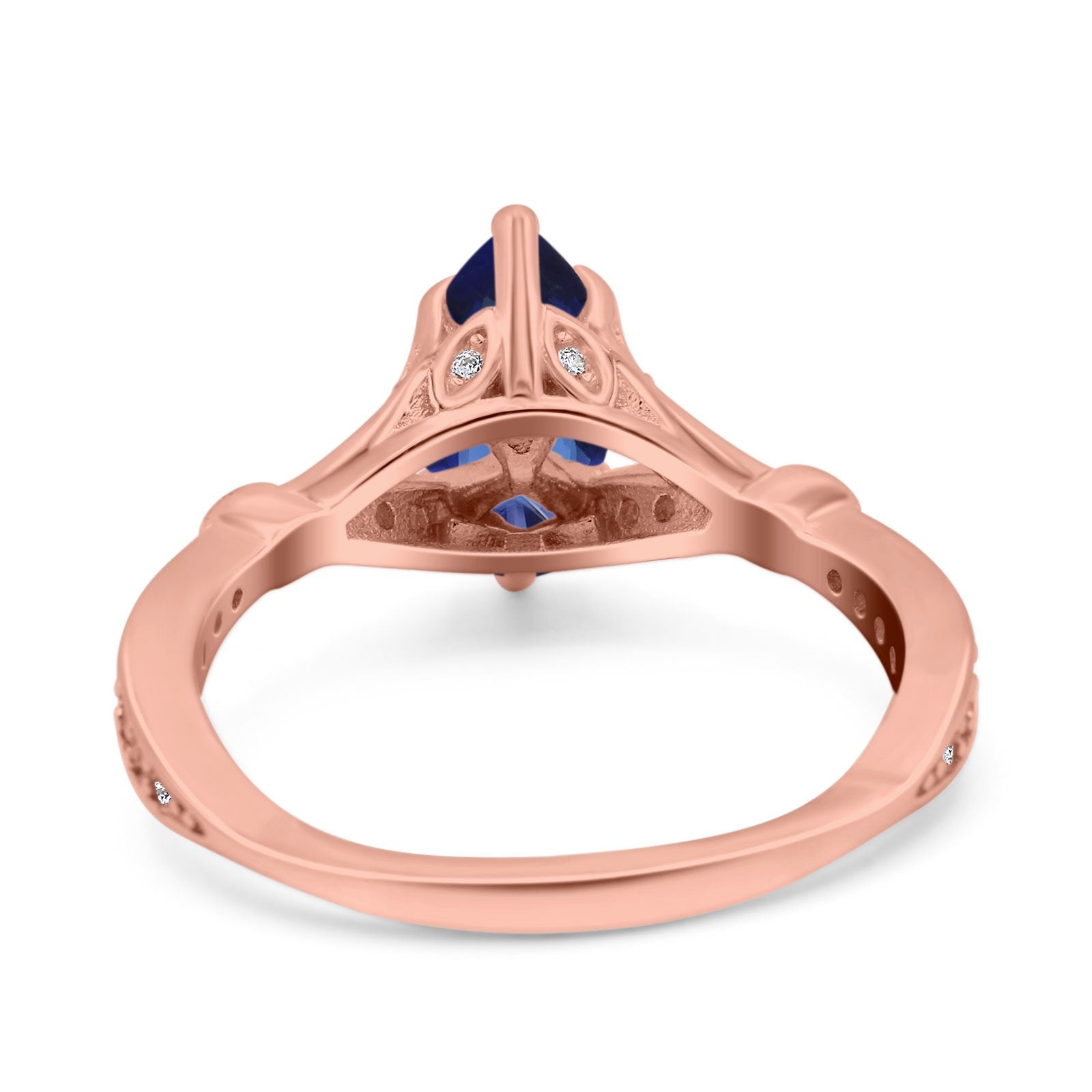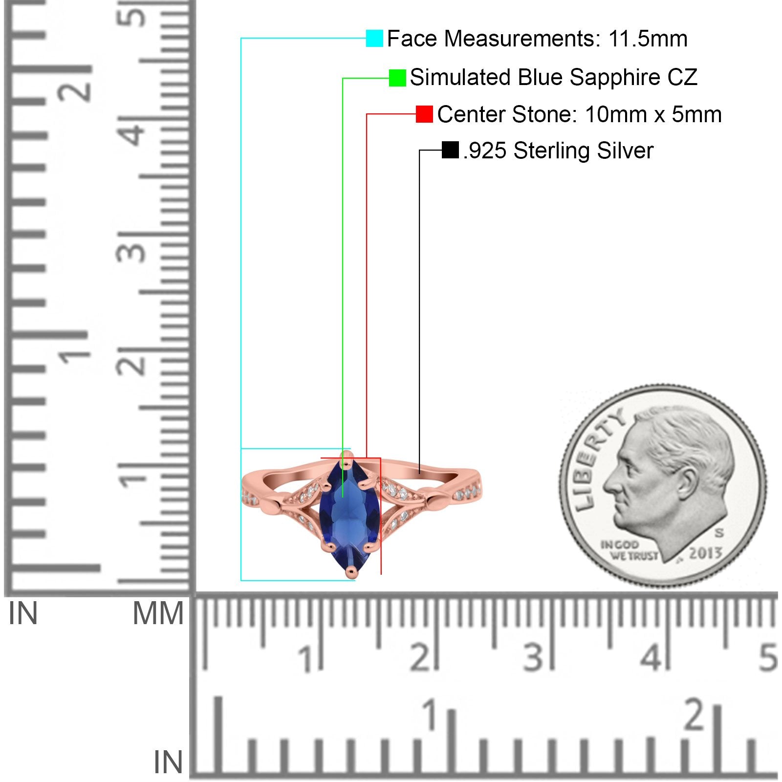 CZ & Blue Sapphire CZ Rose Tone Silver