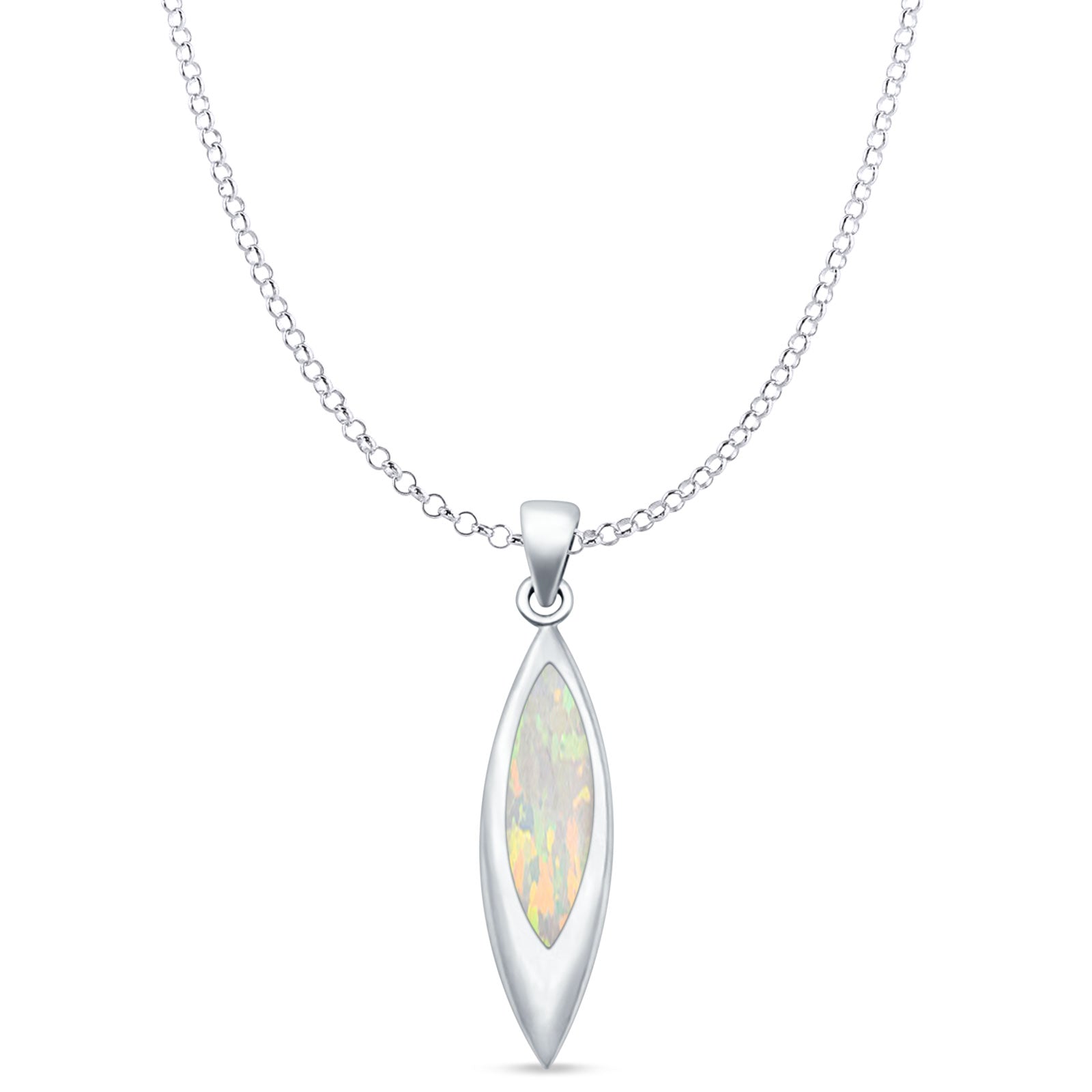 Marquise Lab Created White Opal Solitaire Pendant Rolo Chain Necklace 925 Sterling Silver