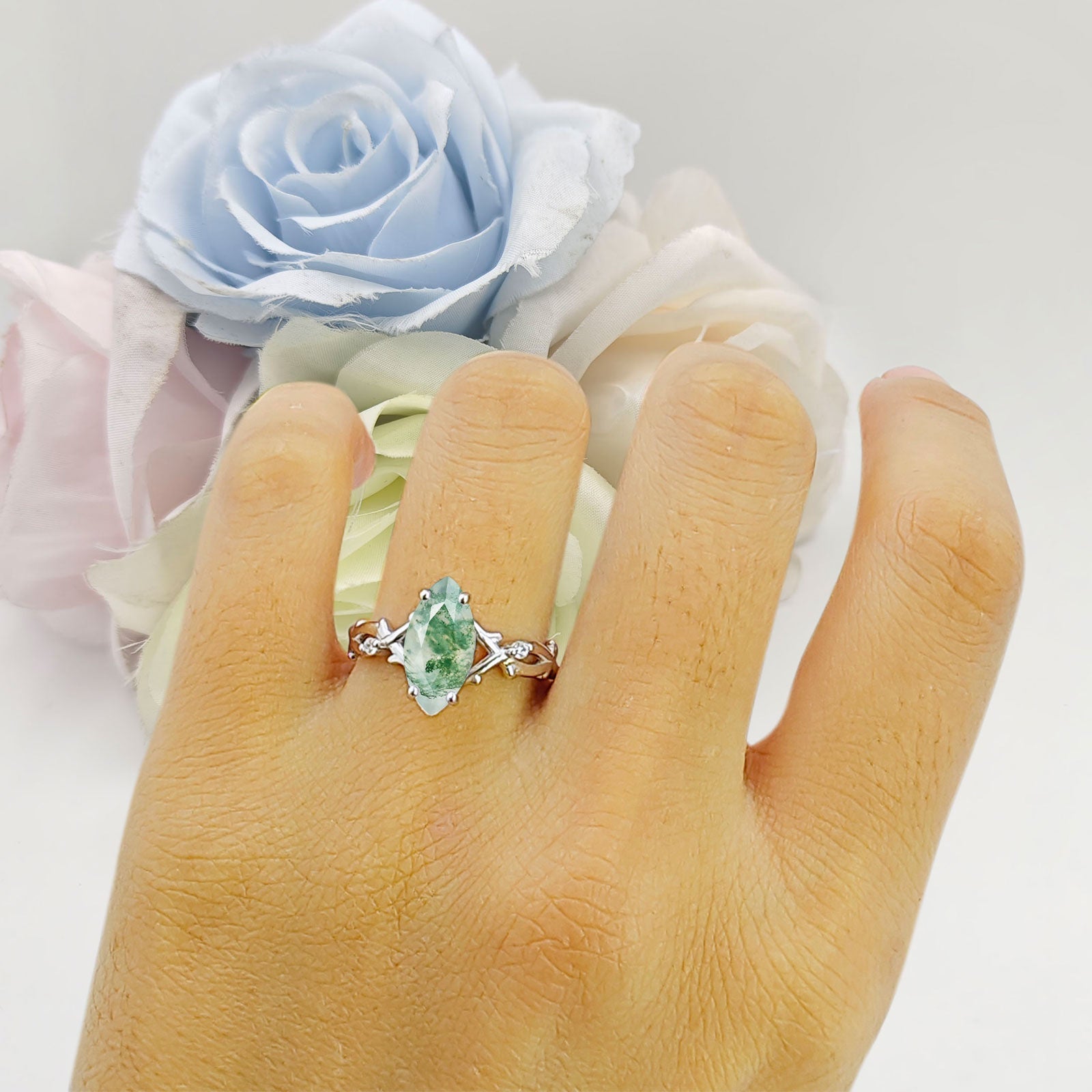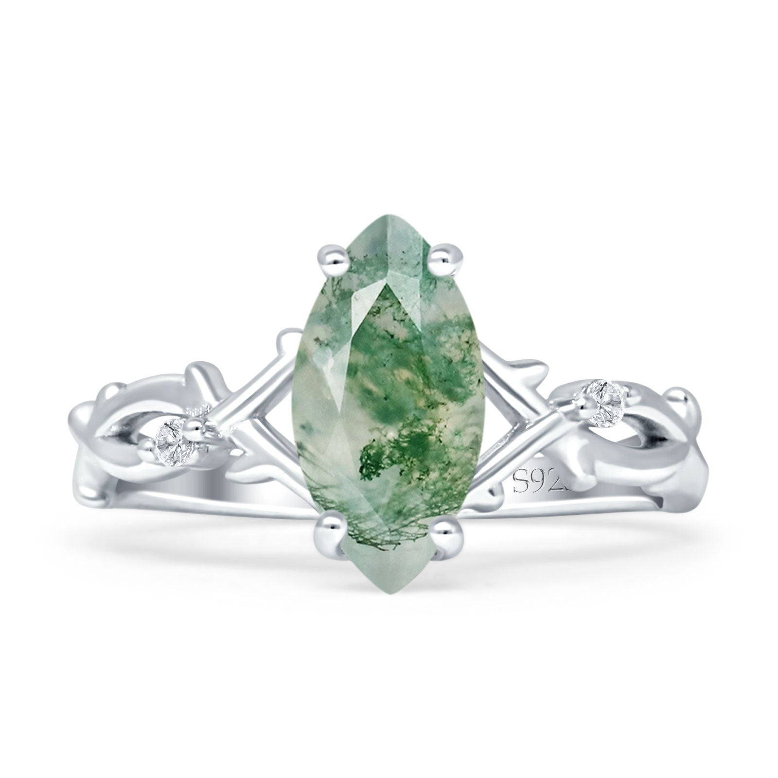 Product Description:Elegance meets sophistication in our marquise natural Green Moss Agate ring. Crafted in solid 925 sterling silver, this exquisite piece features a mesmerizing marquise-cut natural Green Moss Agate stone. Set within a split shank infinity twisted band, this ring exudes timeless charm and contemporary flair. Perfect for adding a touch of sophistication to any ensemble.