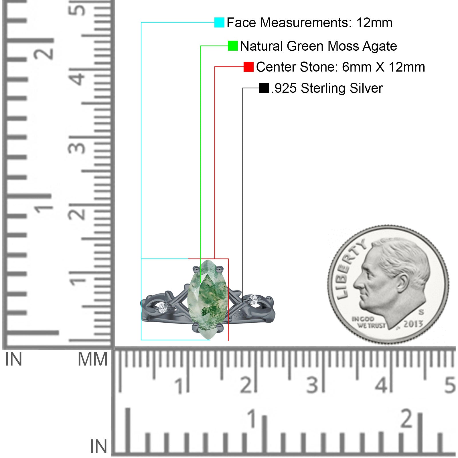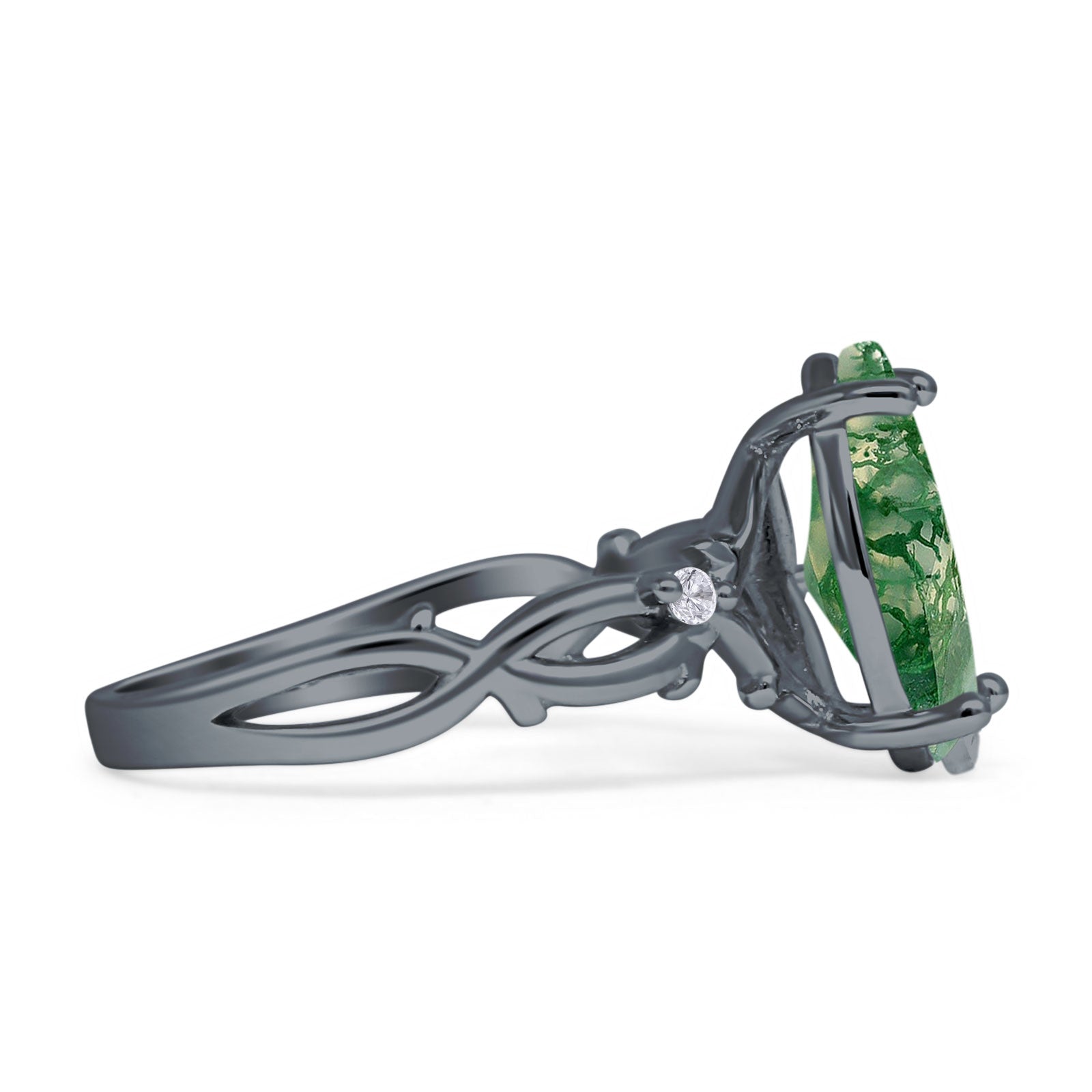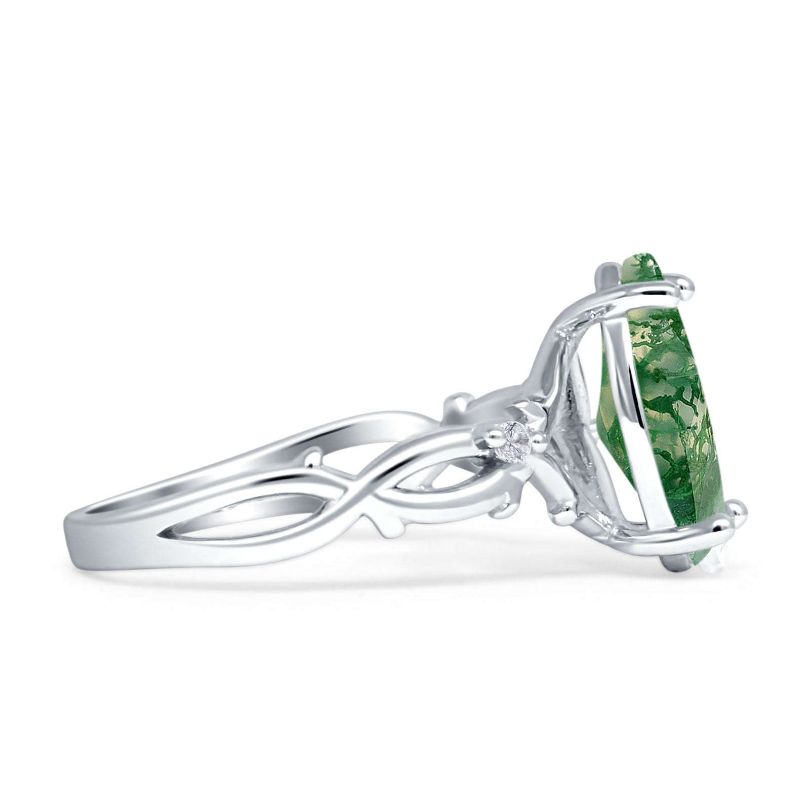 Marquise Natural Green Moss Agate Split Shank Infinity Twisted Ring 925 Sterling Silver