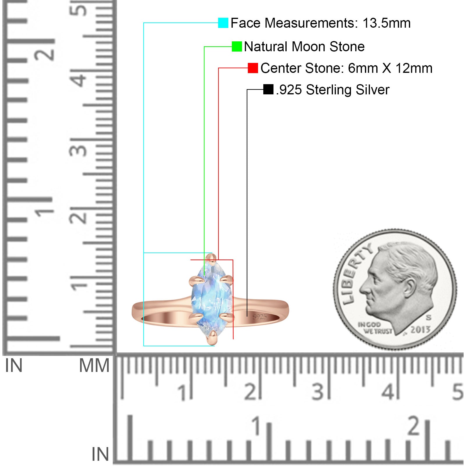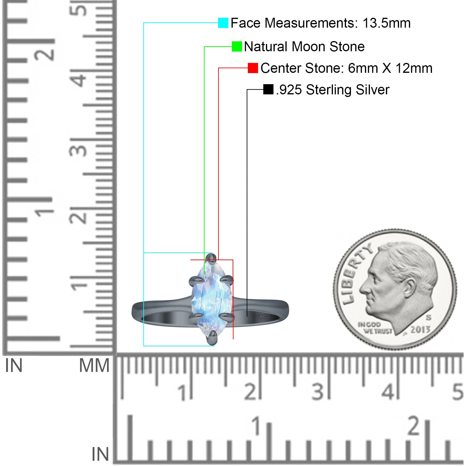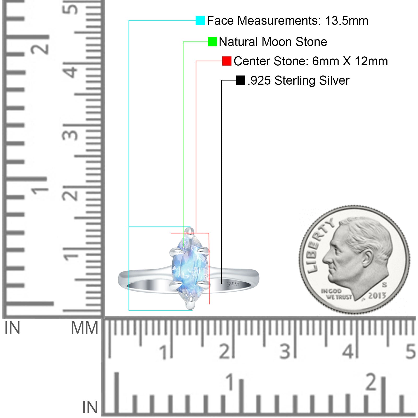Marquise Solitaire Engagement Ring 6X12 Natural Moonstone 925 Sterling Silver