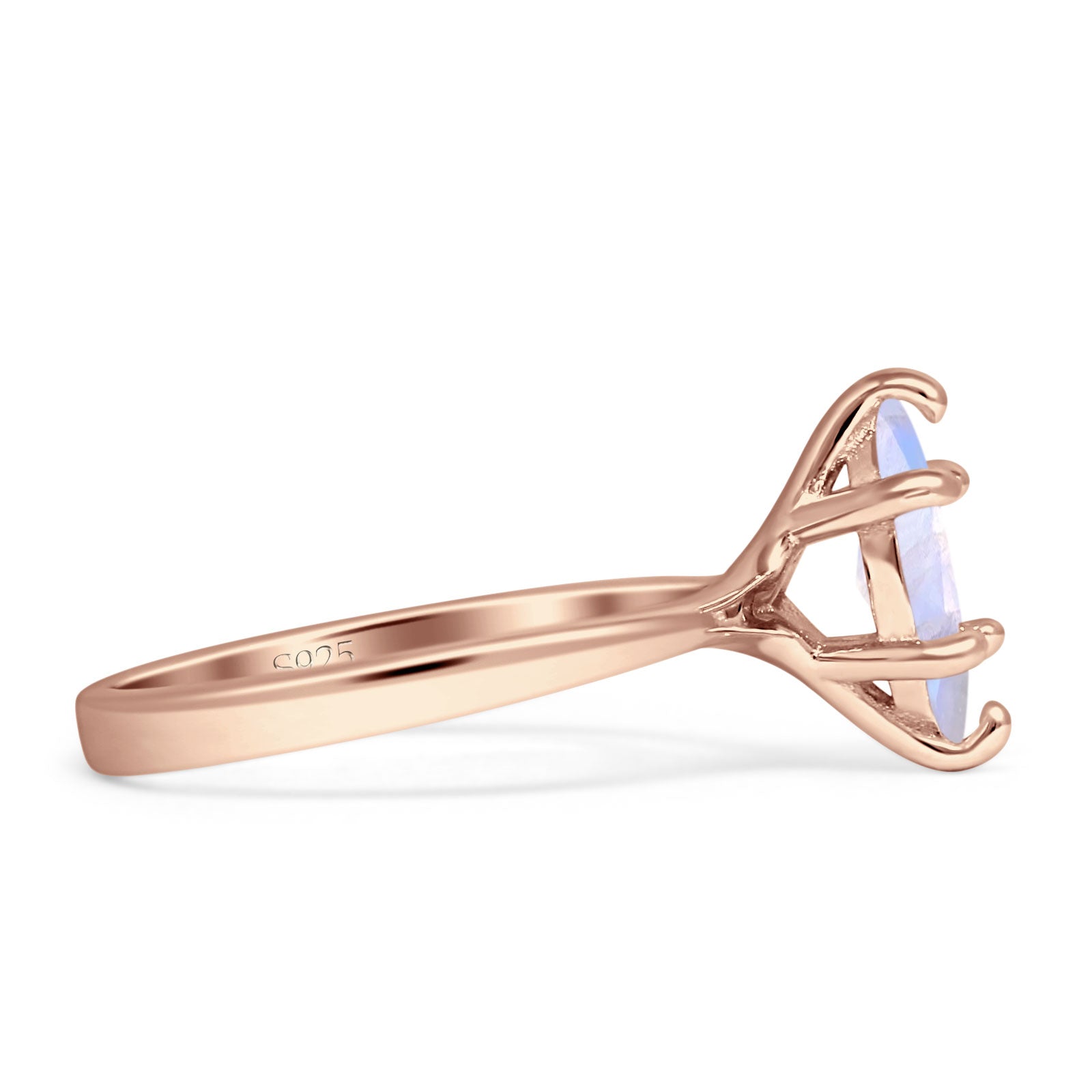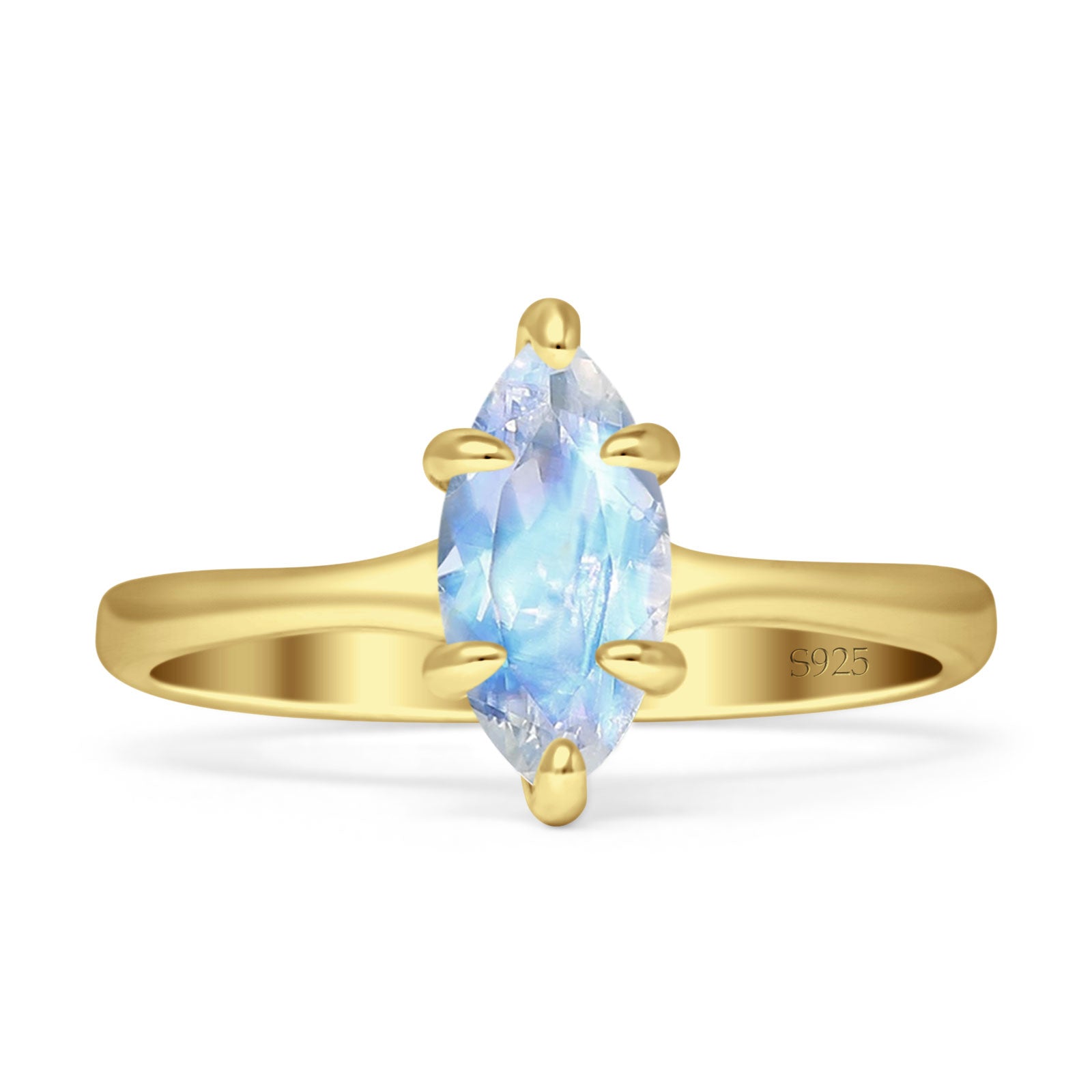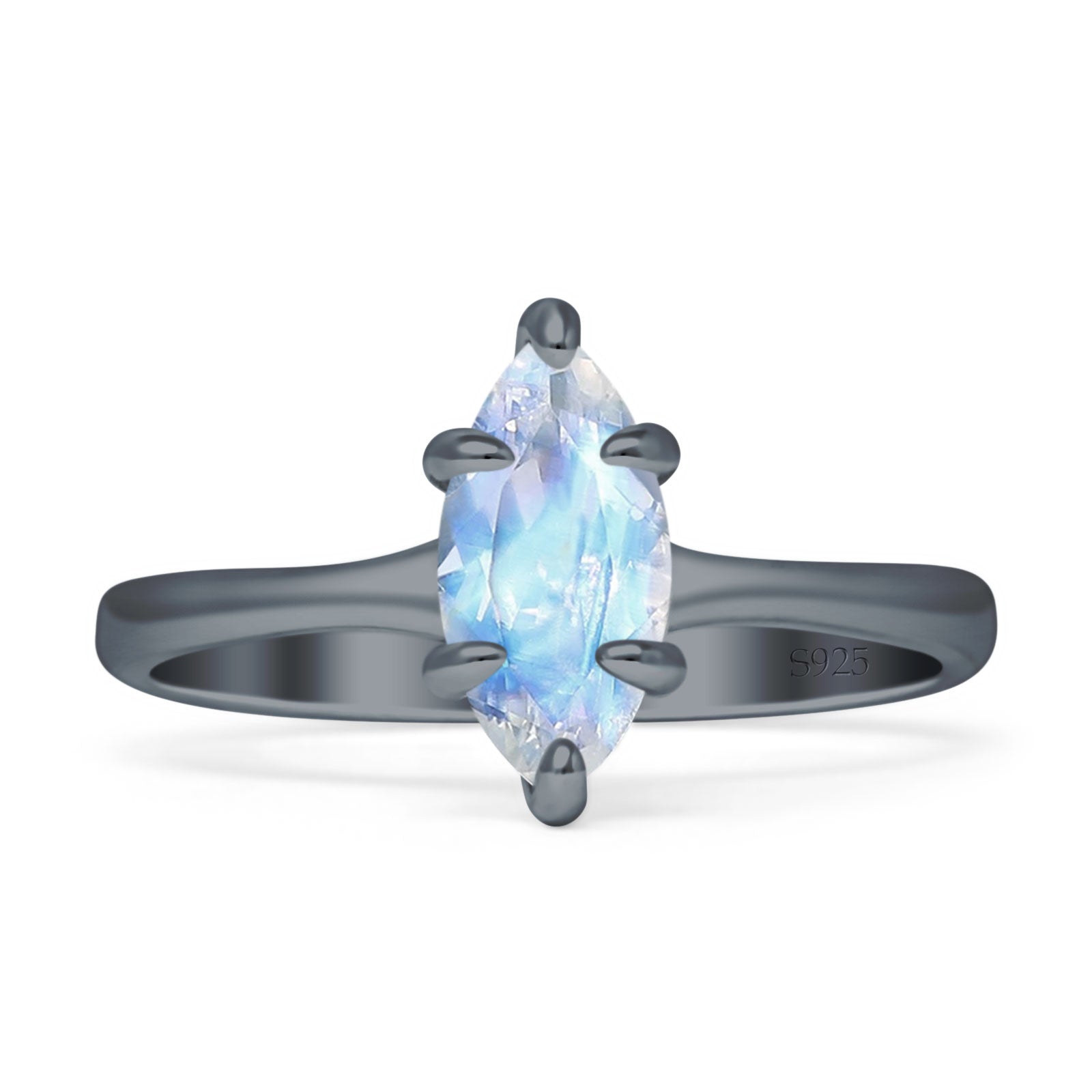 Marquise Solitaire Engagement Ring 6X12 Natural Moonstone 925 Sterling Silver