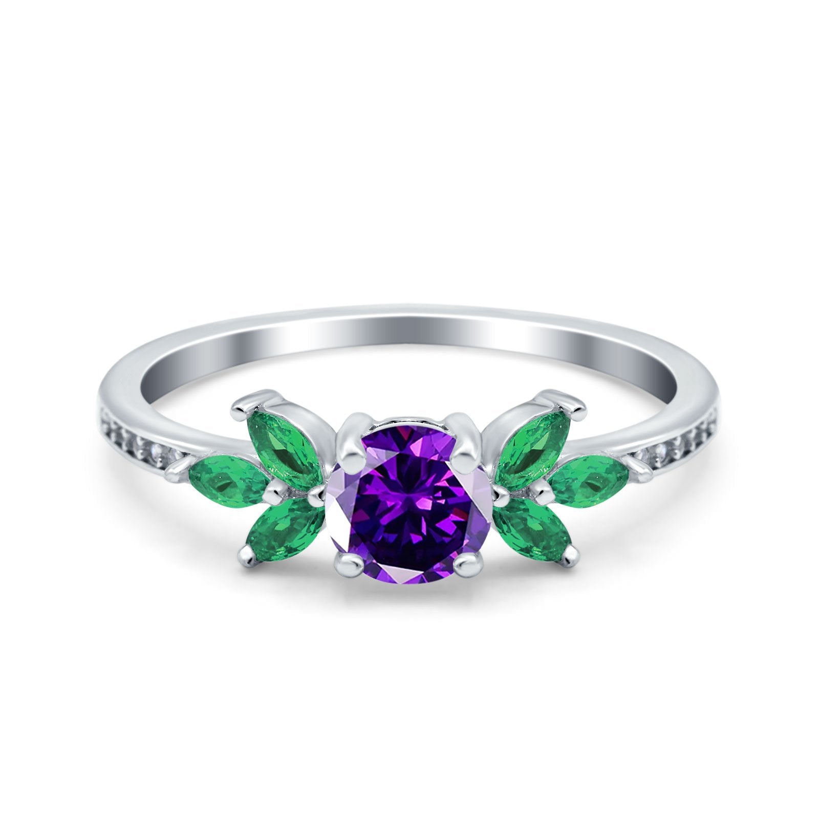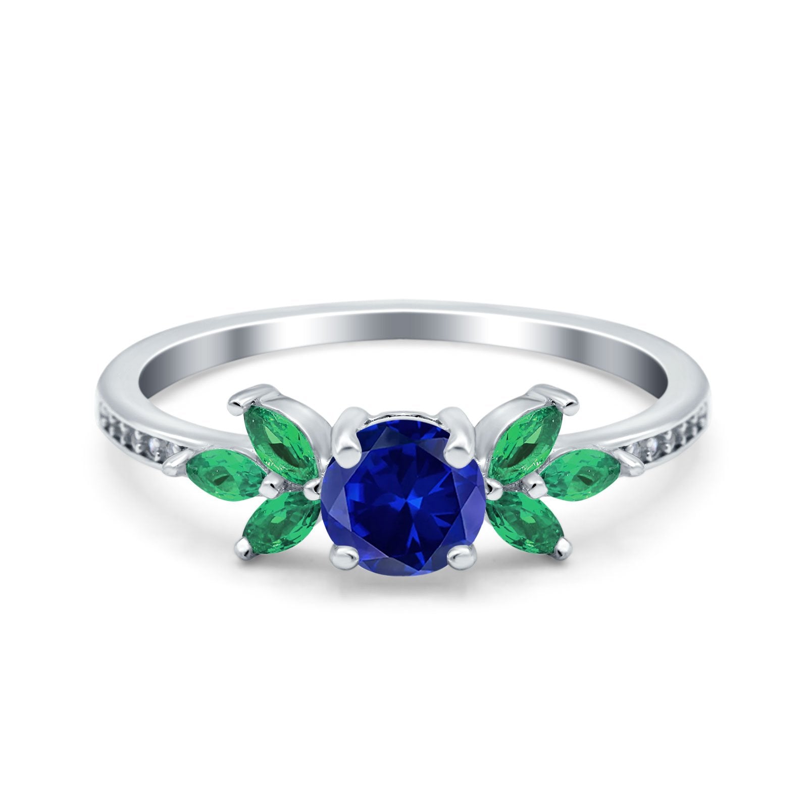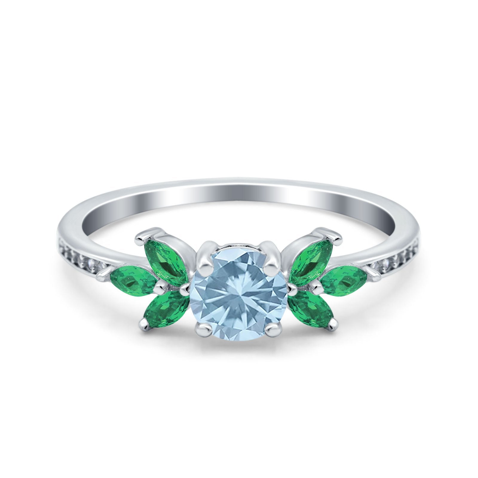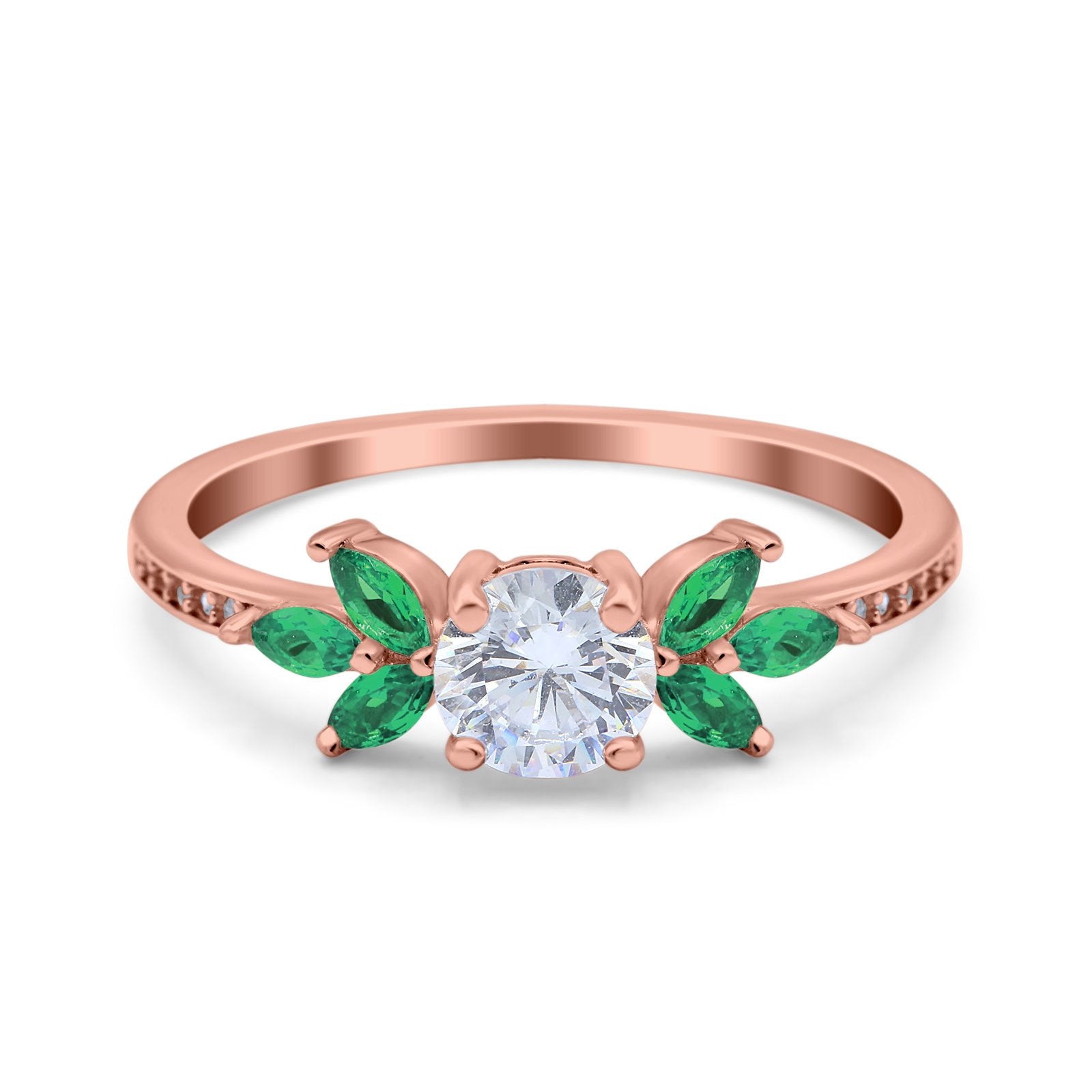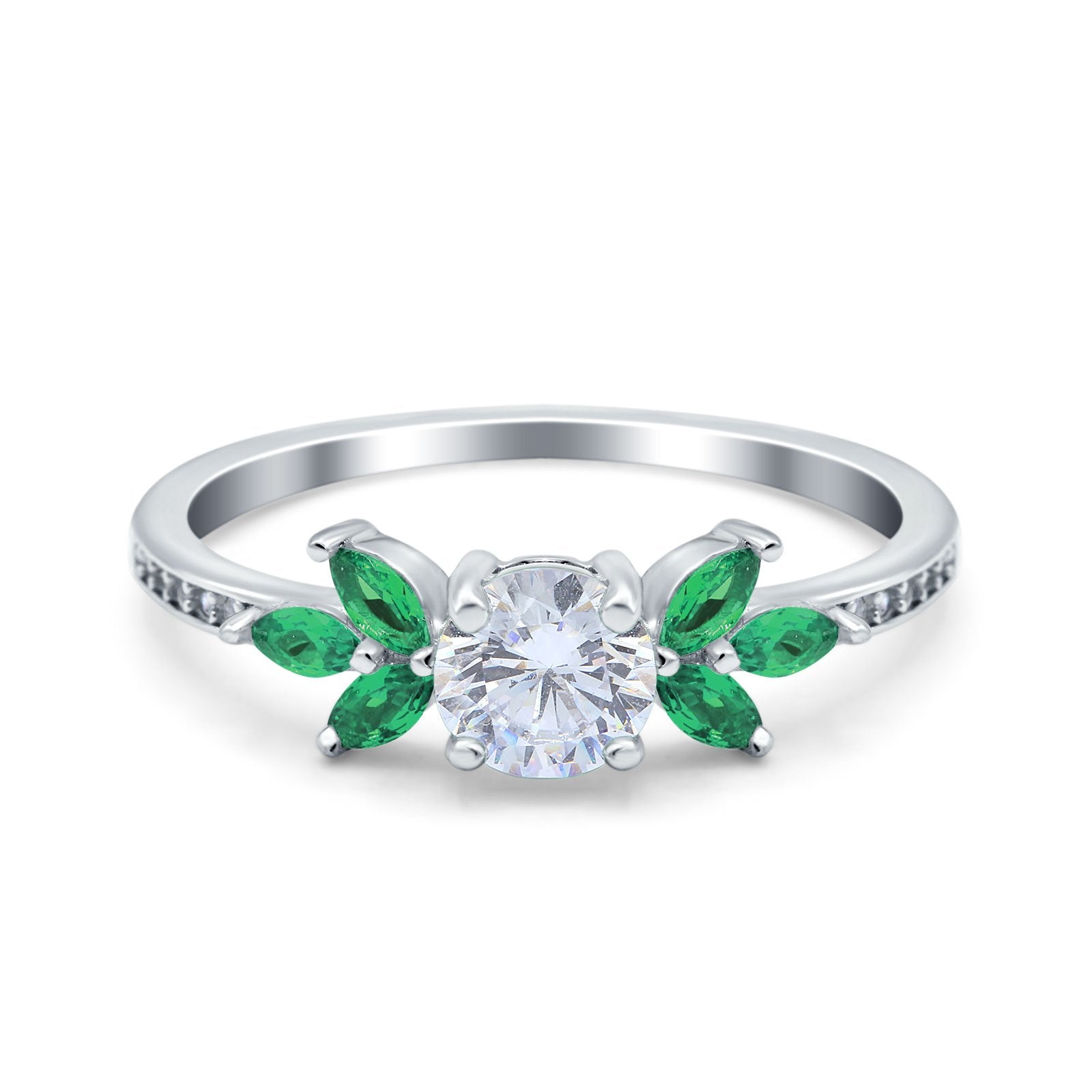 Marquise Wedding Ring Green Emerald Simulated Cubic Zirconia 925 Sterling Silver