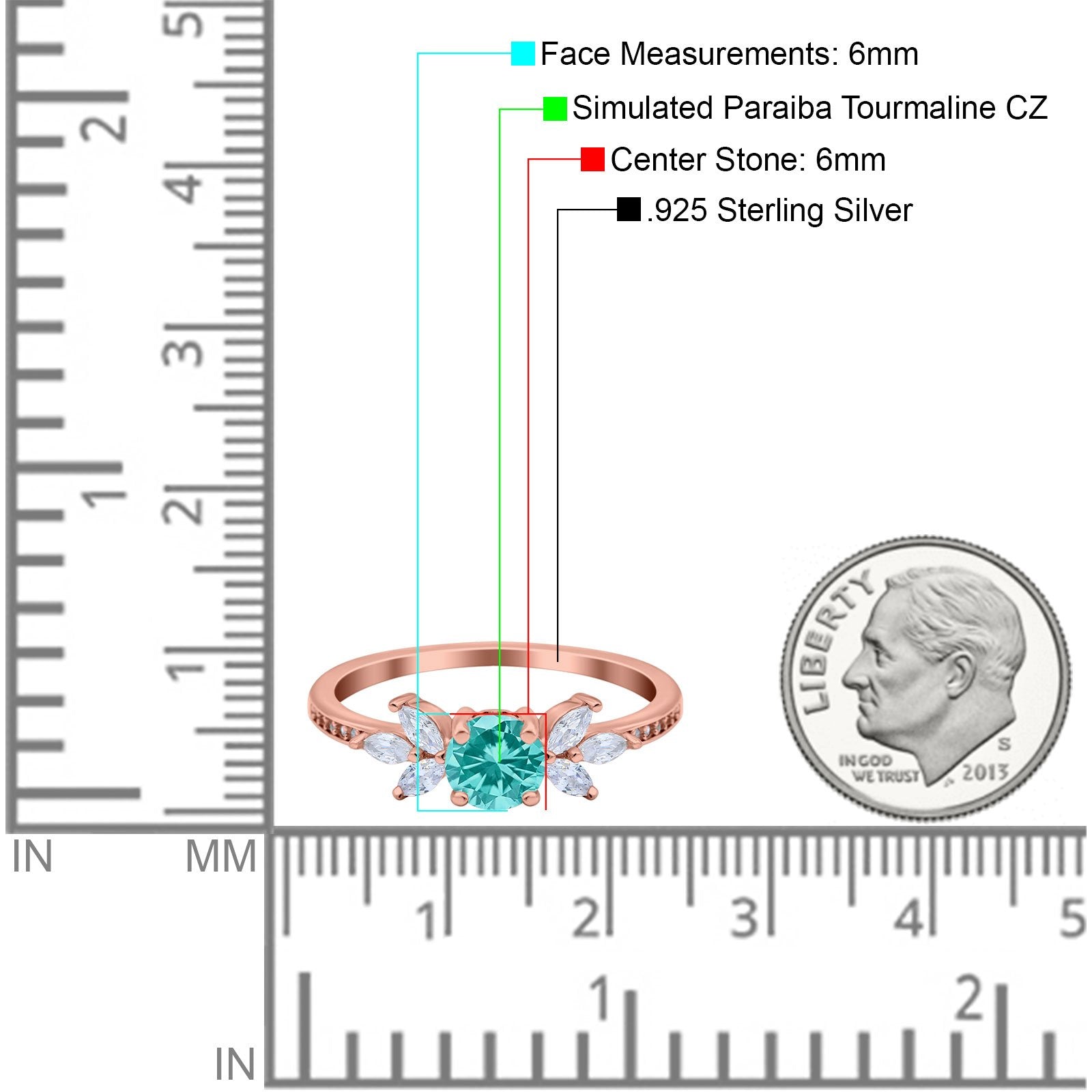 Rose Tone, Simulated Paraiba Tourmaline CZ