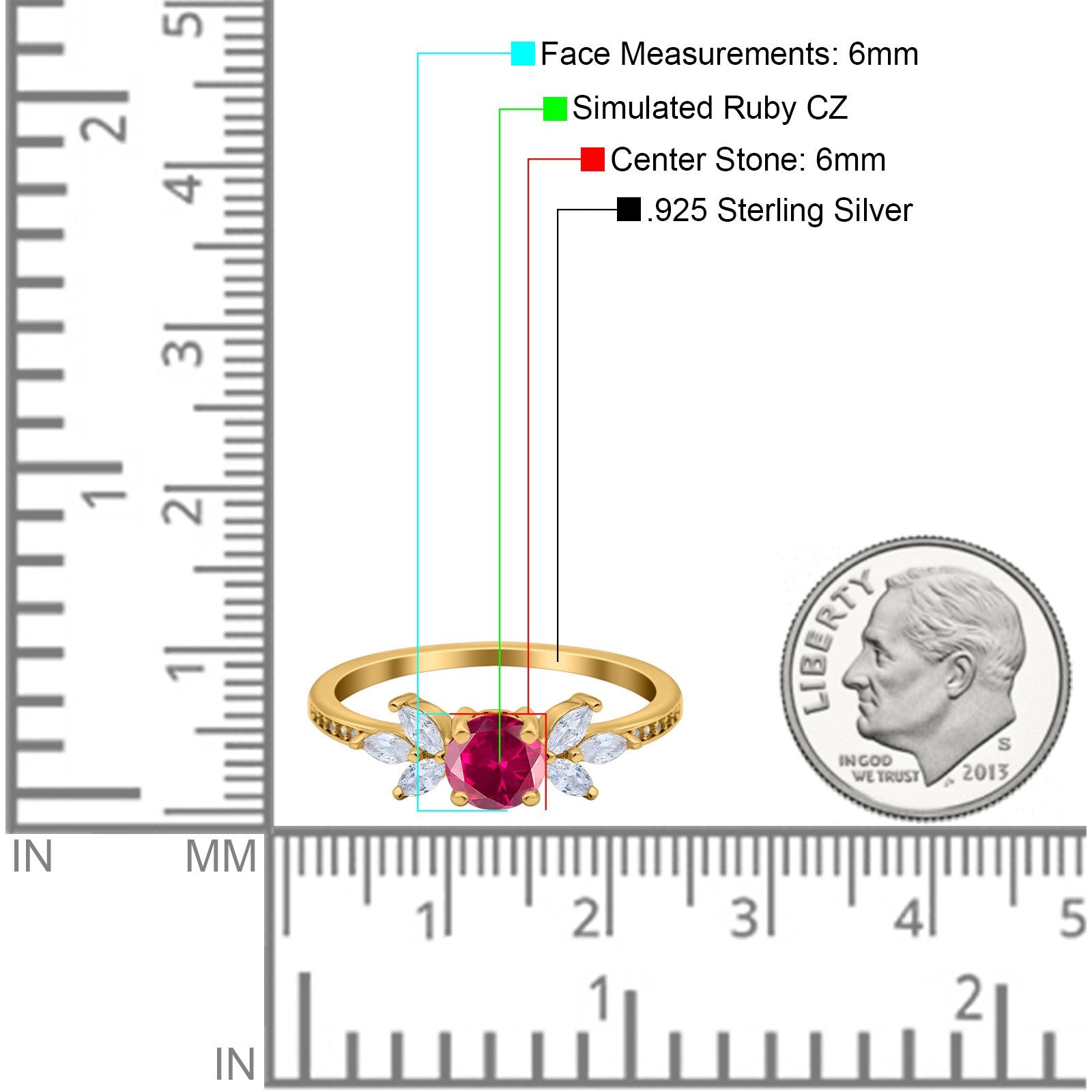 Yellow Tone, Simulated Ruby CZ