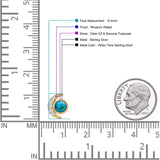 Minimalist 10.4mm Crescent Moon Stud Earrings Turquoise & Cubic Zirconia 925 Sterling Silver