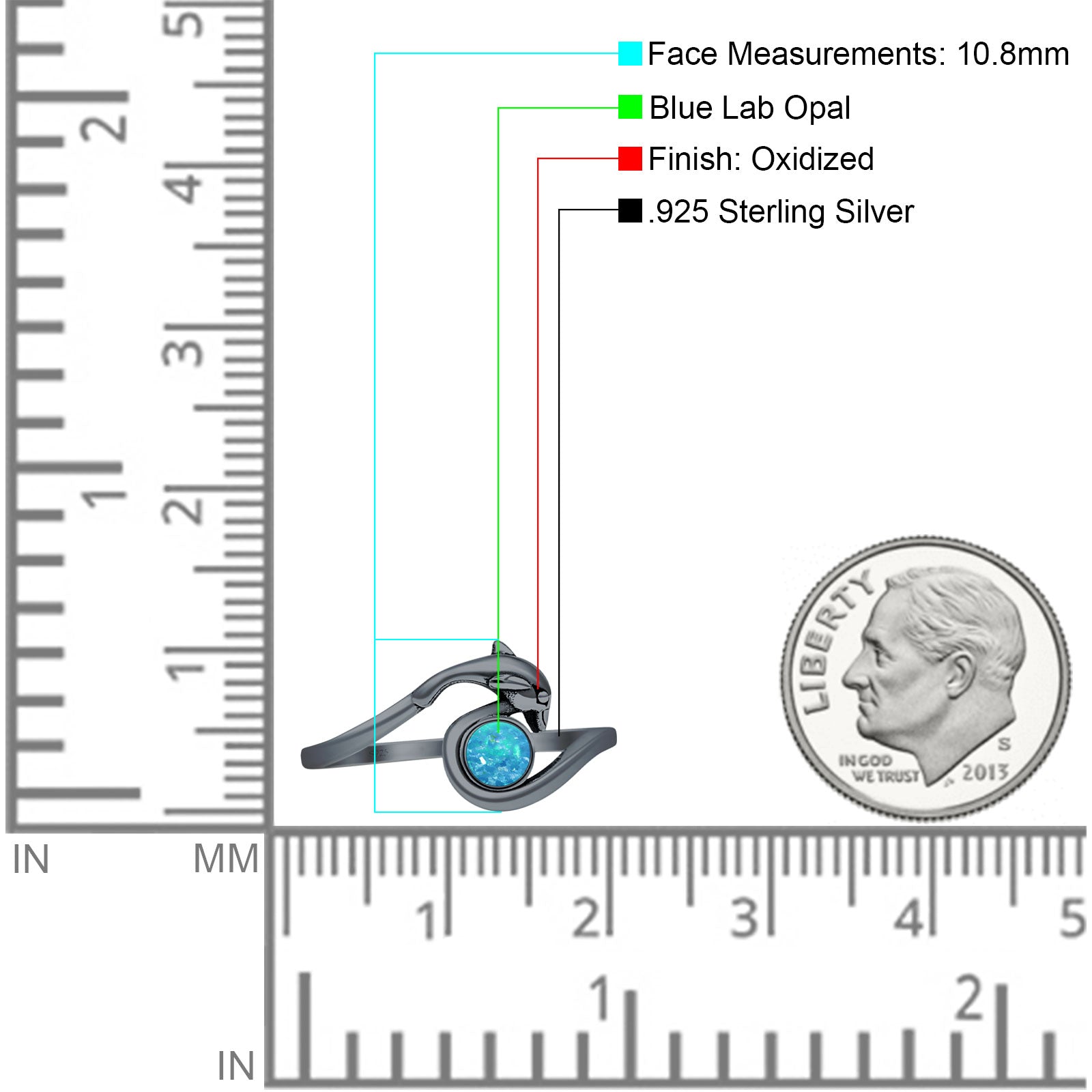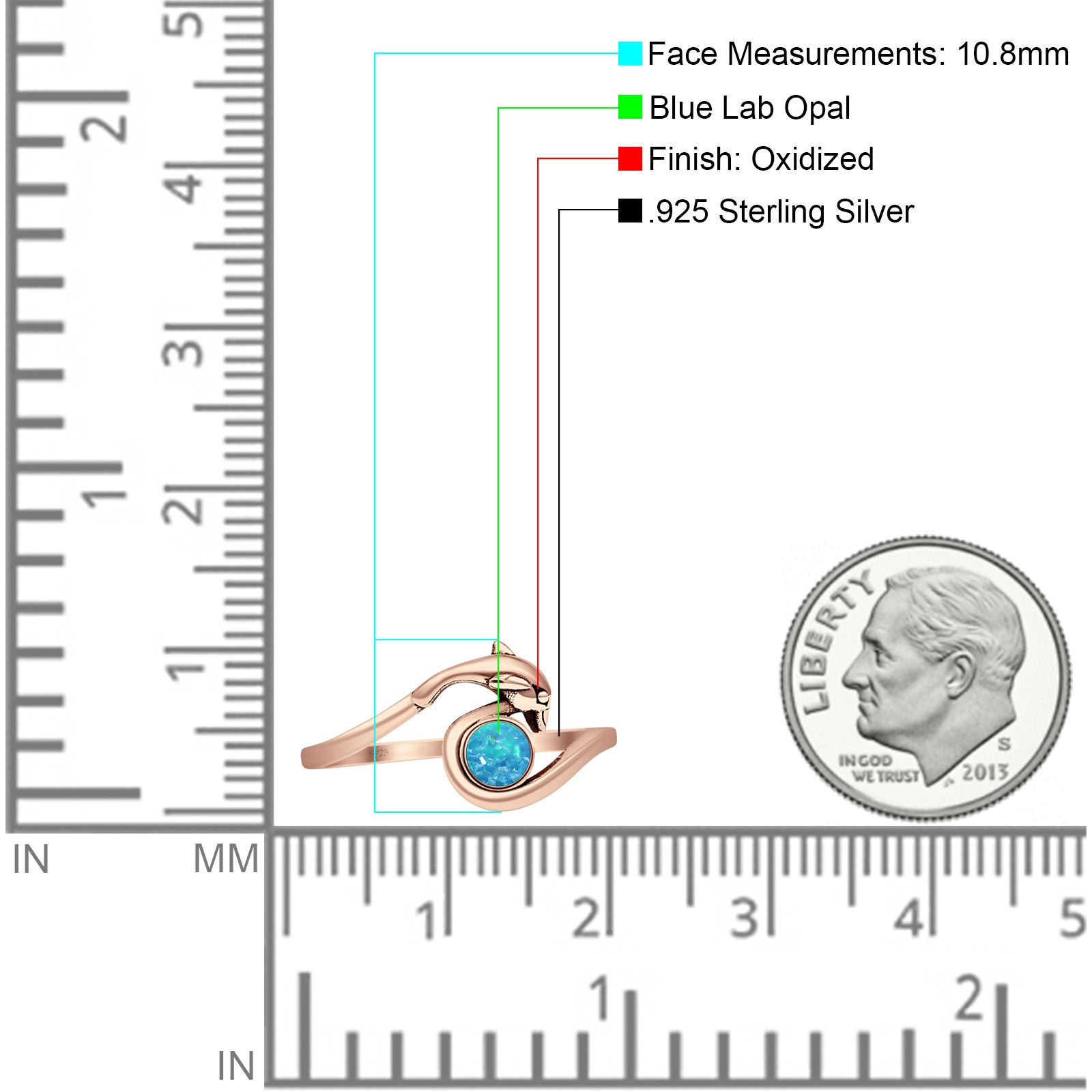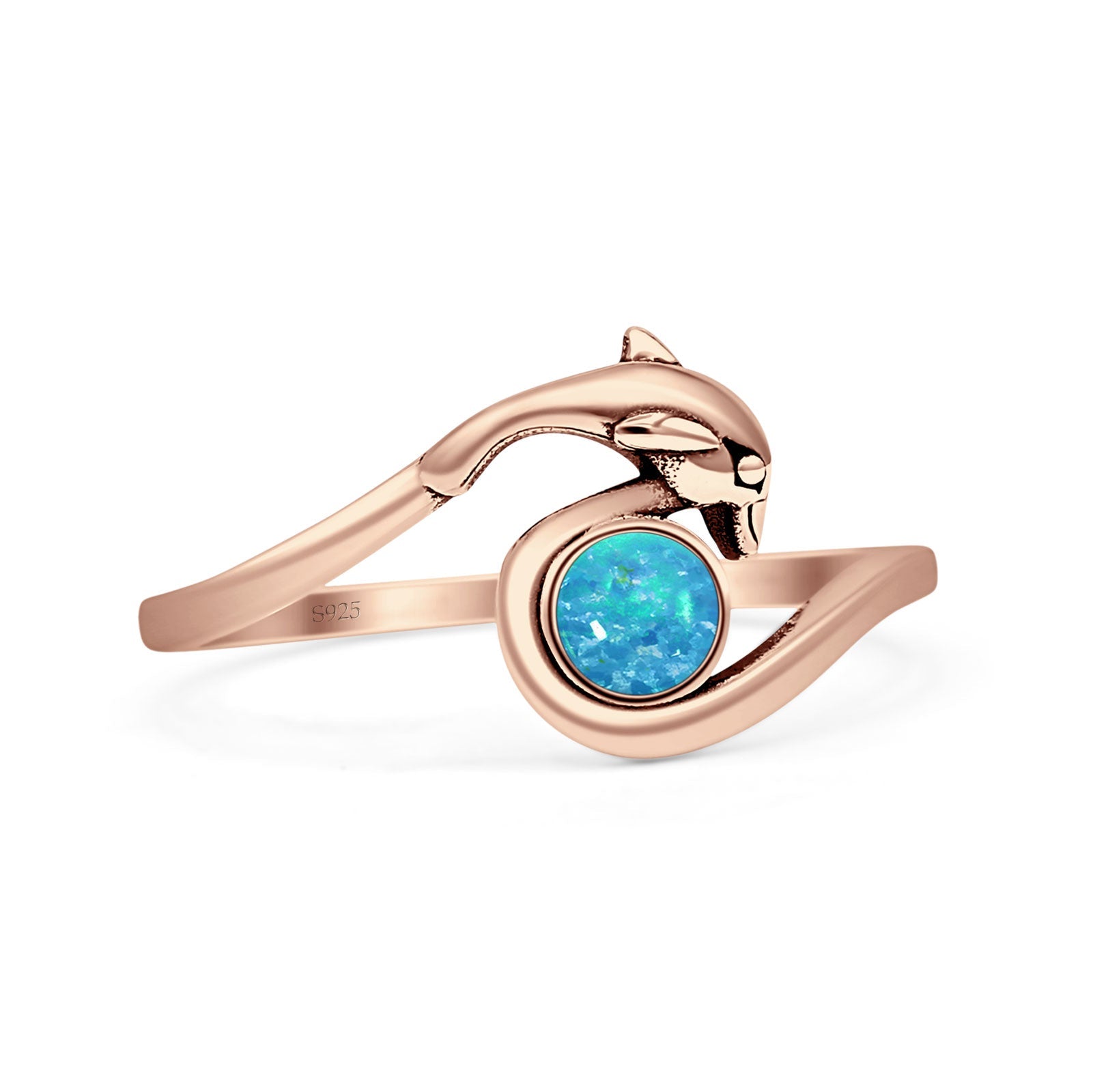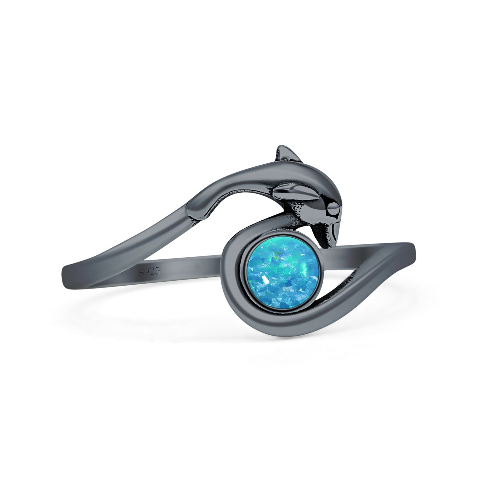 Design: Round Lab Created Blue Opal Dolphin Ring.