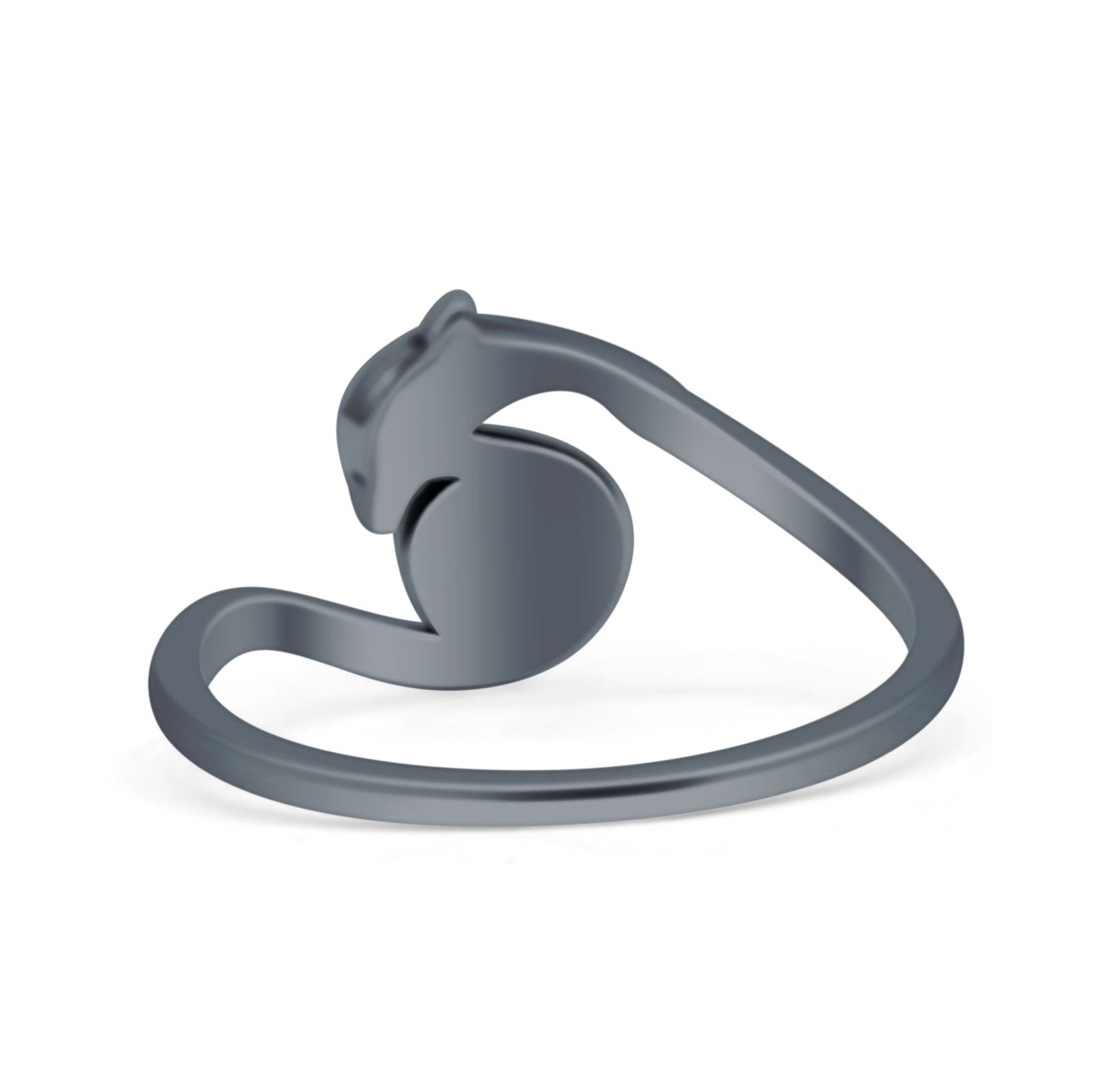 Minimalist 8mm Pear Black Onyx Turtle Ring Oxidized 925 Sterling Silver
