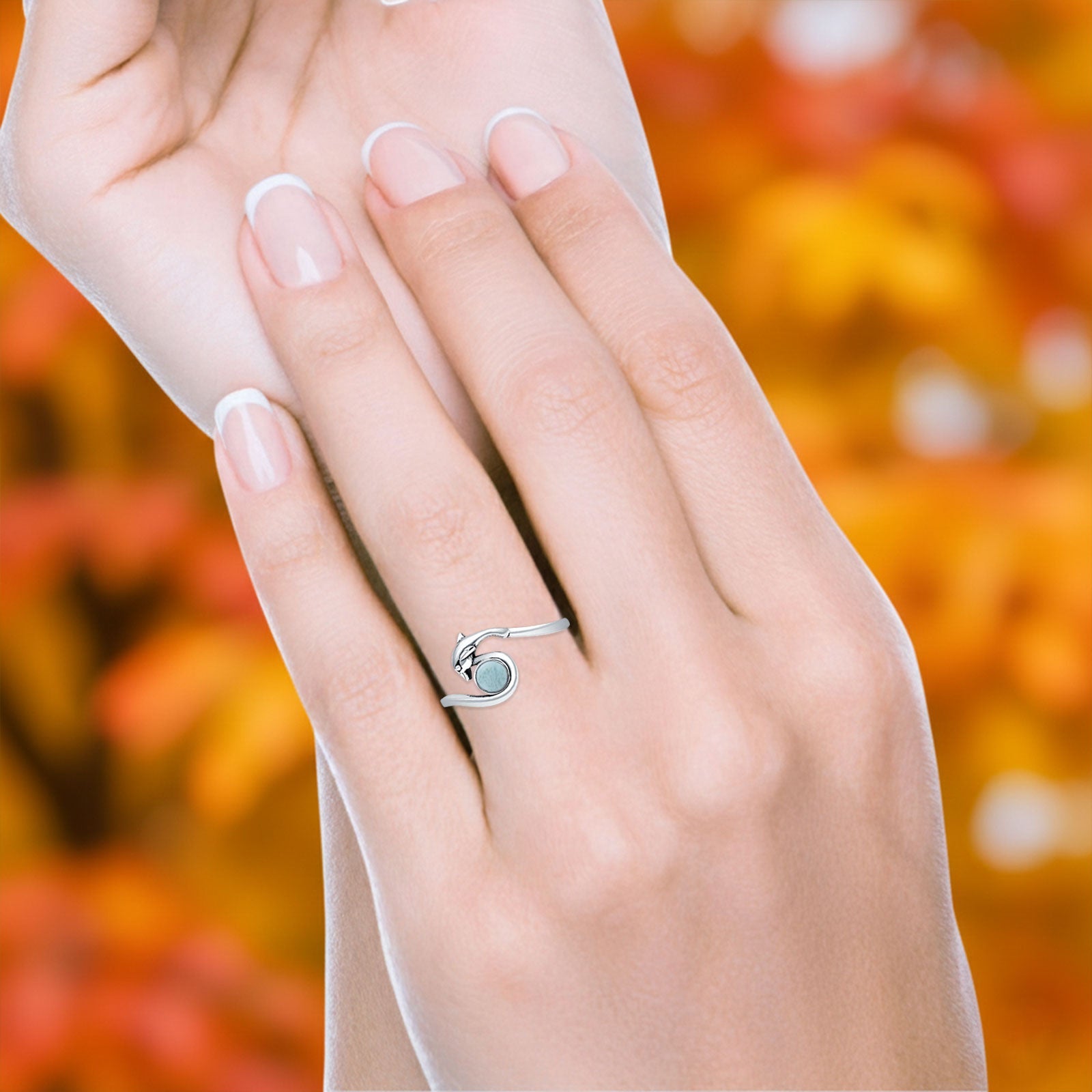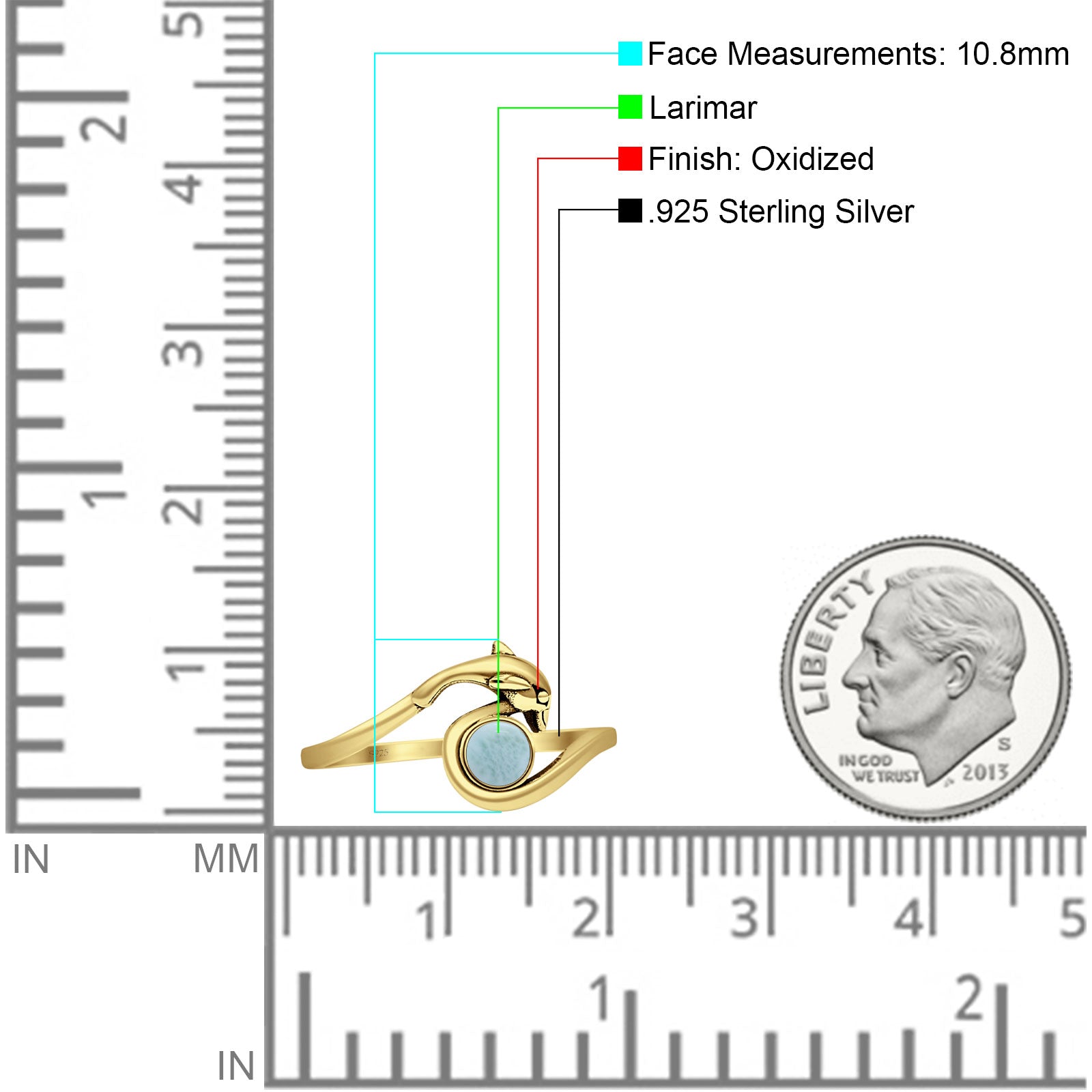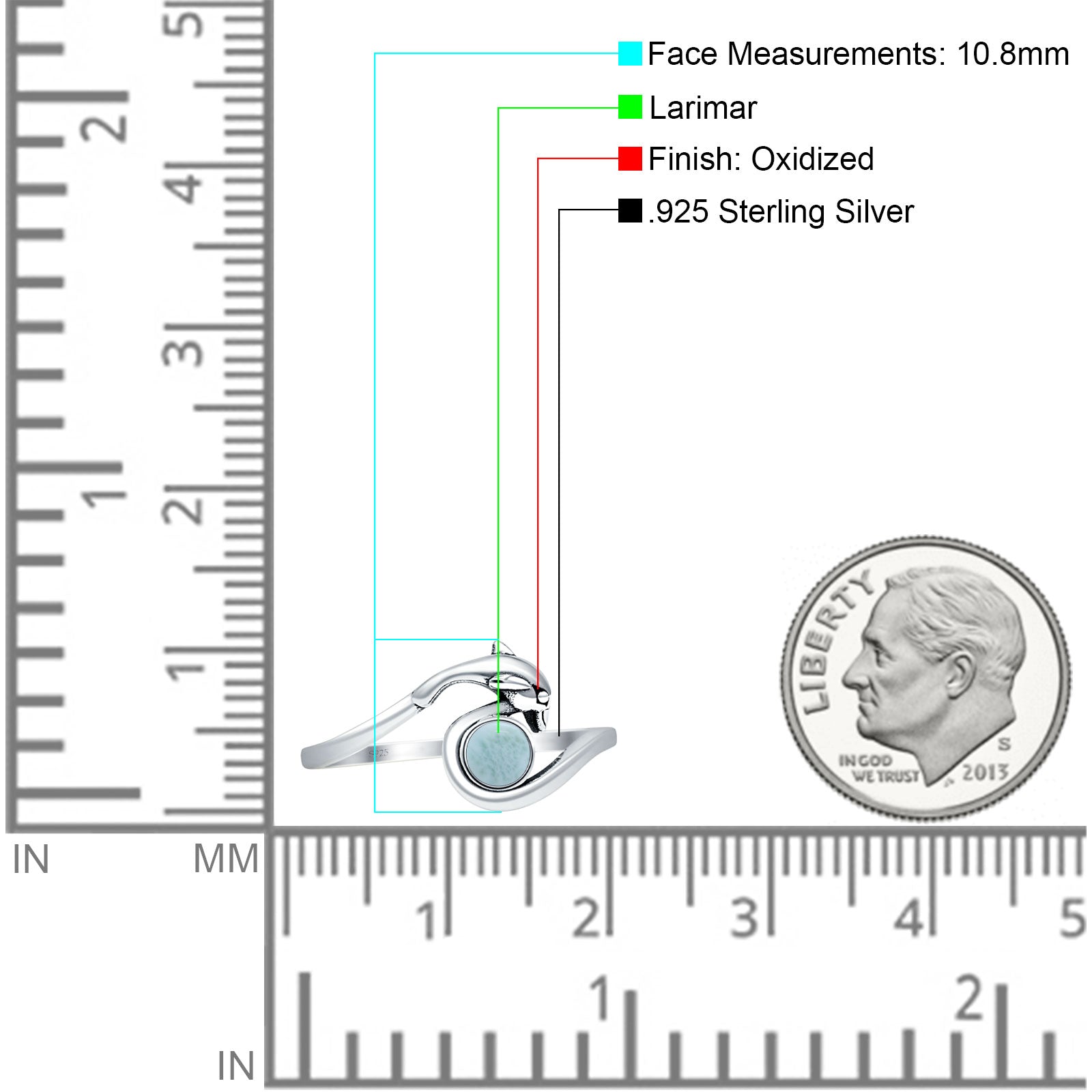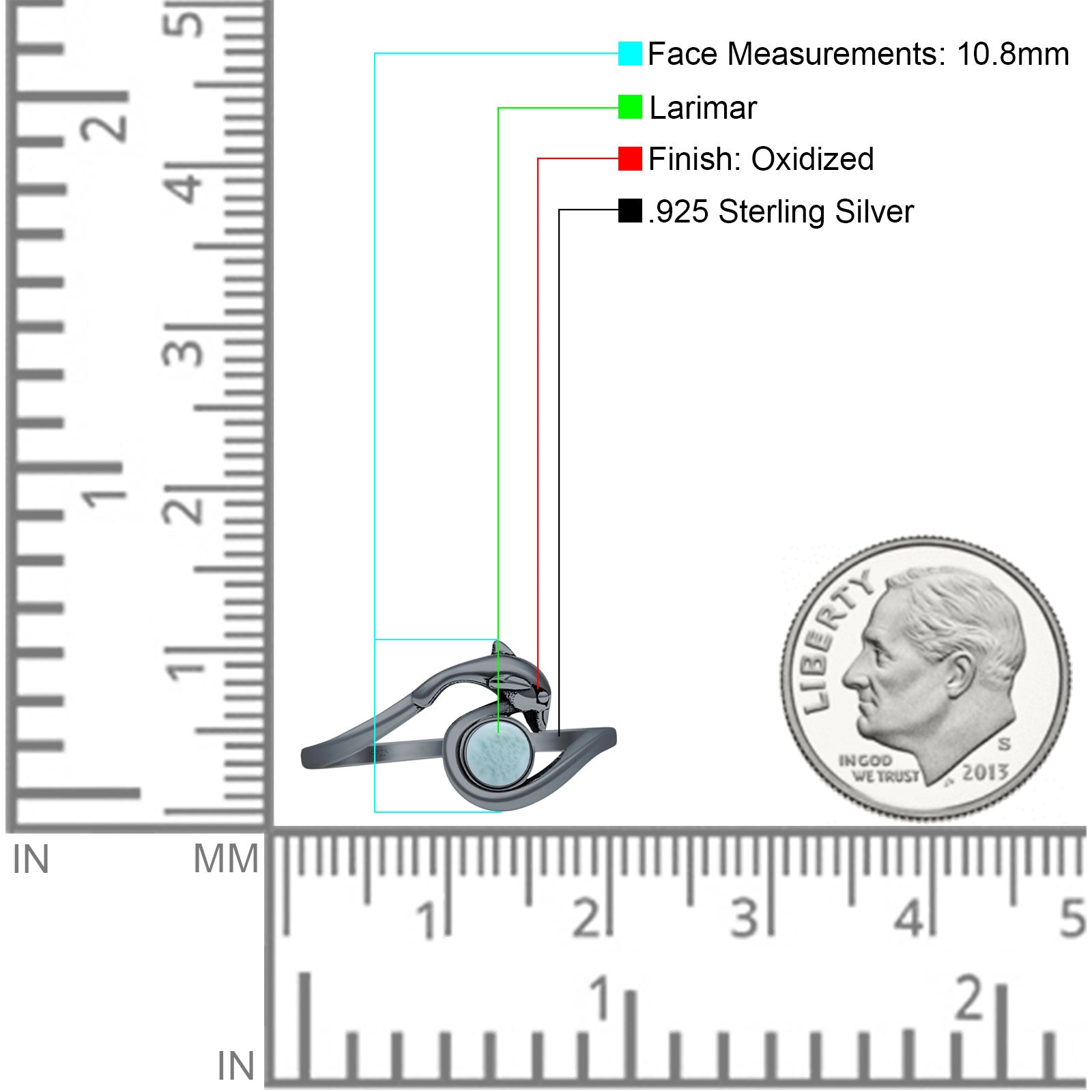 Minimalist 10.8mm Pear Lab Created Blue Opal Turtle Ring Oxidized 925 Sterling Silver