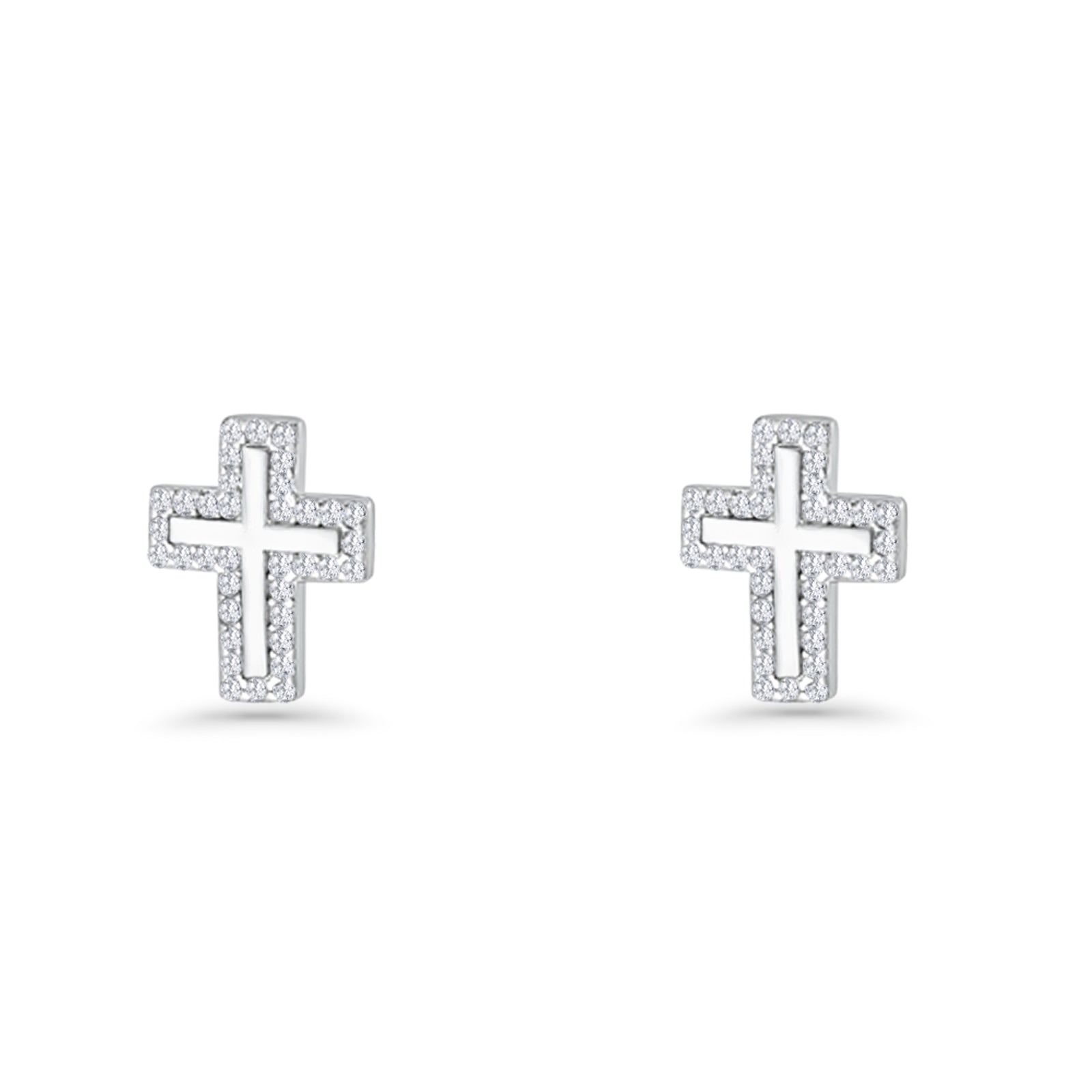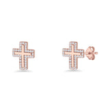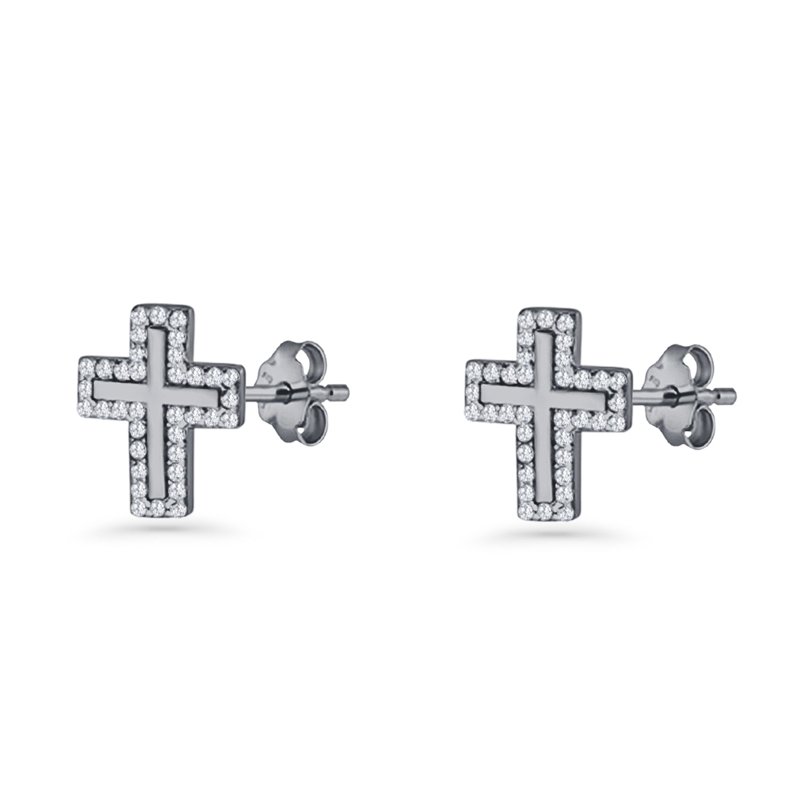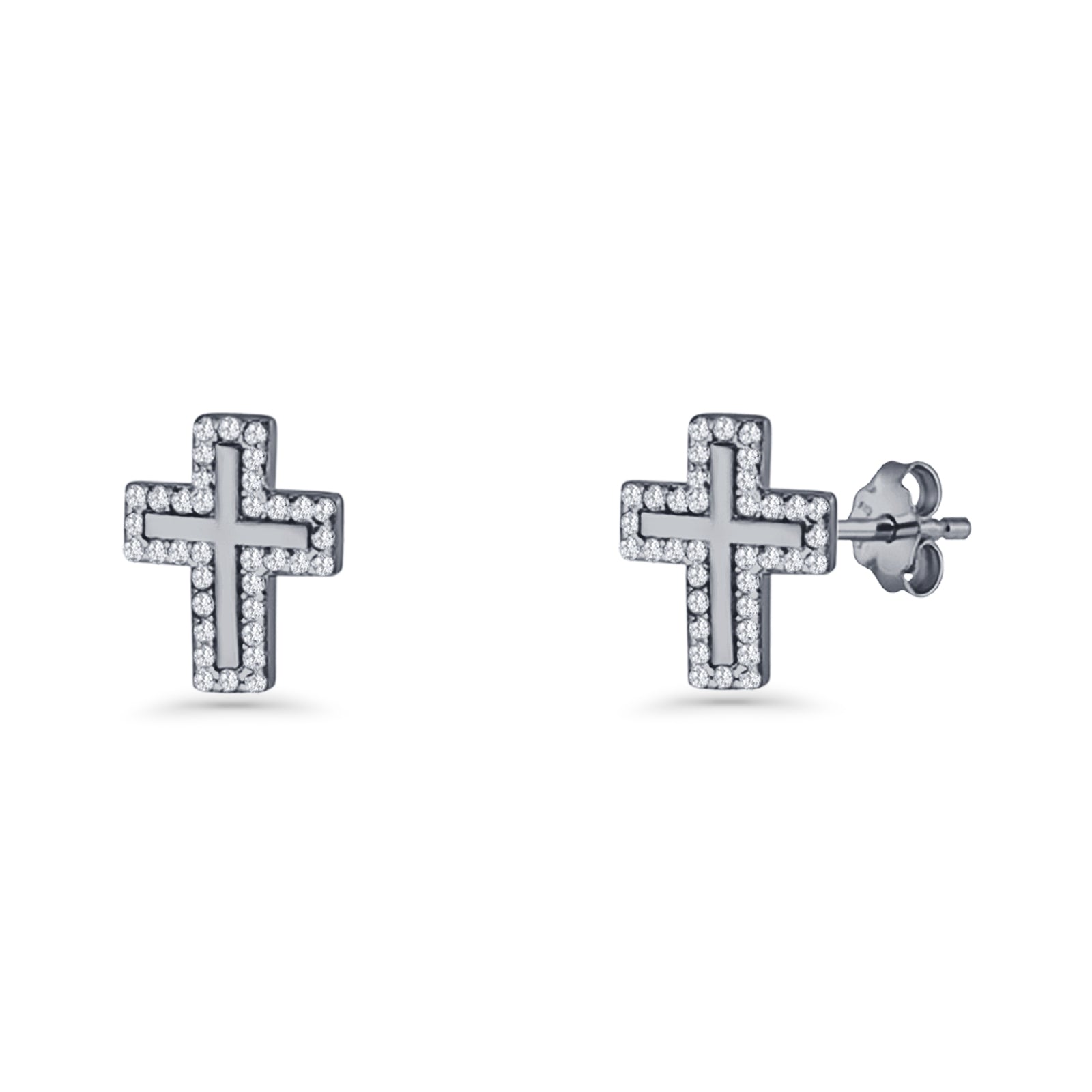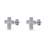 Minimalist 11.4mm Cross Stud Earring Cluster Cubic Zirconia 925 Sterling Silver