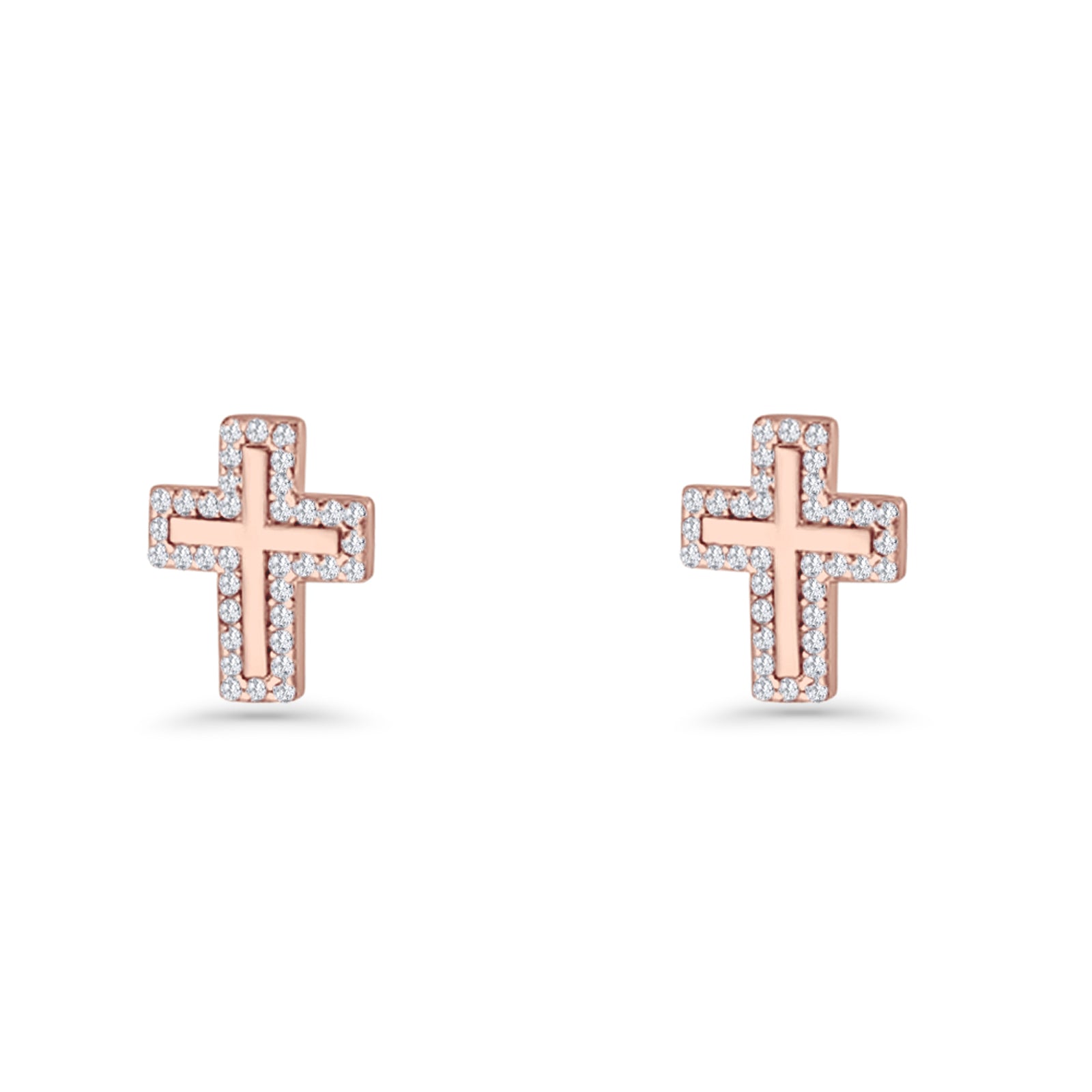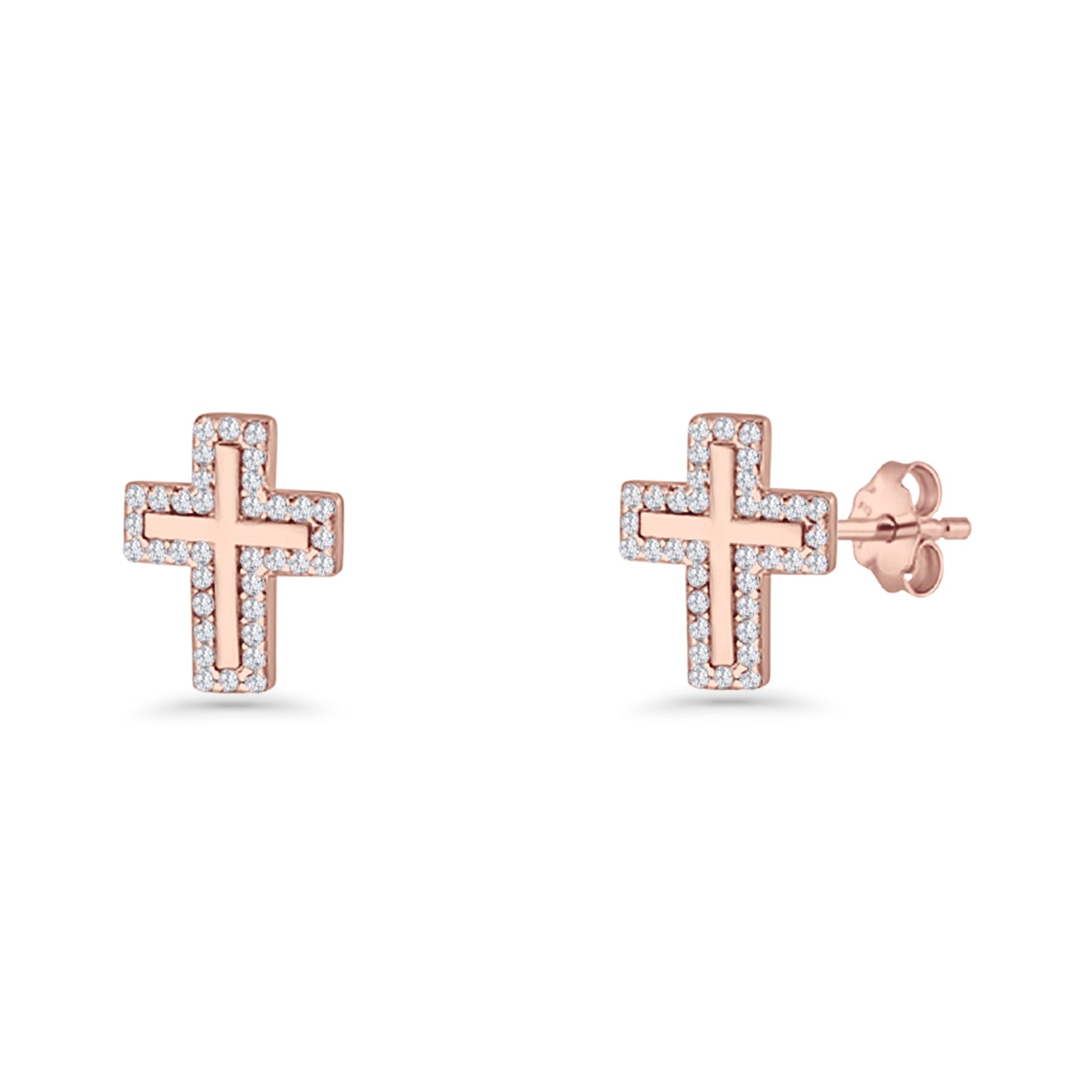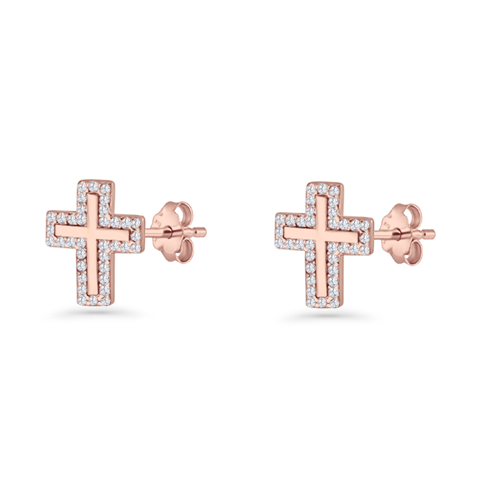Minimalist 11.4mm Cross Stud Earring Cluster Cubic Zirconia 925 Sterling Silver