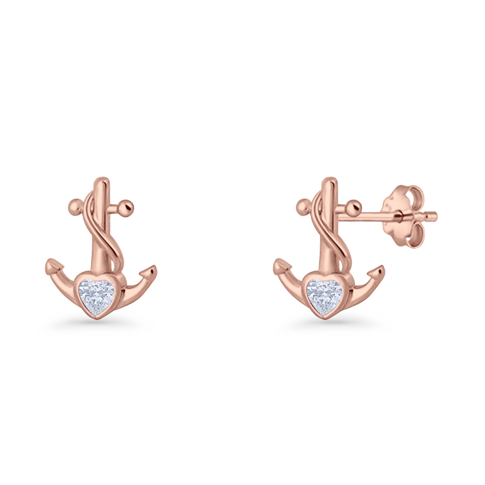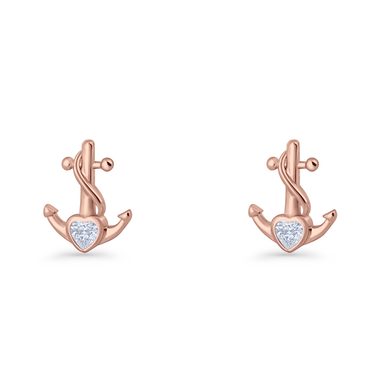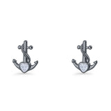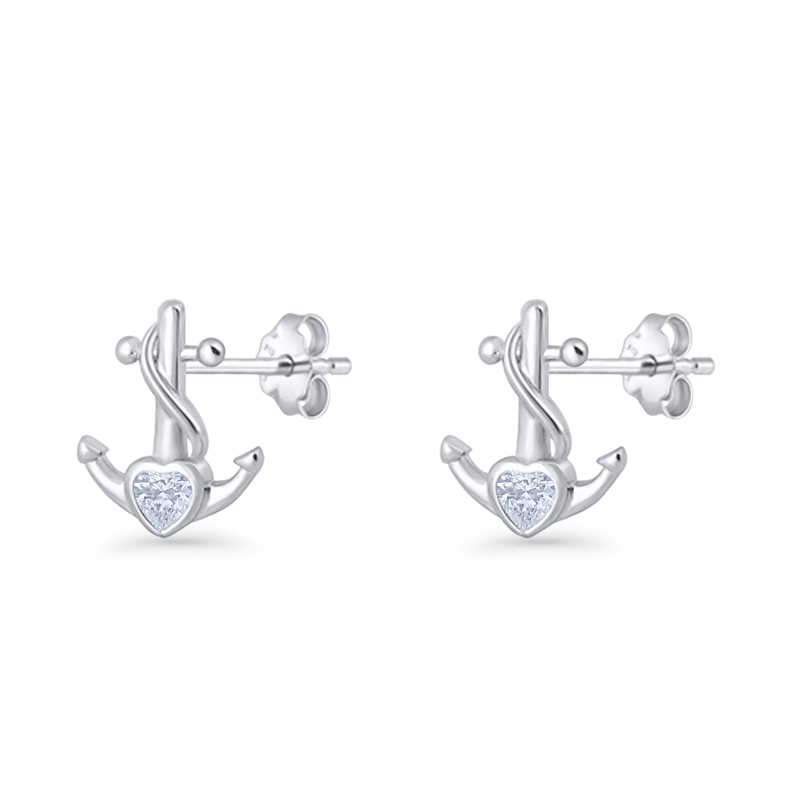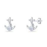 Minimalist 11.6mm Anchor Stud Earring Heart Cubic Zirconia 925 Sterling Silver