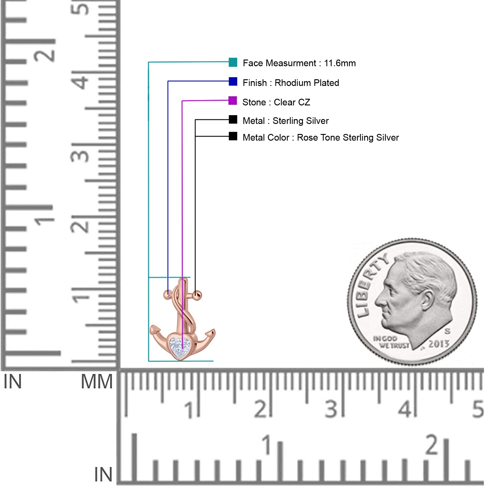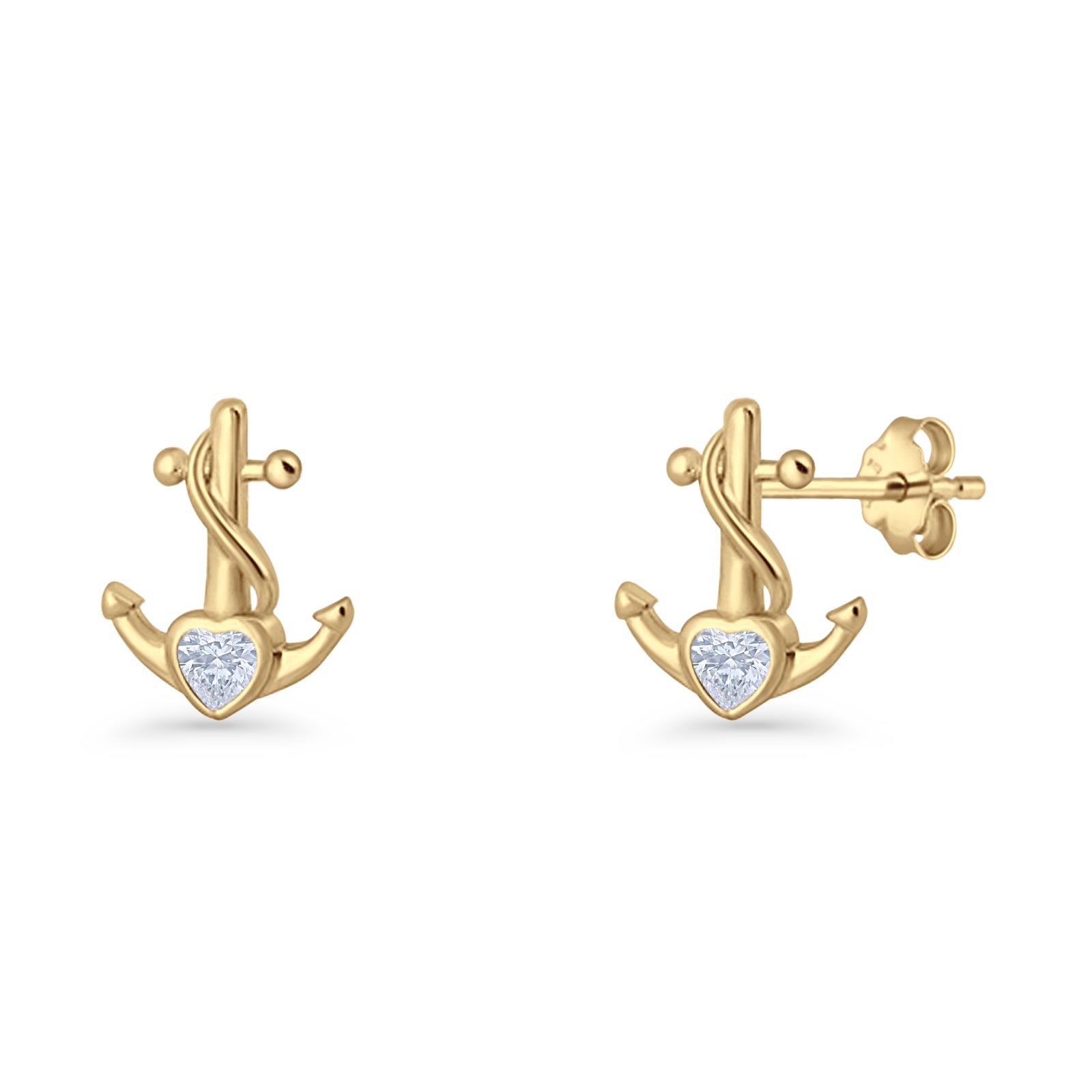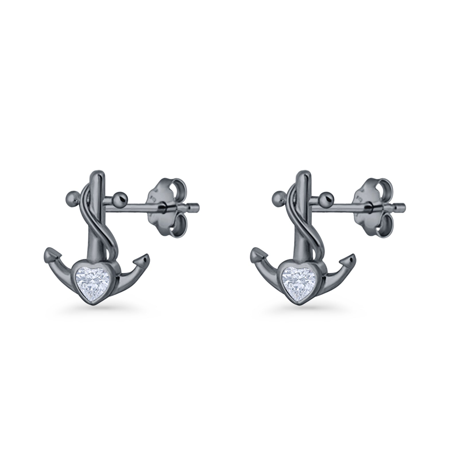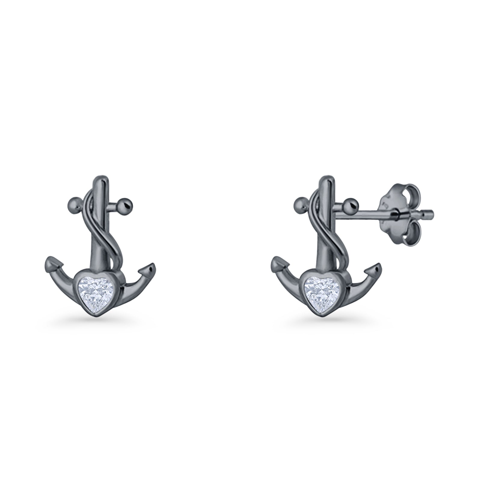 Minimalist 11.6mm Anchor Stud Earring Heart Cubic Zirconia 925 Sterling Silver