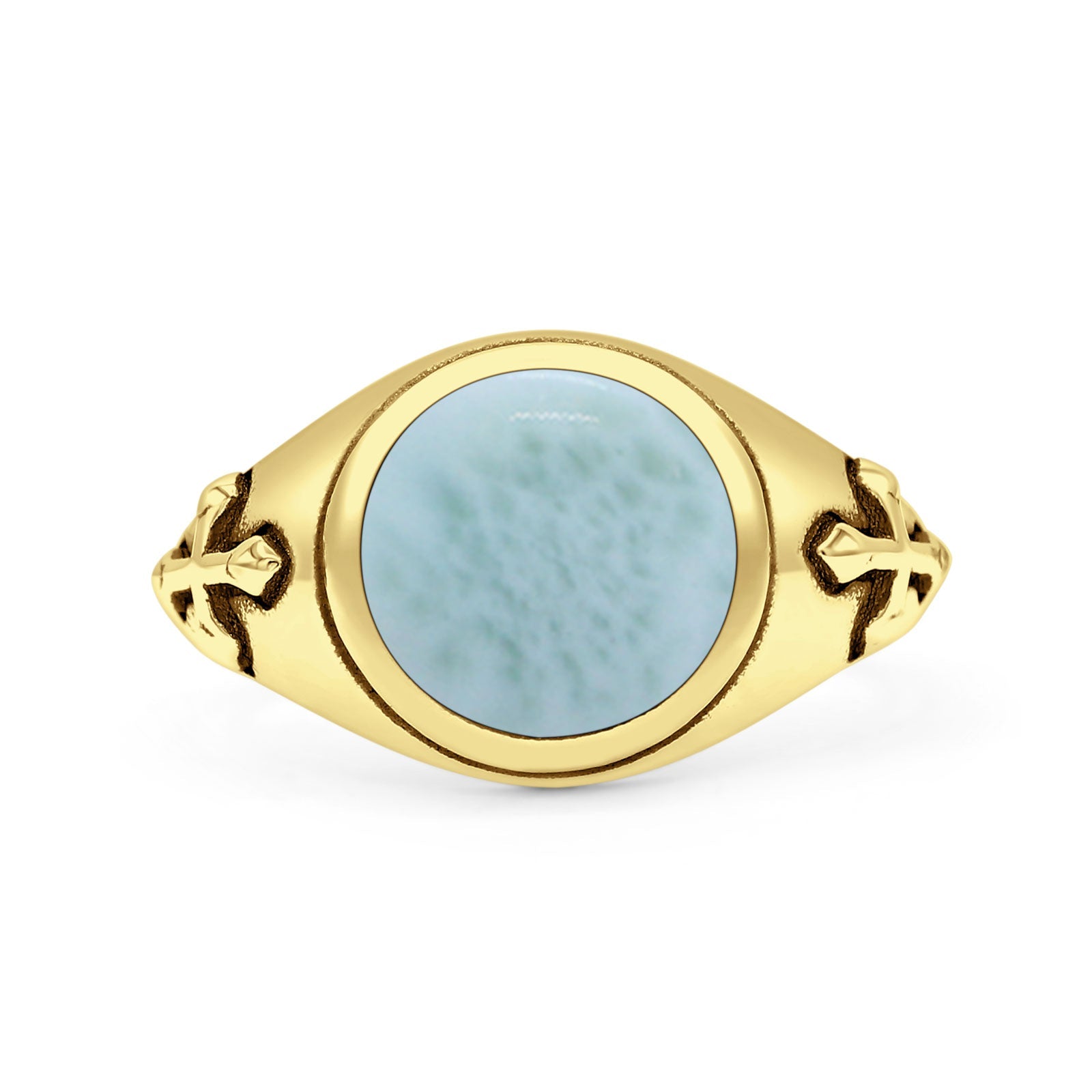 Design: Round Larimar Medieval Cross Ring.