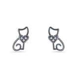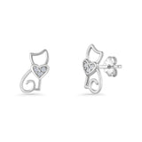 Minimalist 11mm Heart Cat Stud Earring Cubic Zirconia 925 Sterling Silver