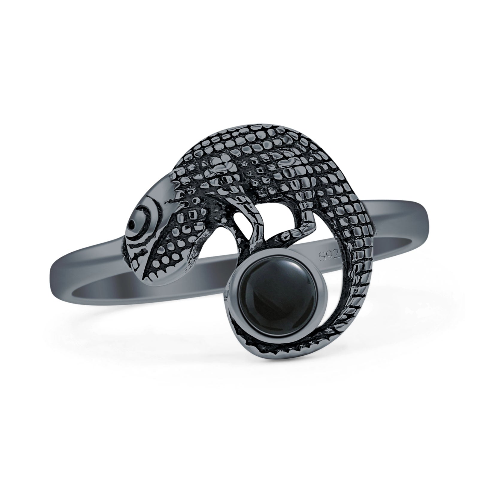 Design: Round Black Onyx Lizard Ring.