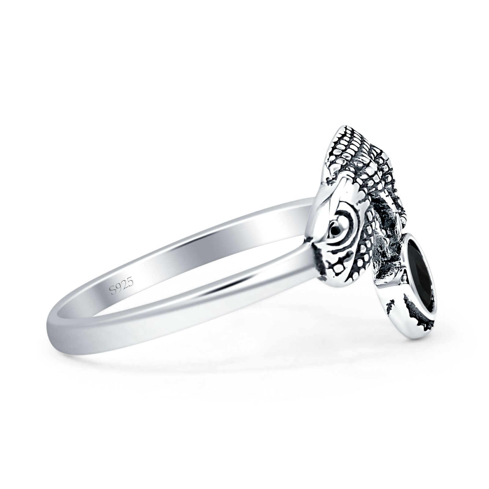 Minimalist 12.5mm Round Lab Created Blue Opal Lizard Ring Oxidized 925 Sterling Silver