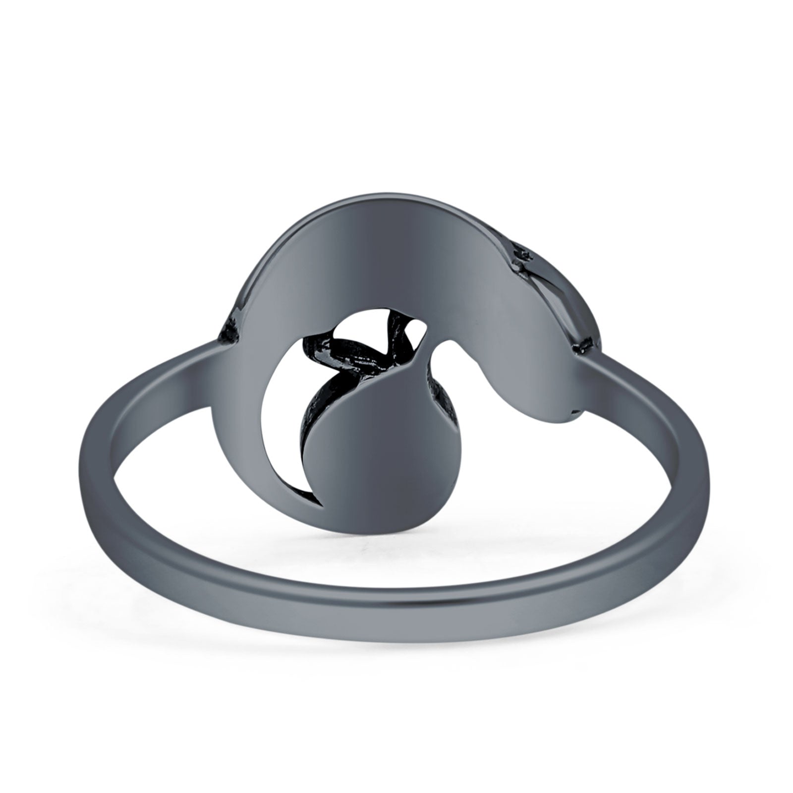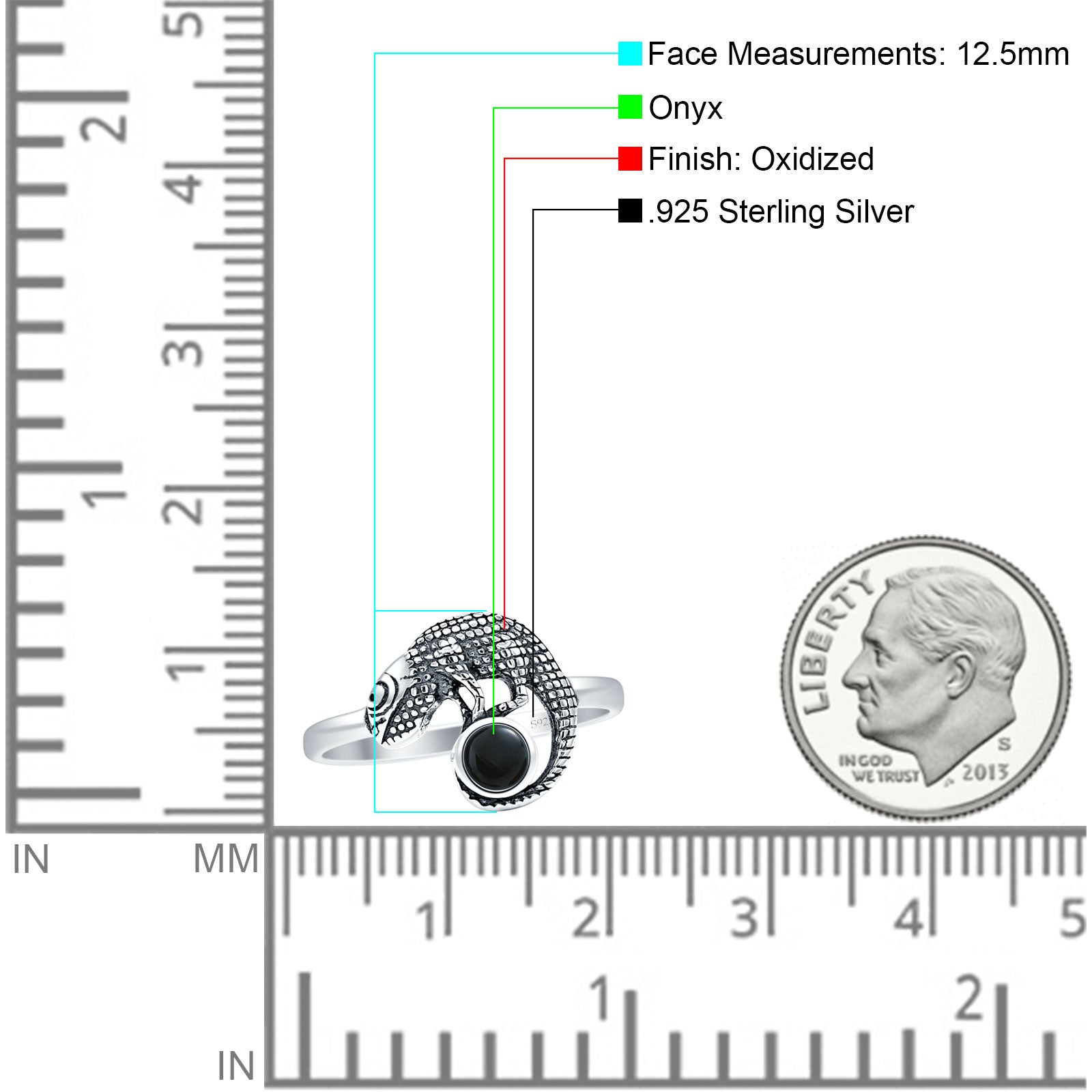 Minimalist 12.5mm Round Black Onyx Lizard Ring Oxidized 925 Sterling Silver