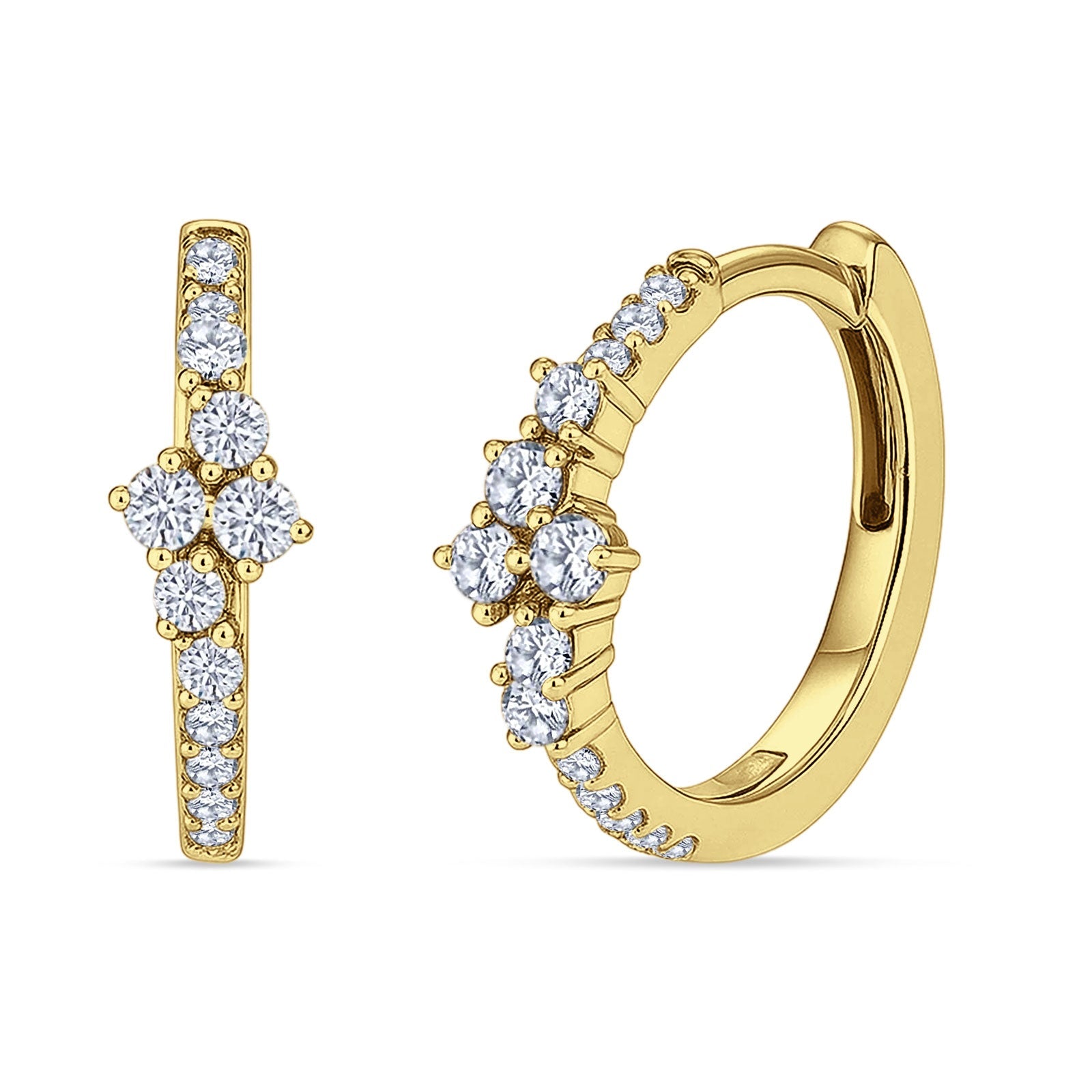 Style: Round Cluster CZ Huggie Hoop Earrings.