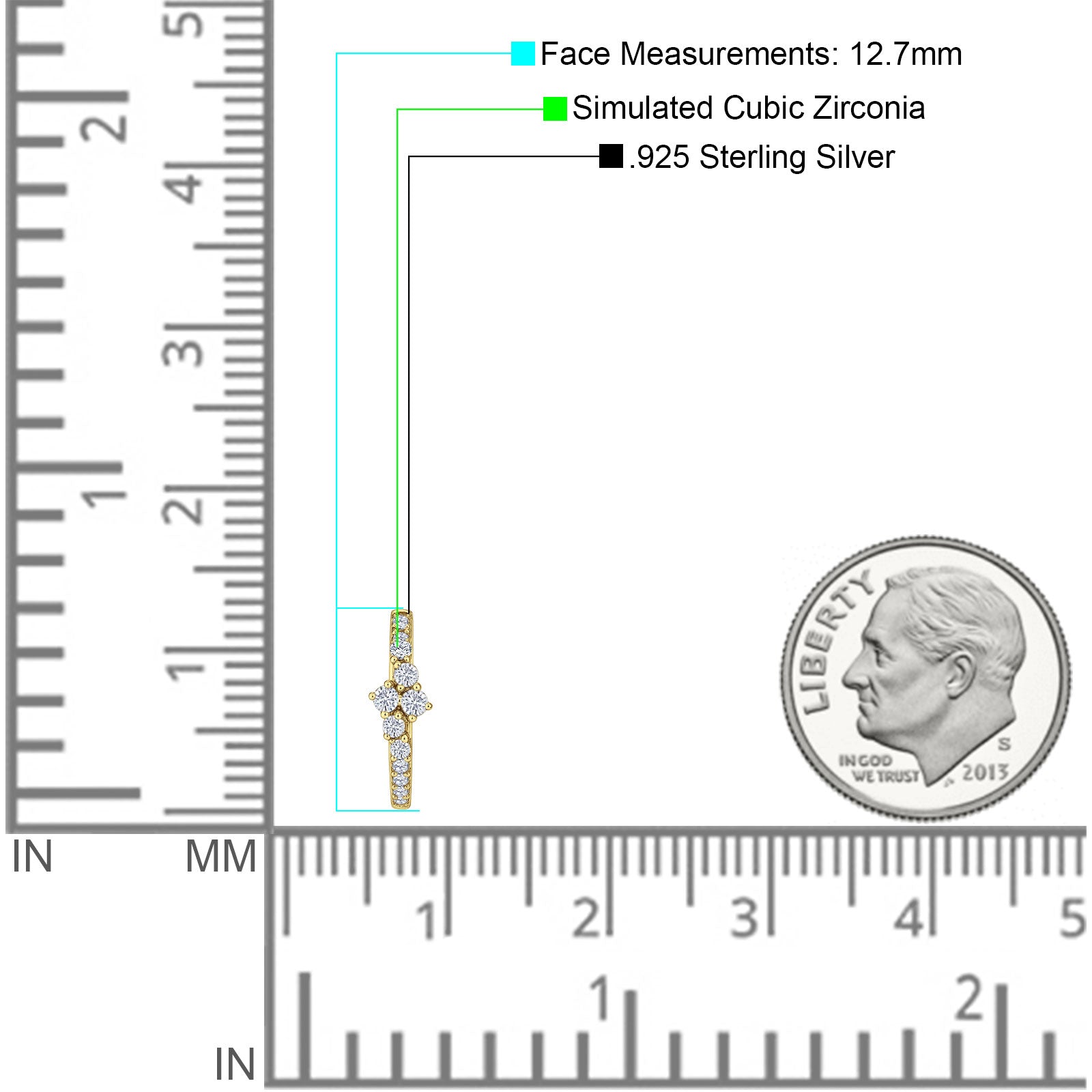 Minimalist 12.7mm Round Cubic Zirconia Hoop Earrings 925 Sterling Silver