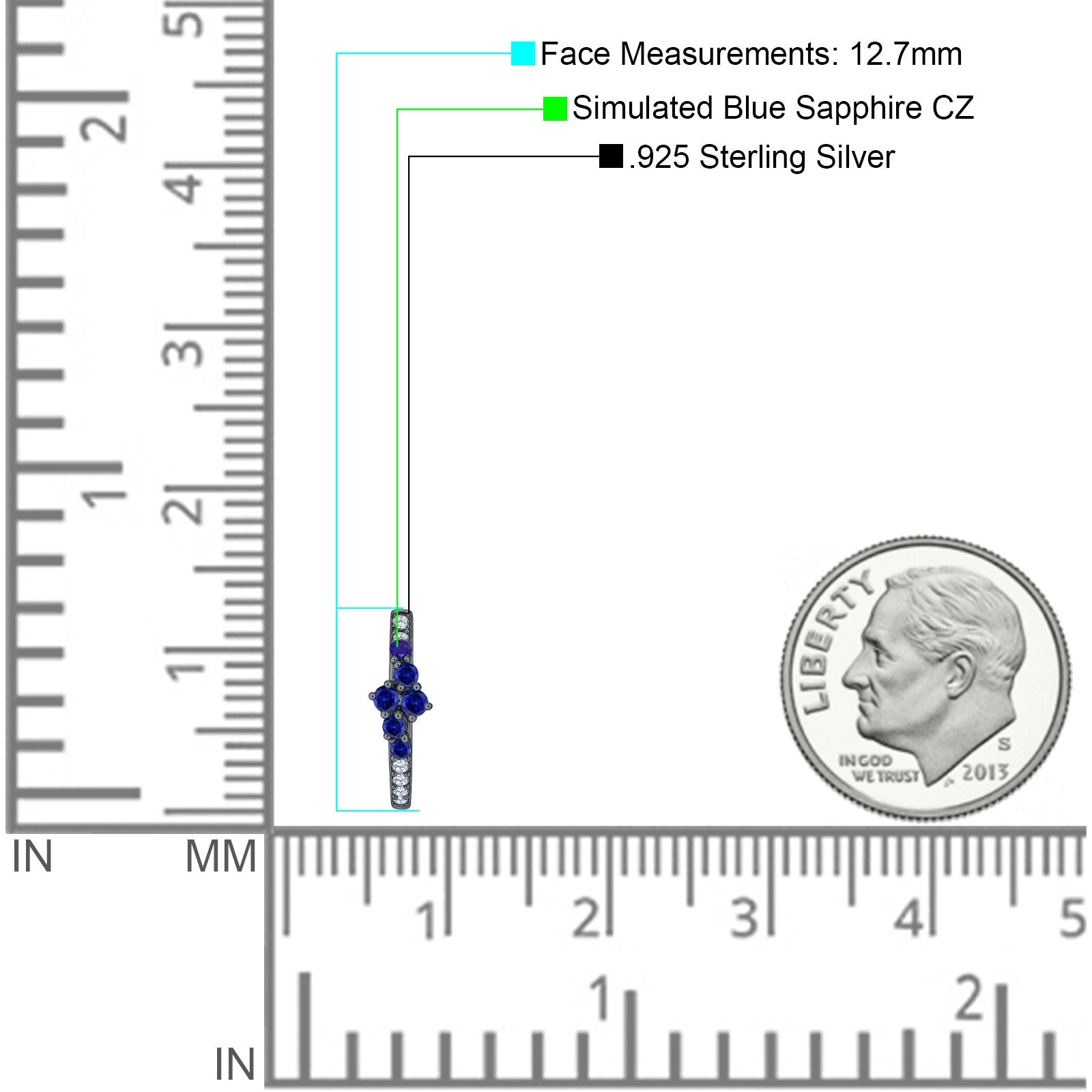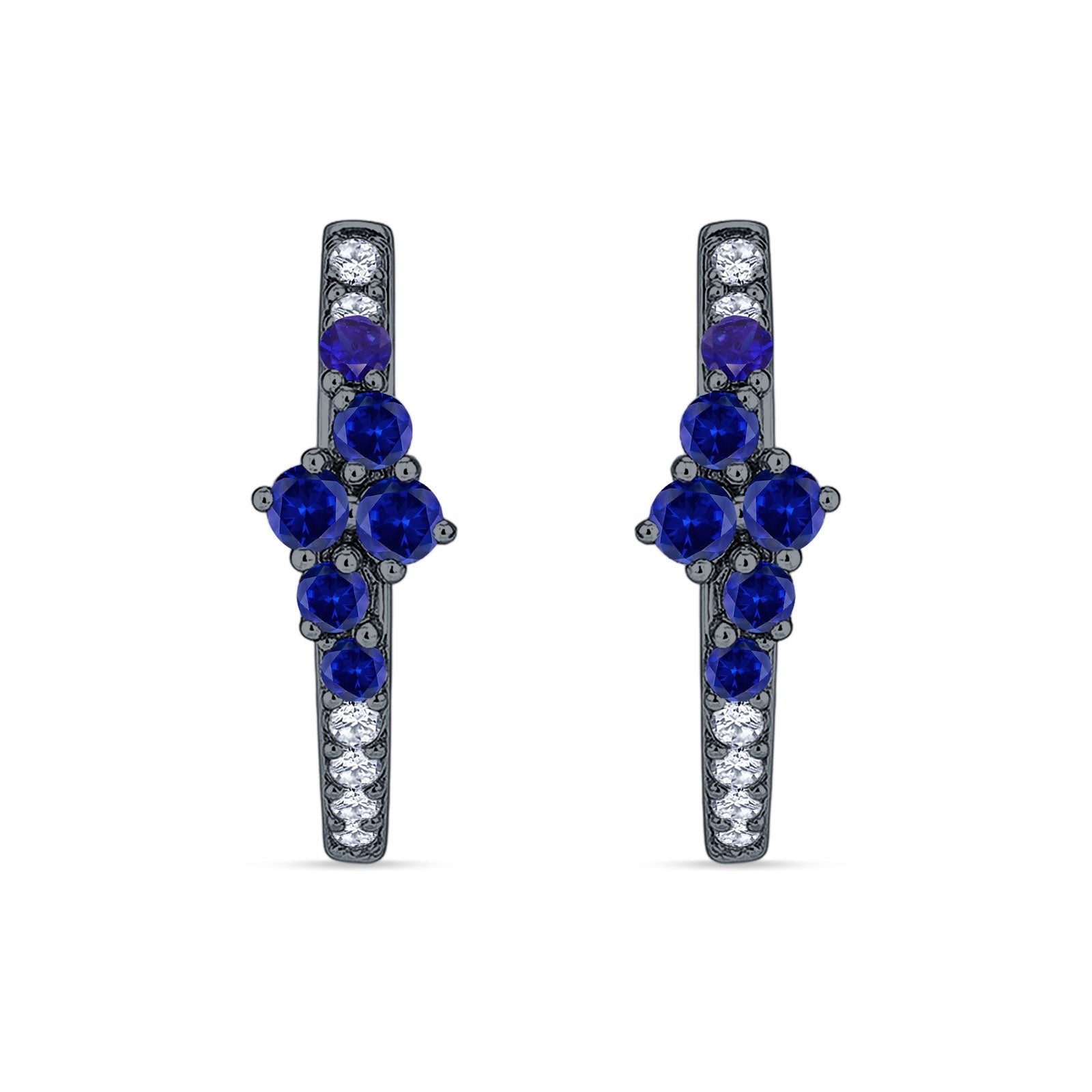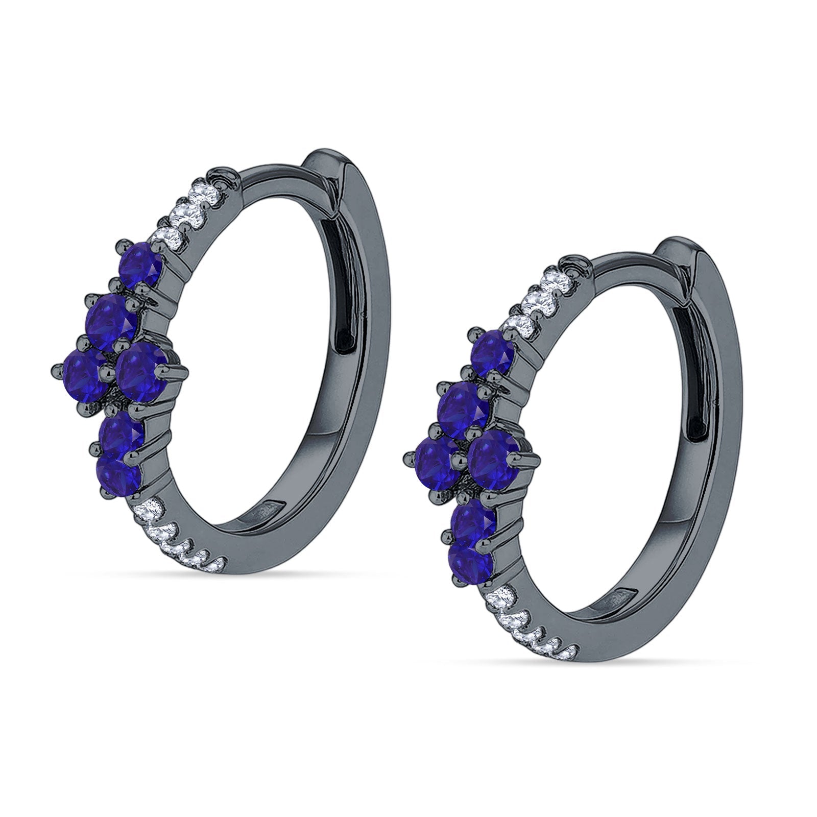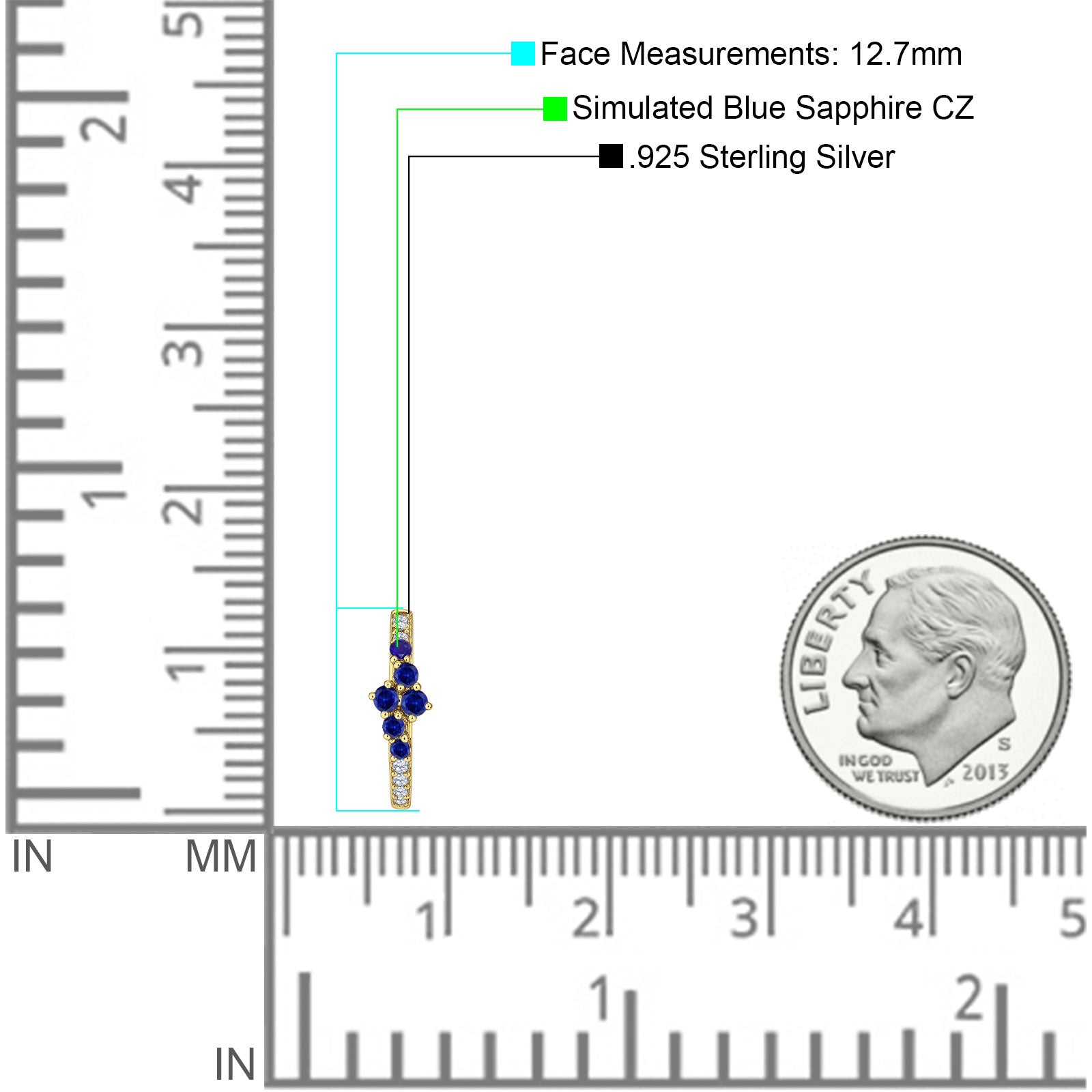 Minimalist 12.7mm Round CZ & Blue Sapphire CZ Hoop Earrings 925 Sterling Silver