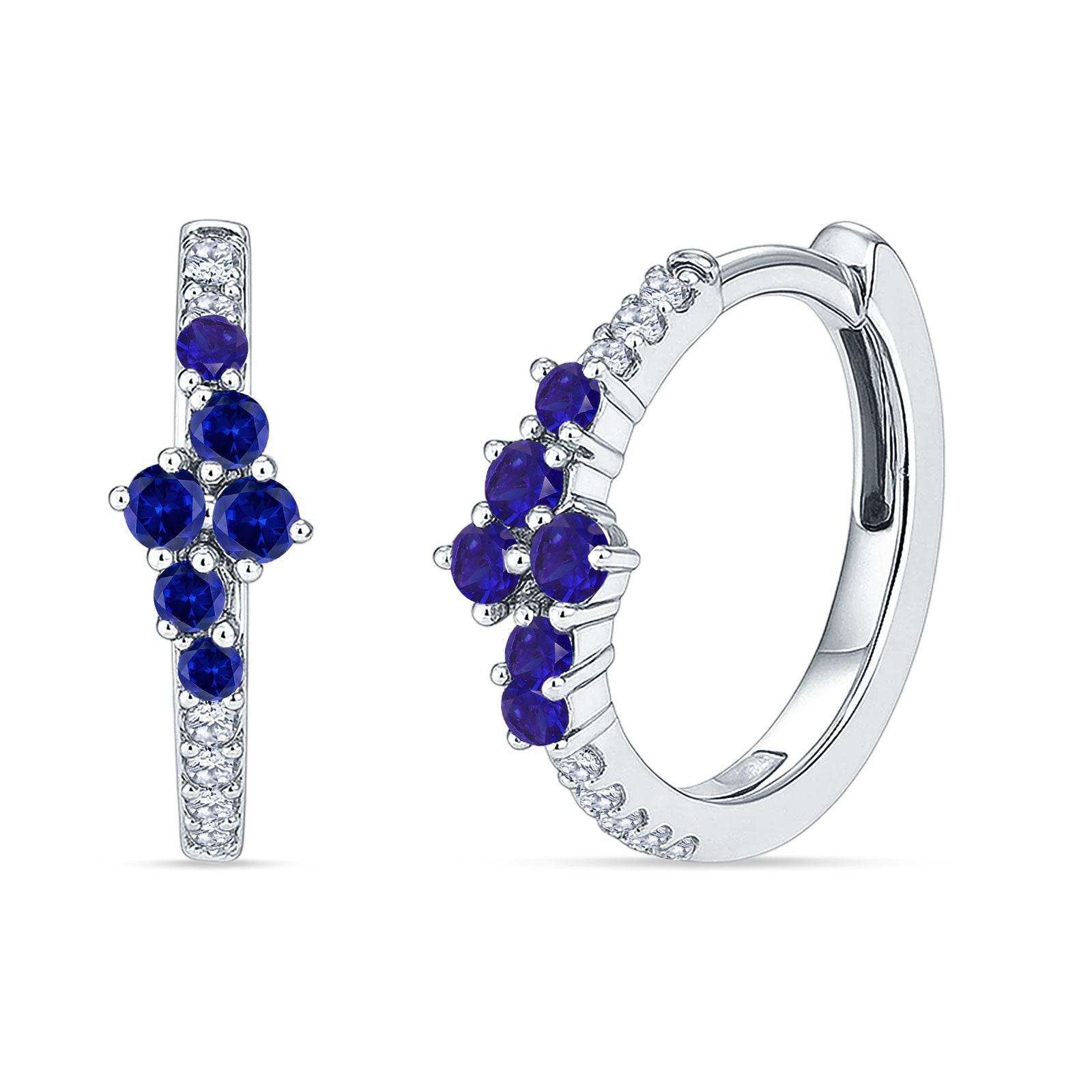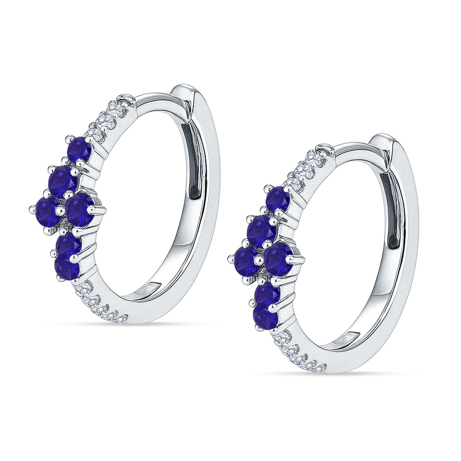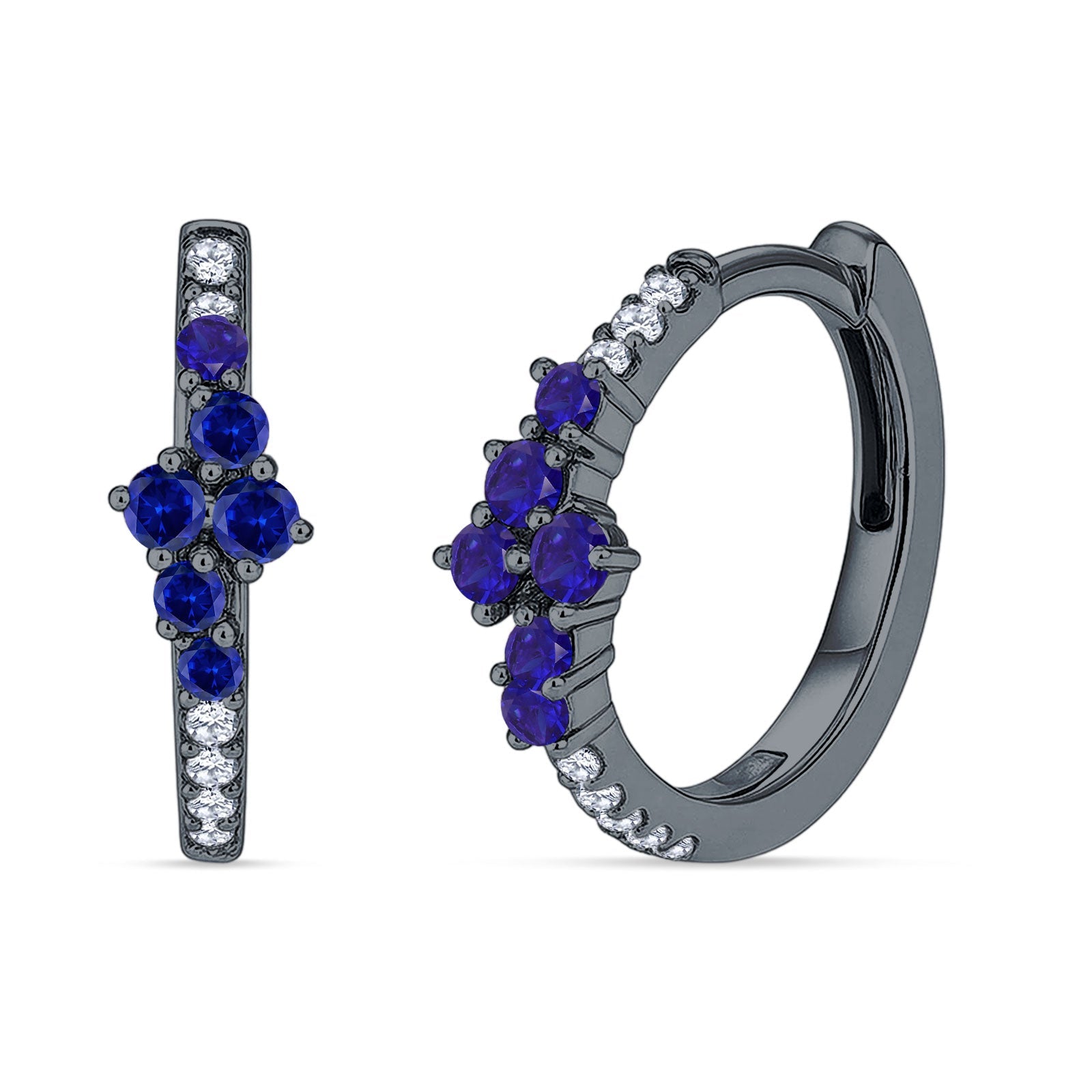 Minimalist 12.7mm Round CZ & Blue Sapphire CZ Hoop Earrings 925 Sterling Silver