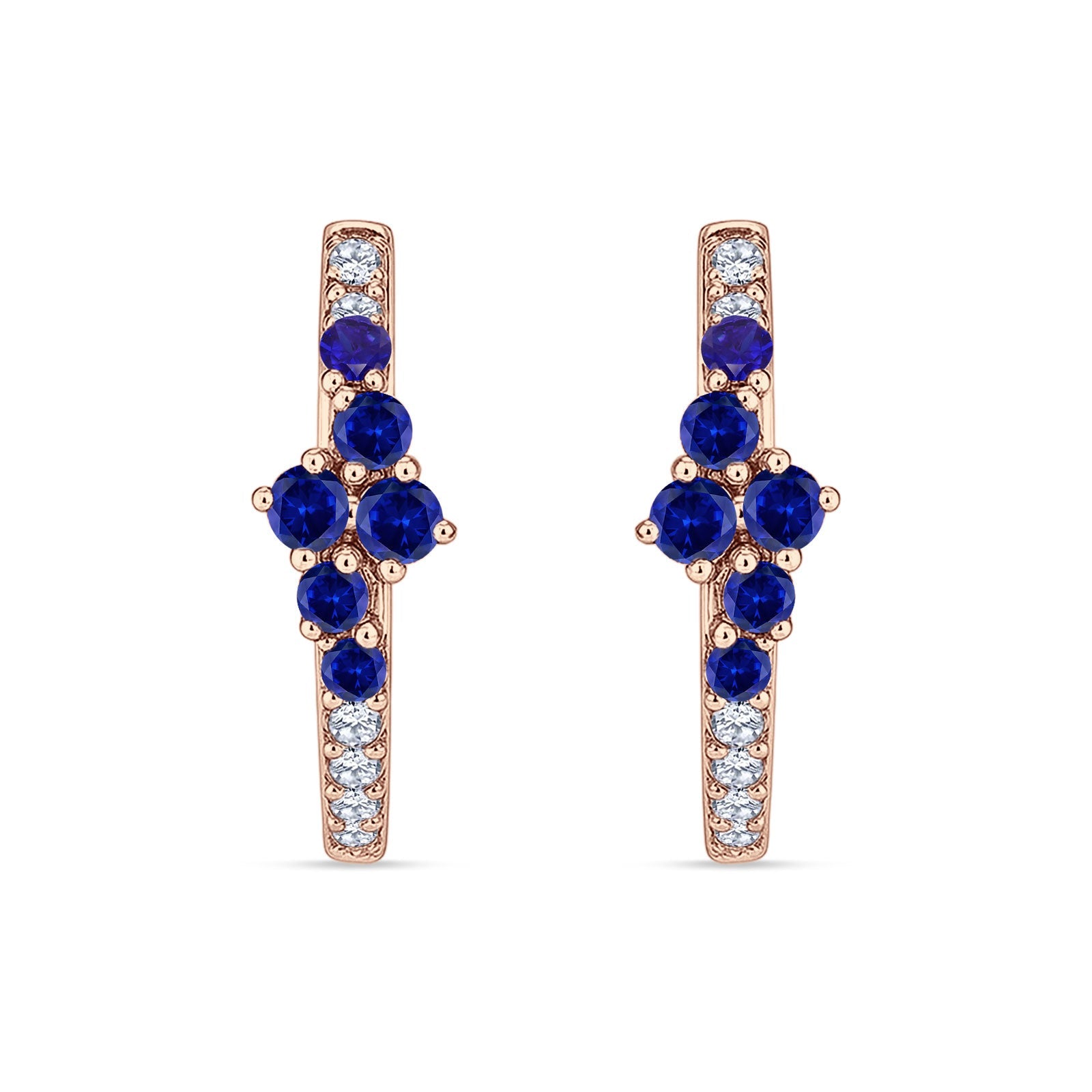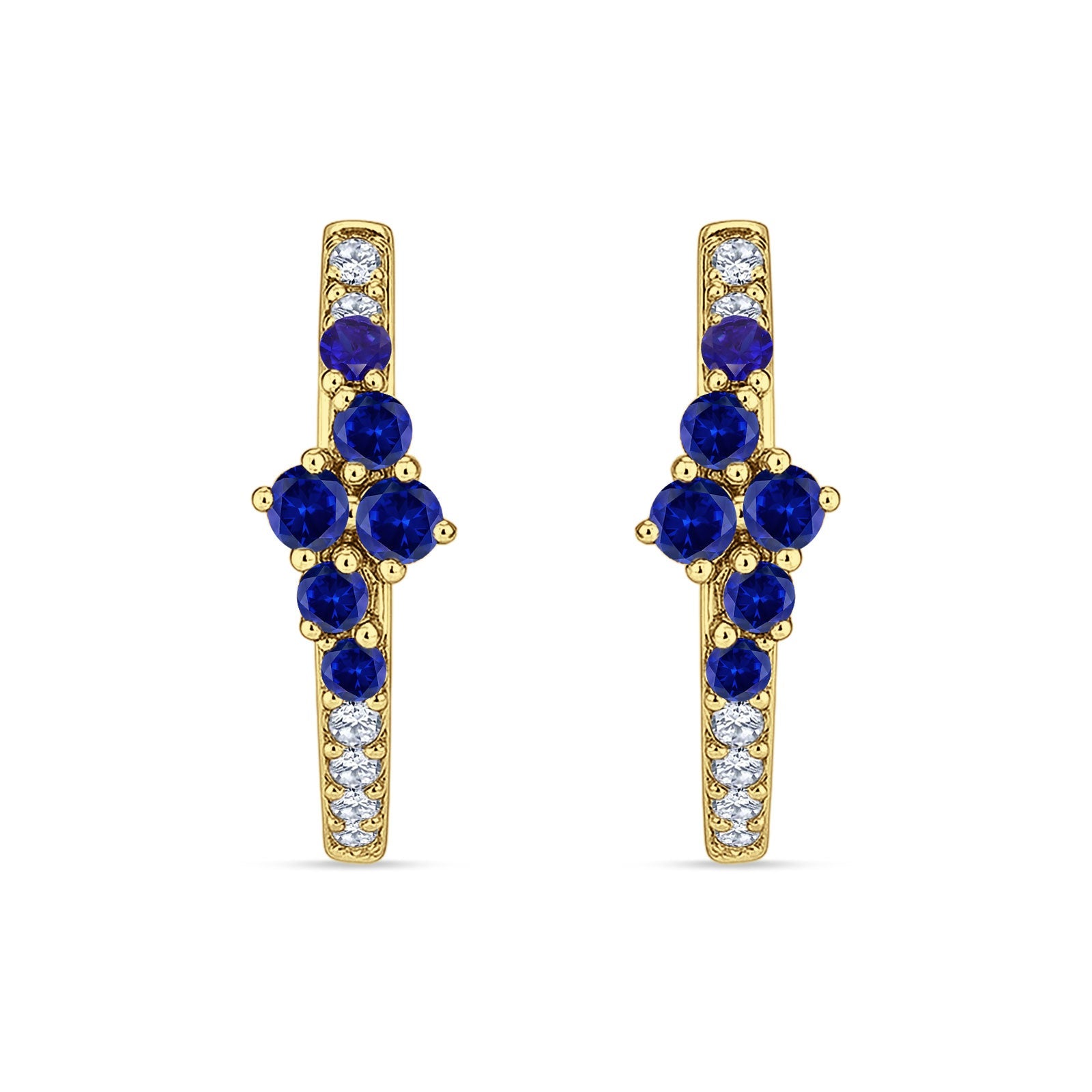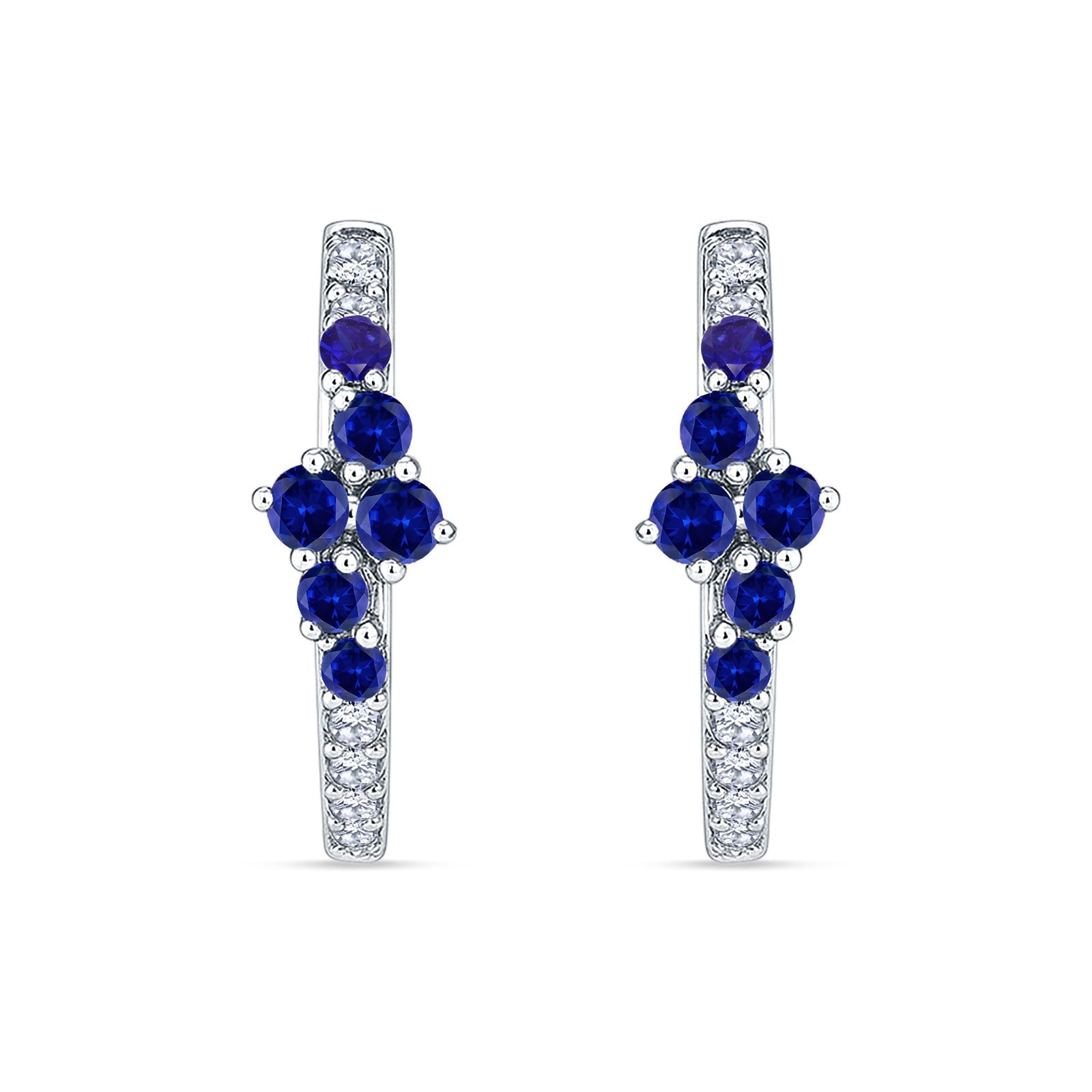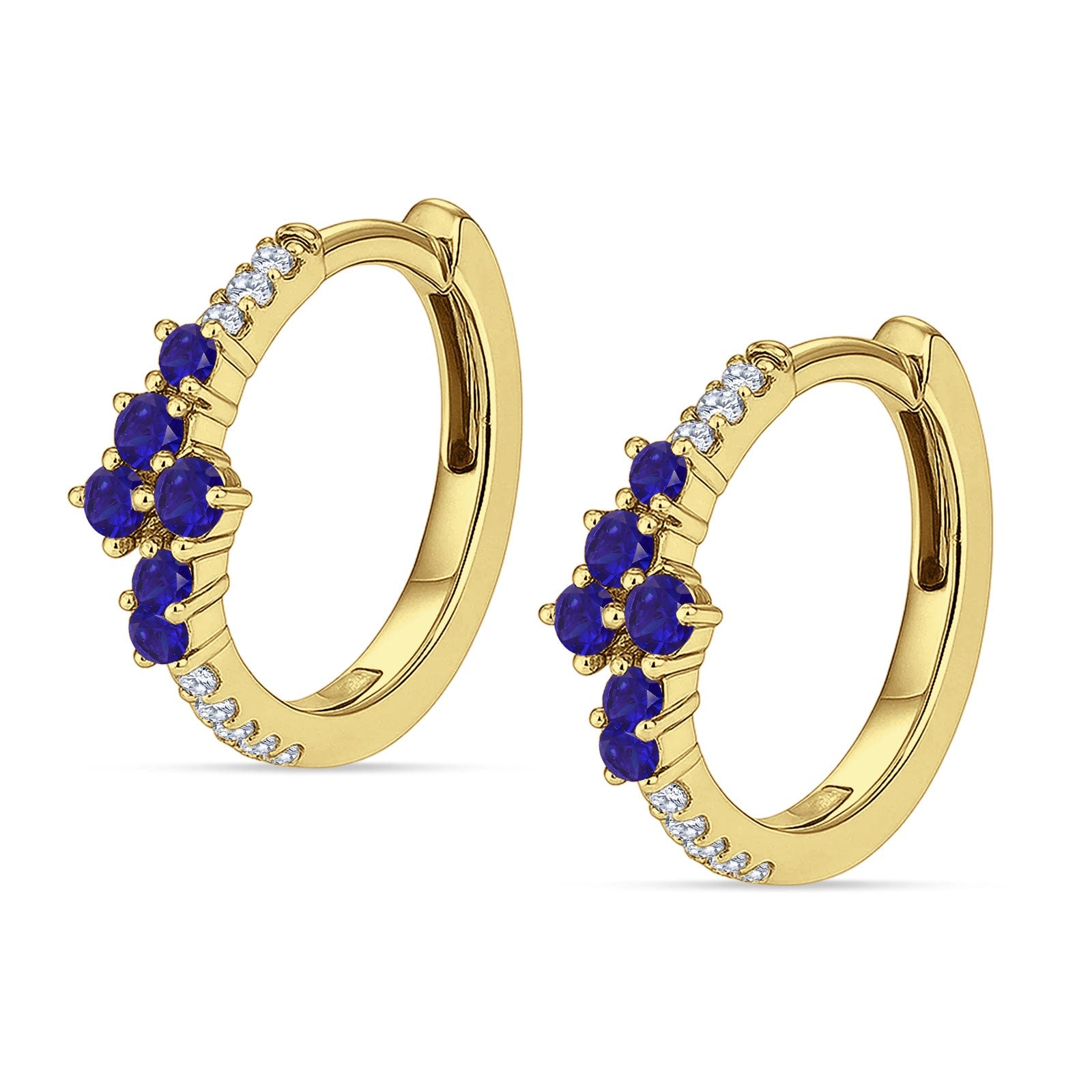 Minimalist 12.7mm Round CZ & Blue Sapphire CZ Hoop Earrings 925 Sterling Silver