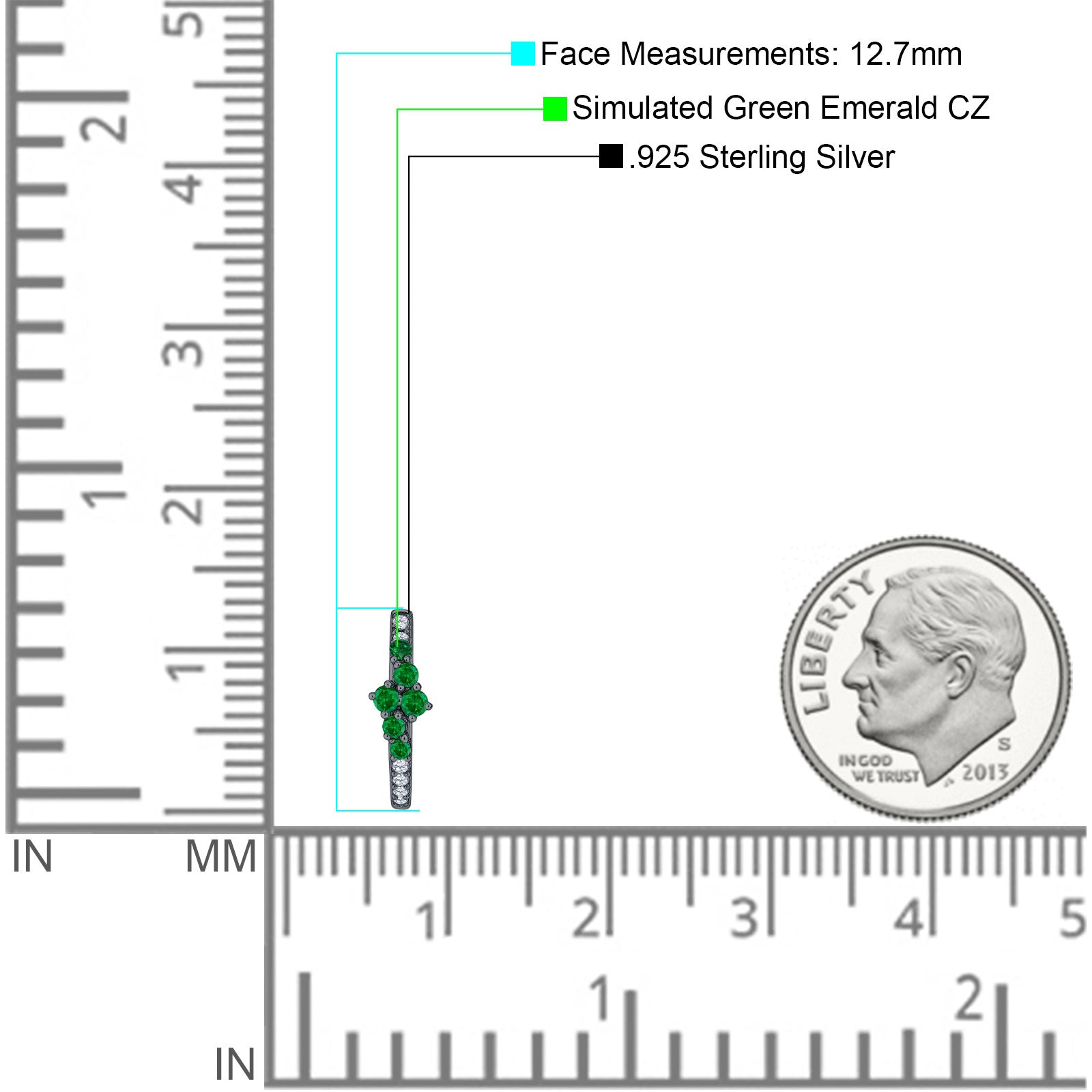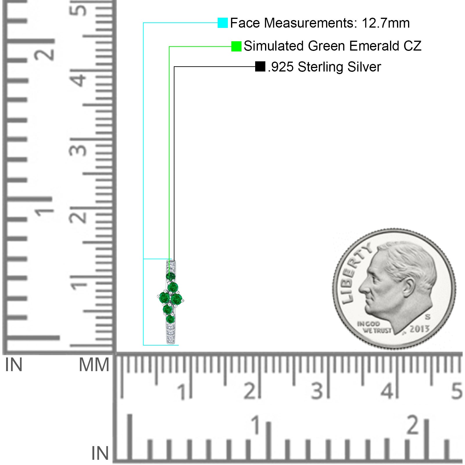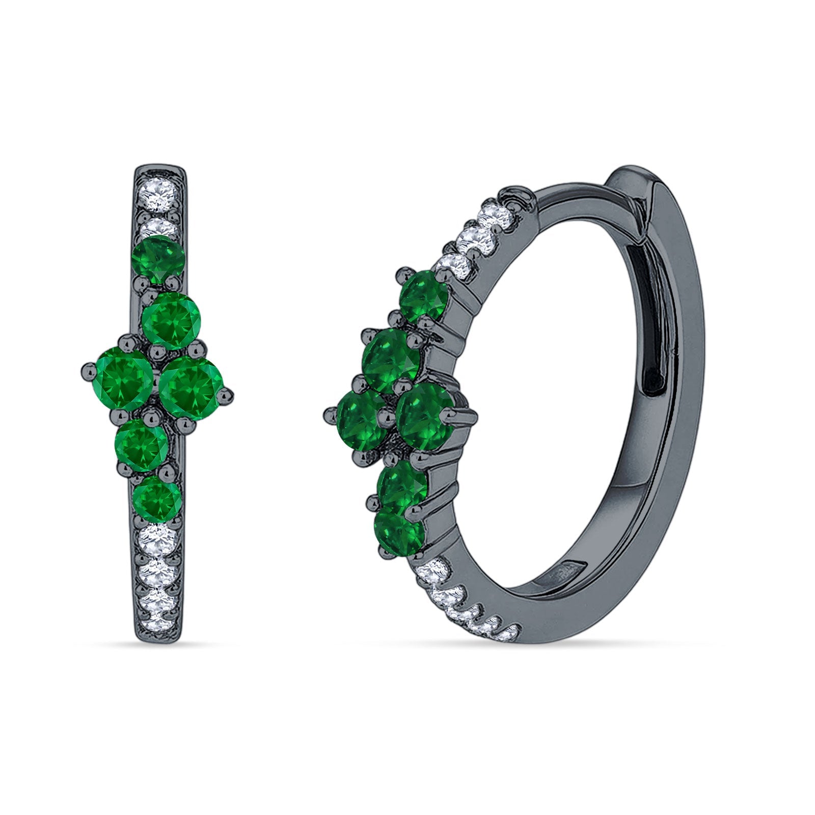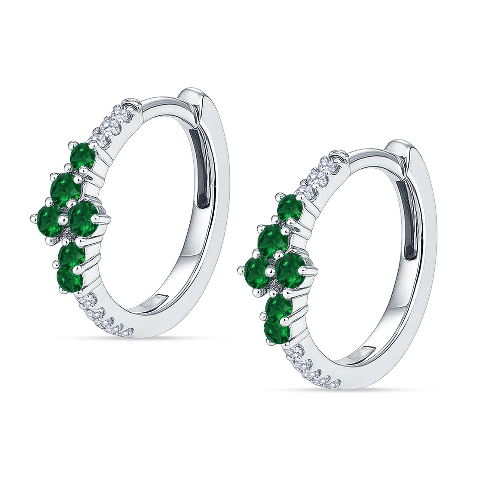 Minimalist 12.7mm Round CZ & Green Emerald CZ Hoop Earrings 925 Sterling Silver