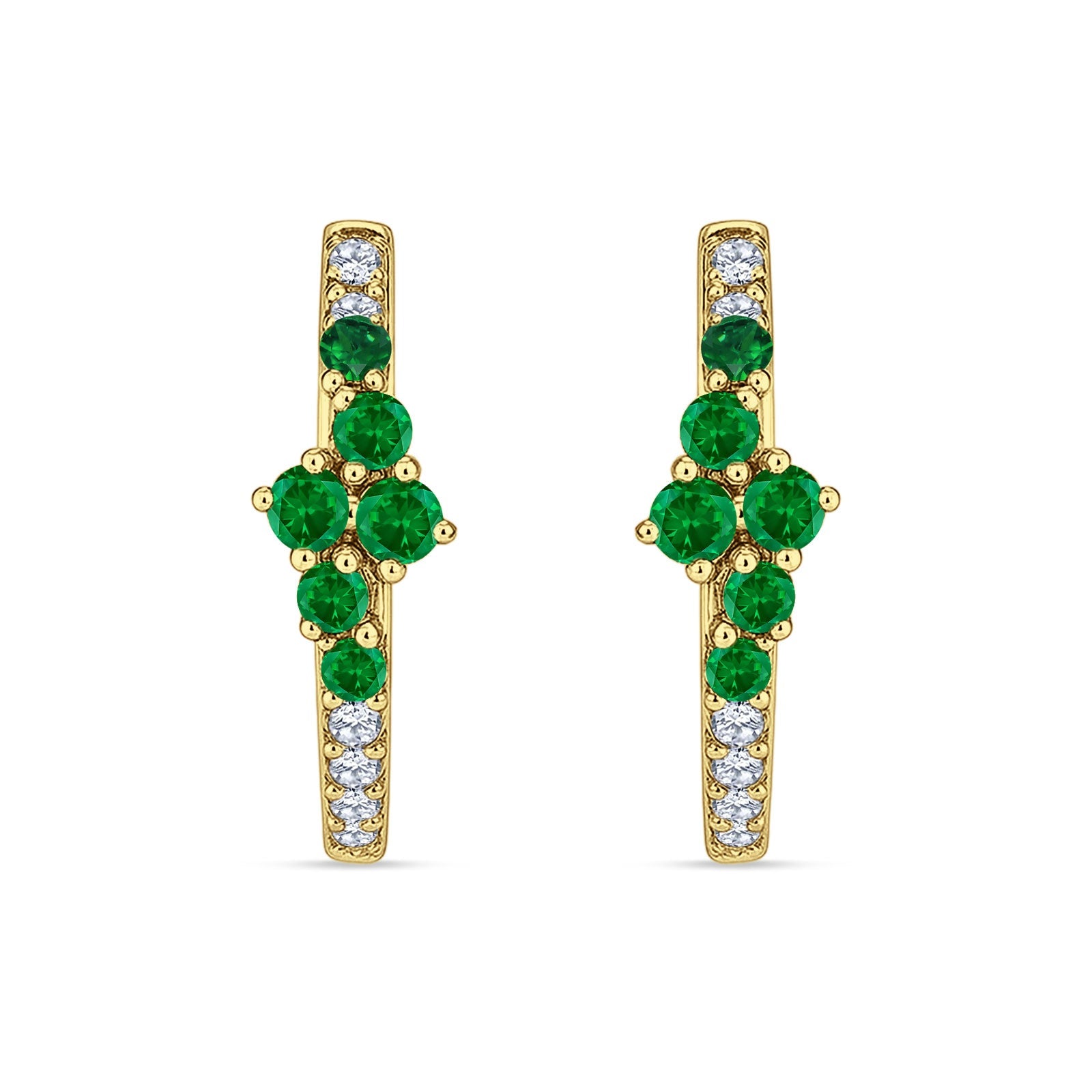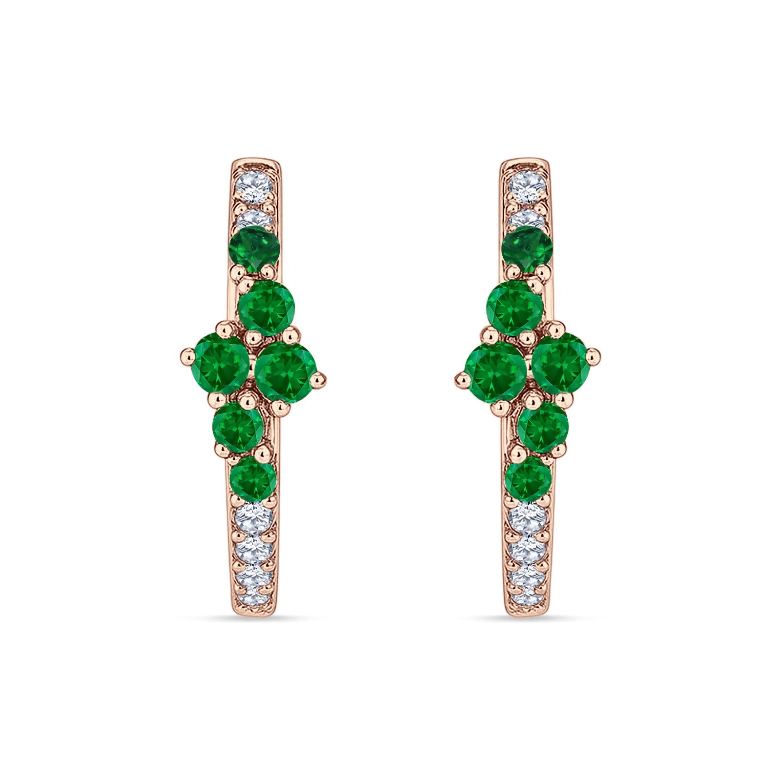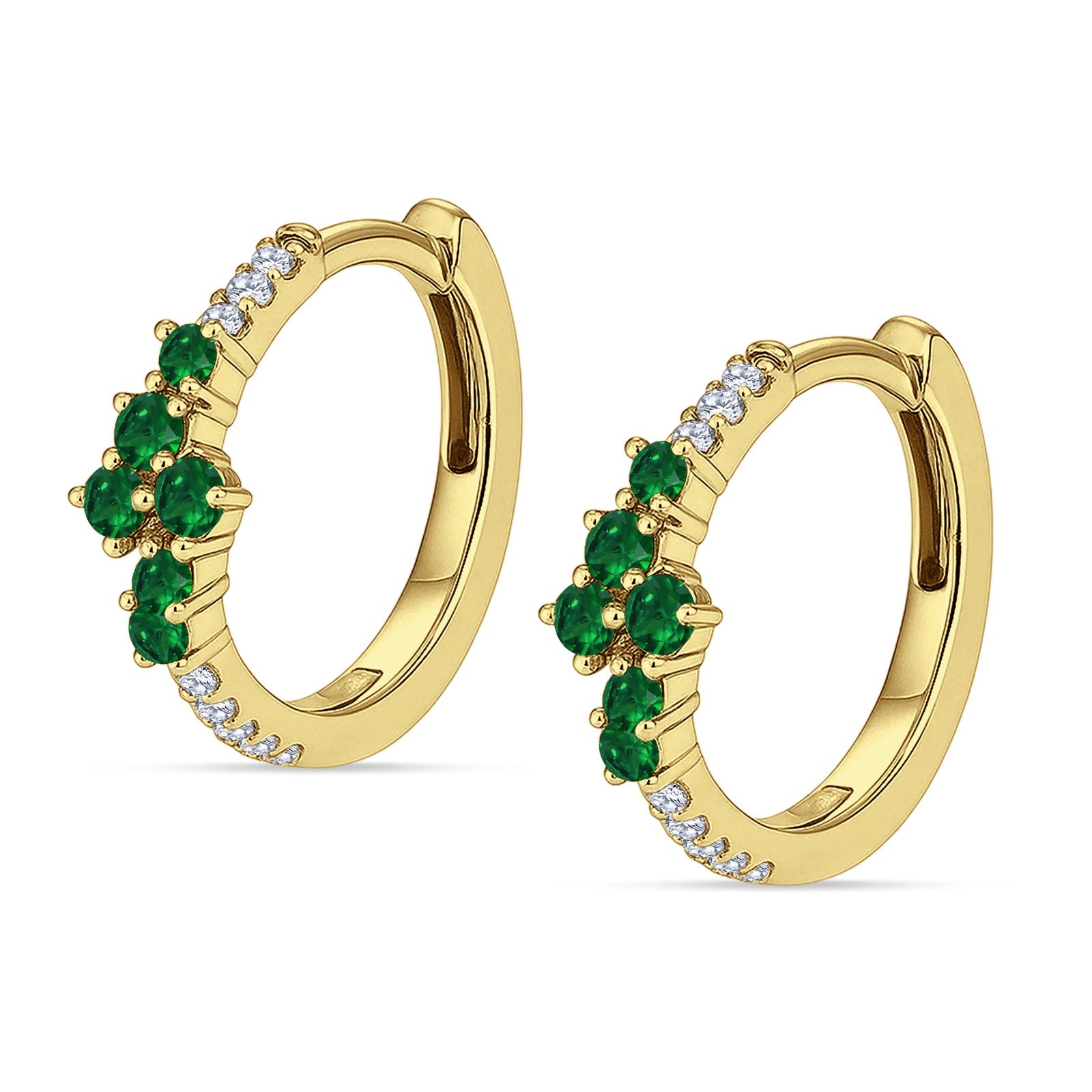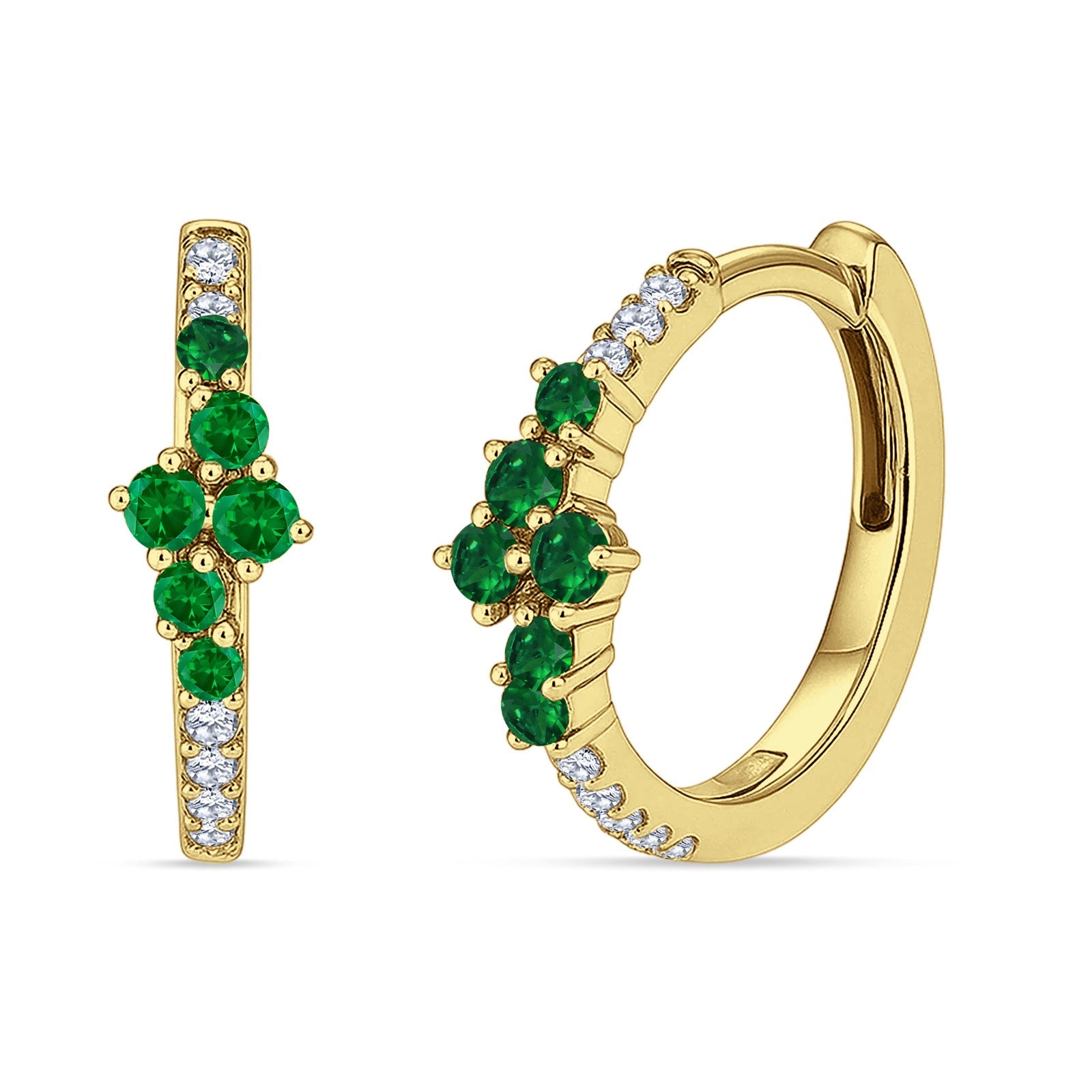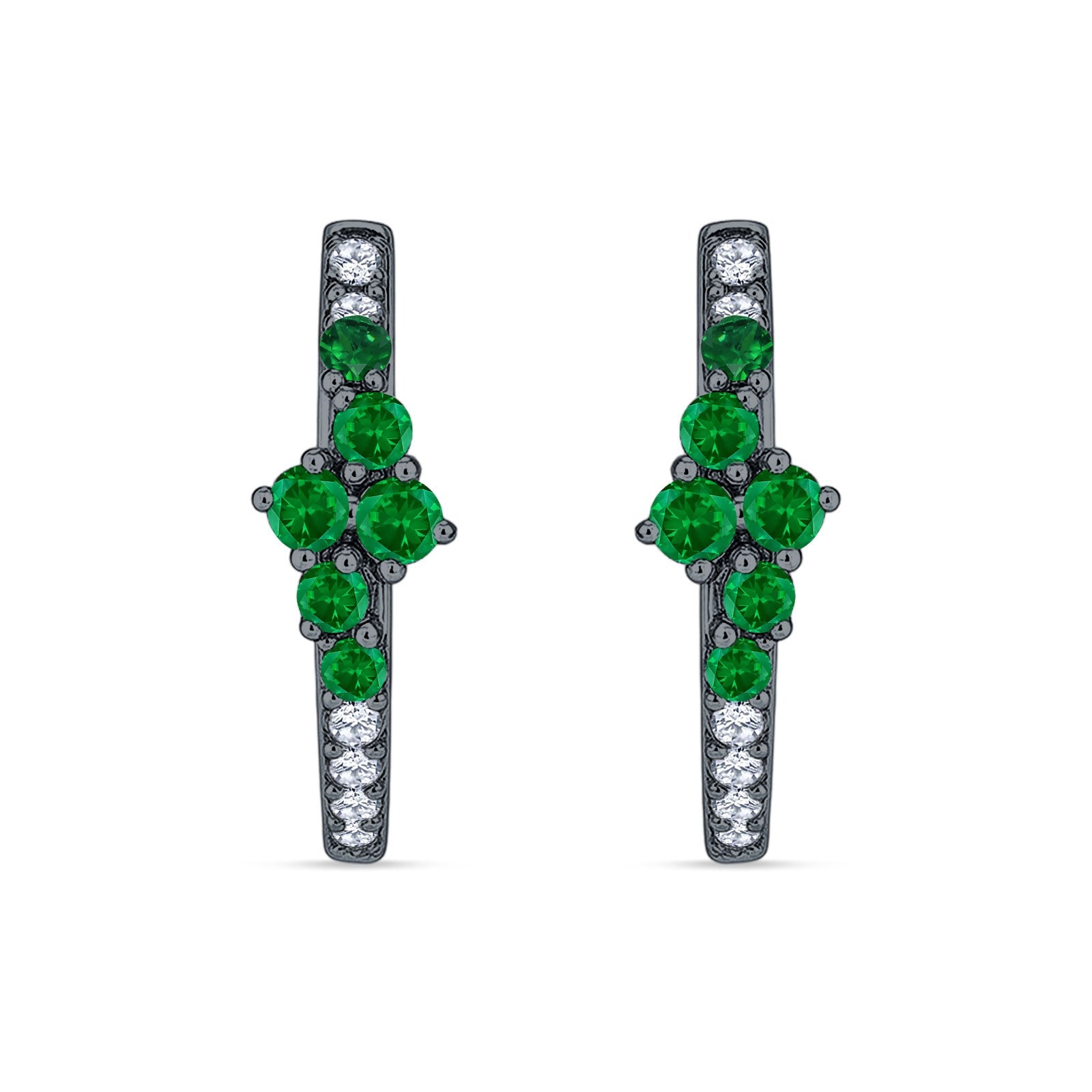 Minimalist 12.7mm Round CZ & Green Emerald CZ Hoop Earrings 925 Sterling Silver