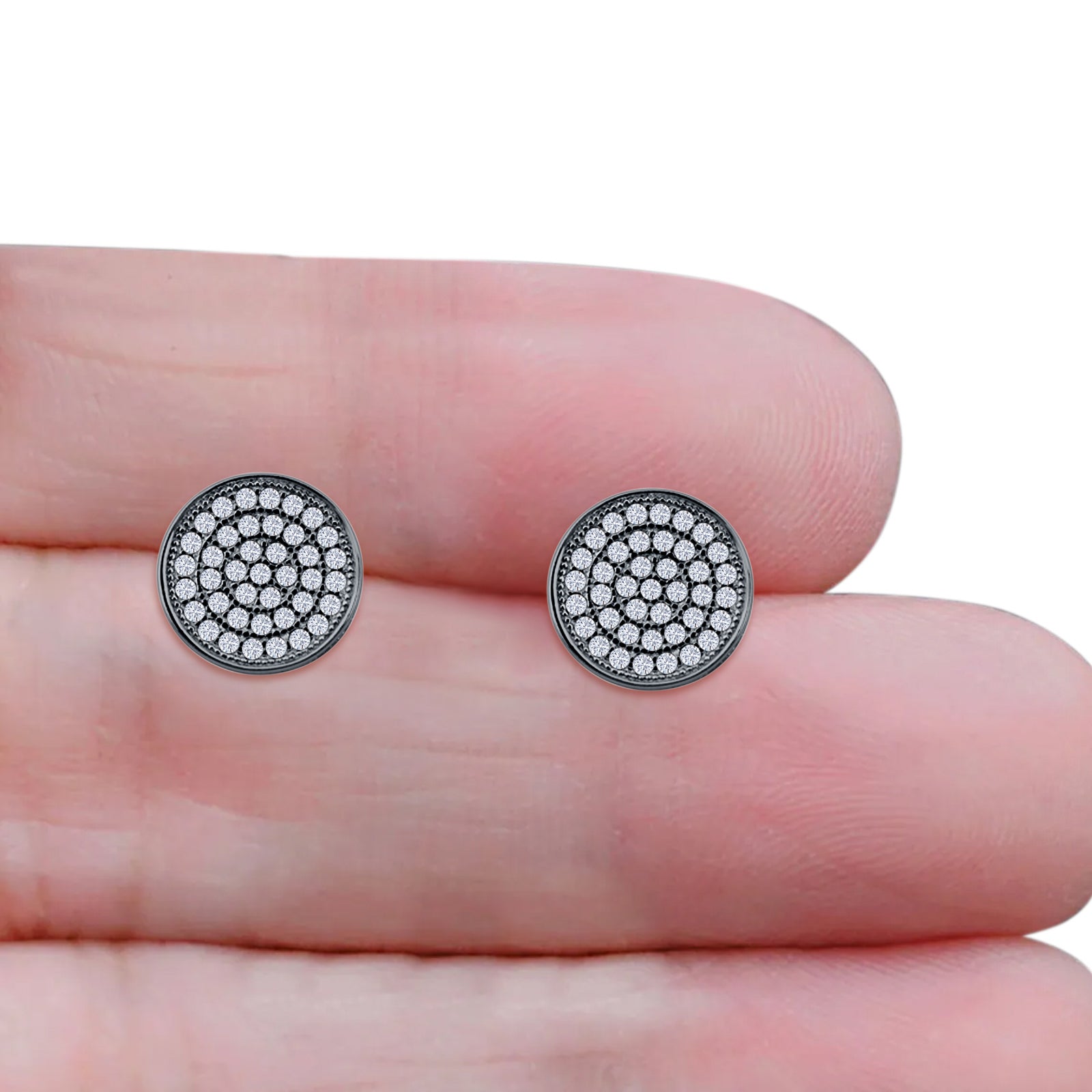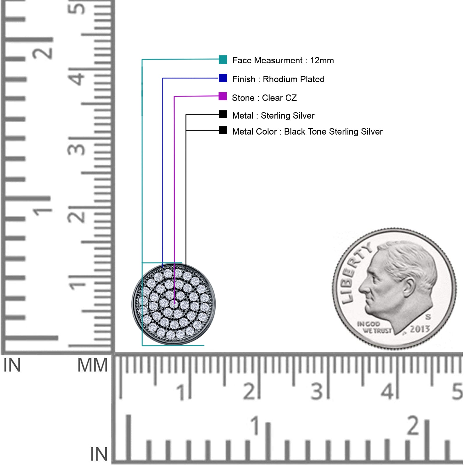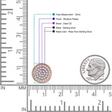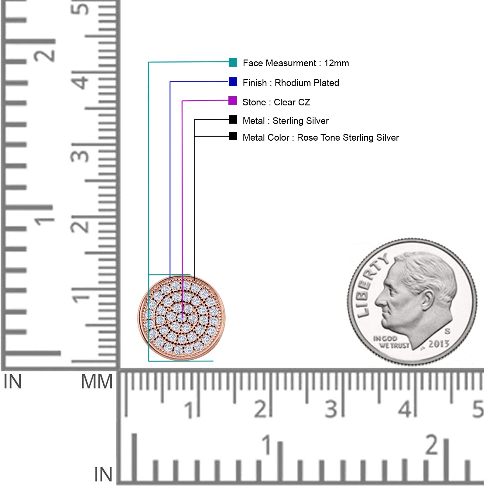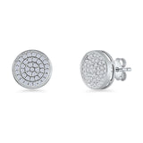 Minimalist 12mm Round Stud Earrings Cluster Cubic Zirconia 925 Sterling Silver