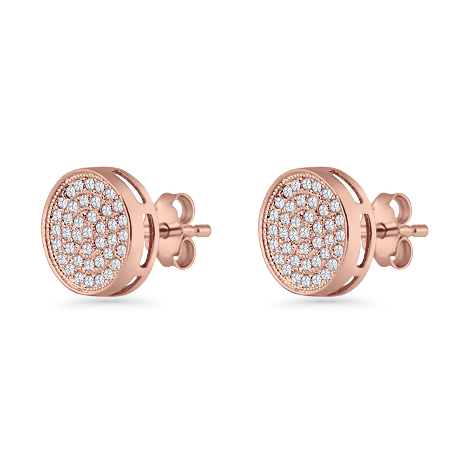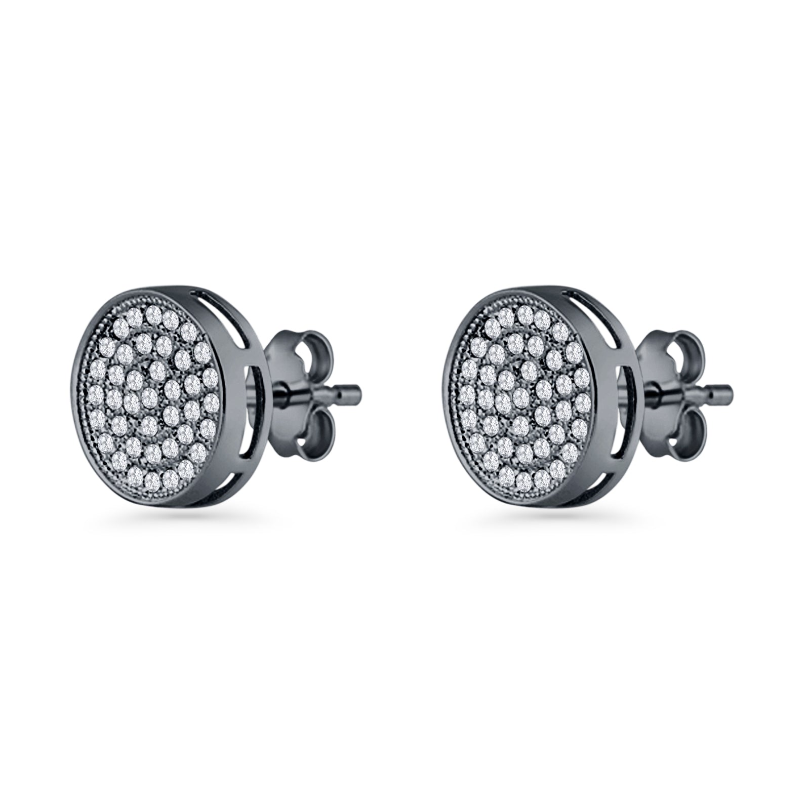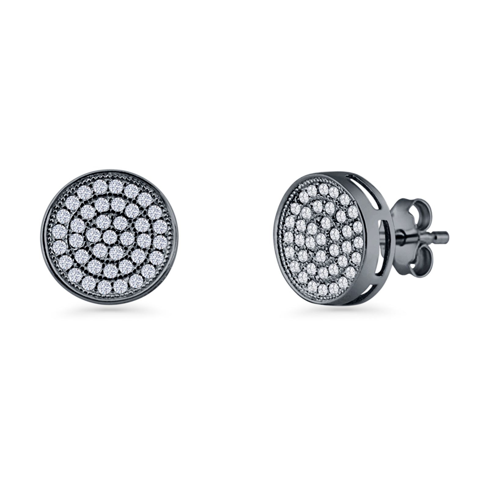 Minimalist 12mm Round Stud Earrings Cluster Cubic Zirconia 925 Sterling Silver