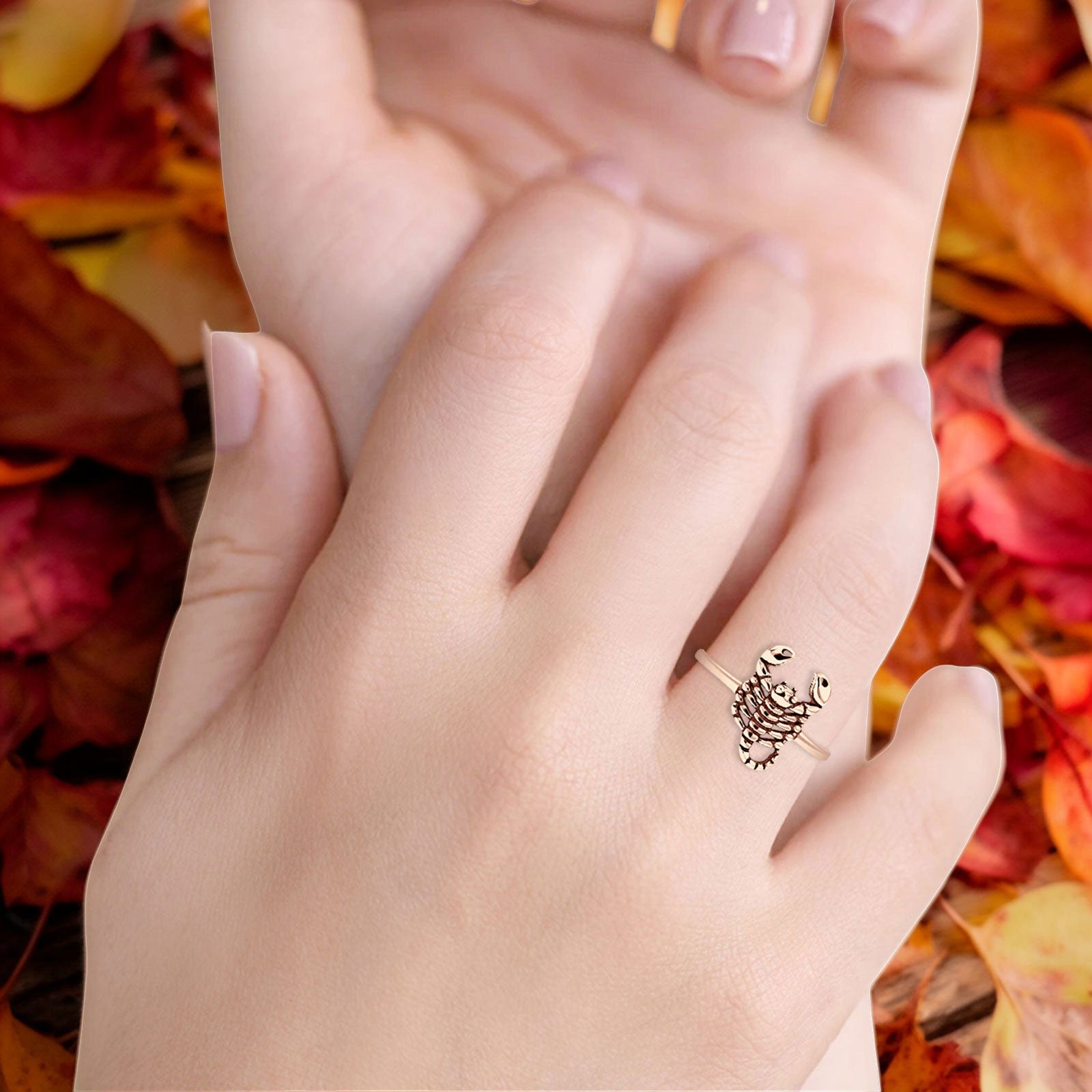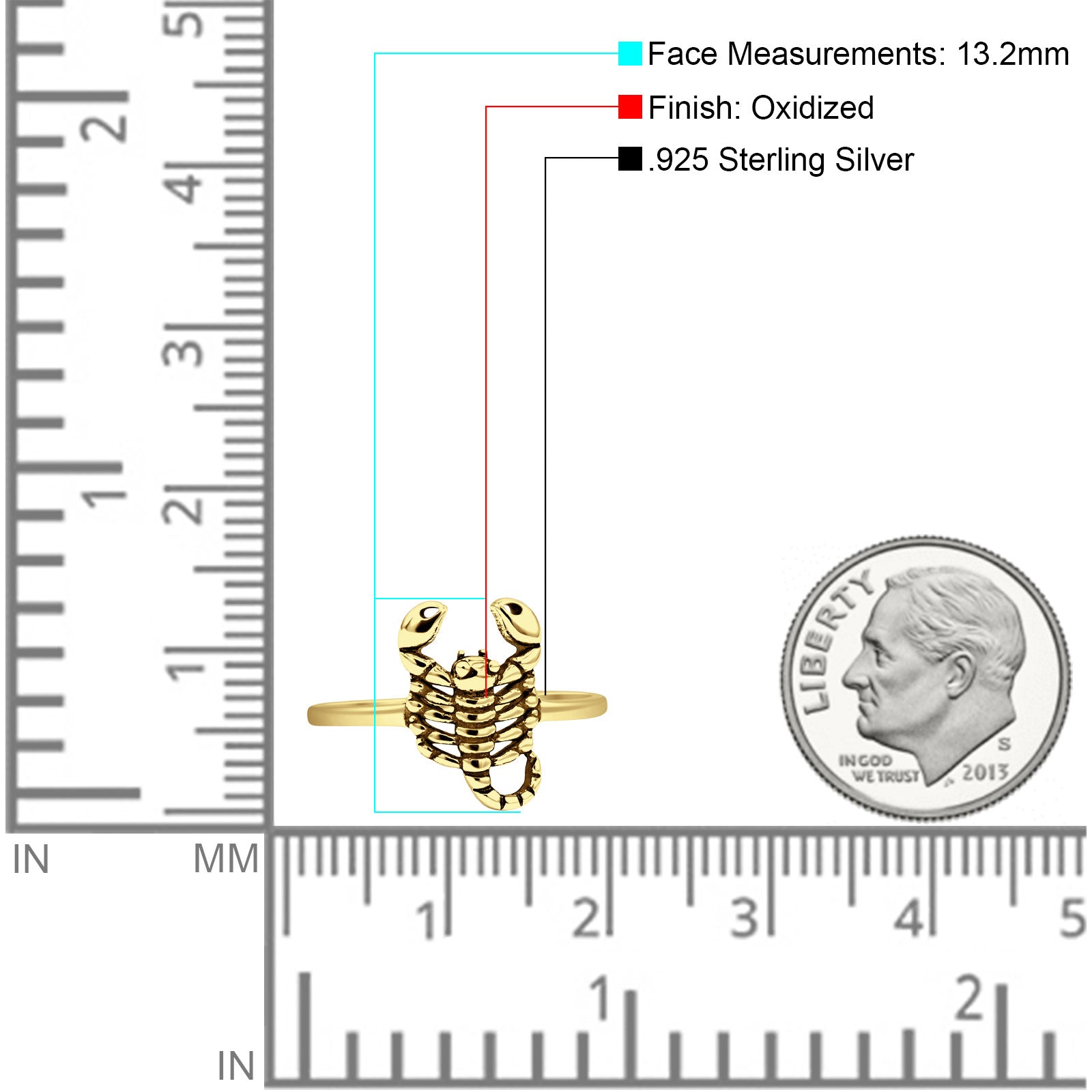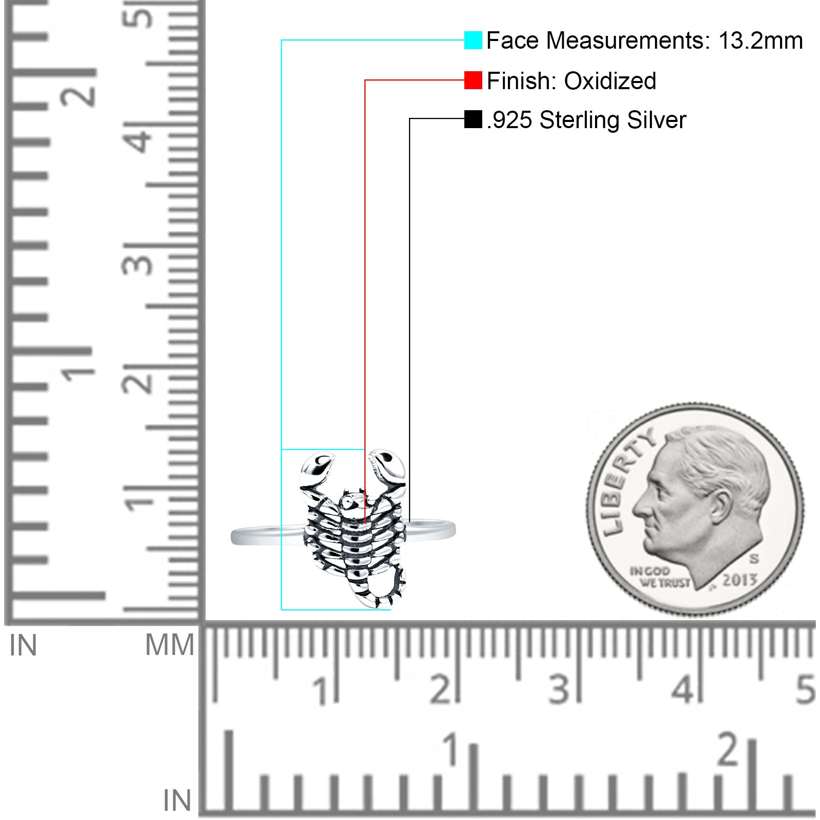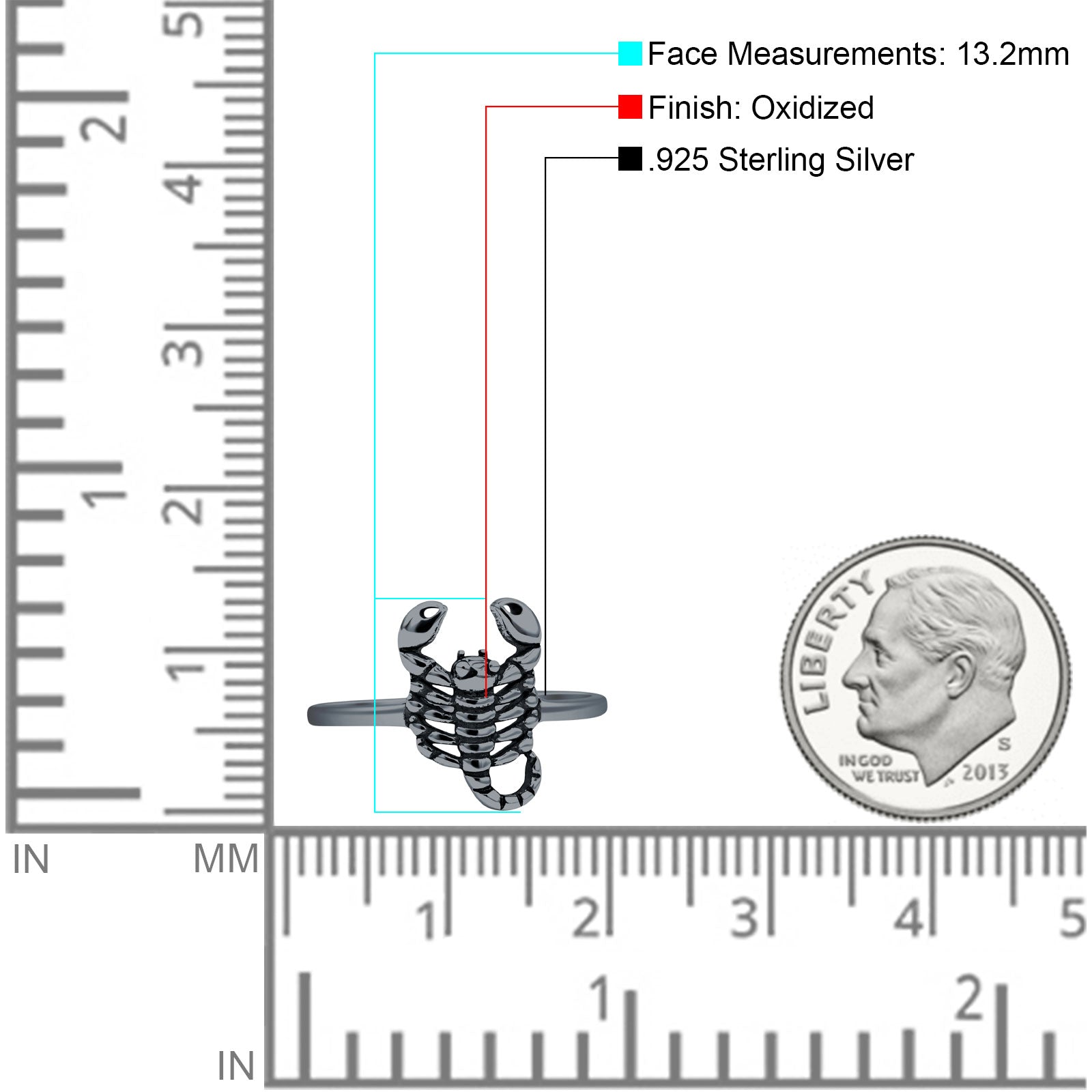 Minimalist 13.2mm Scorpion Ring Oxidized 925 Sterling Silver