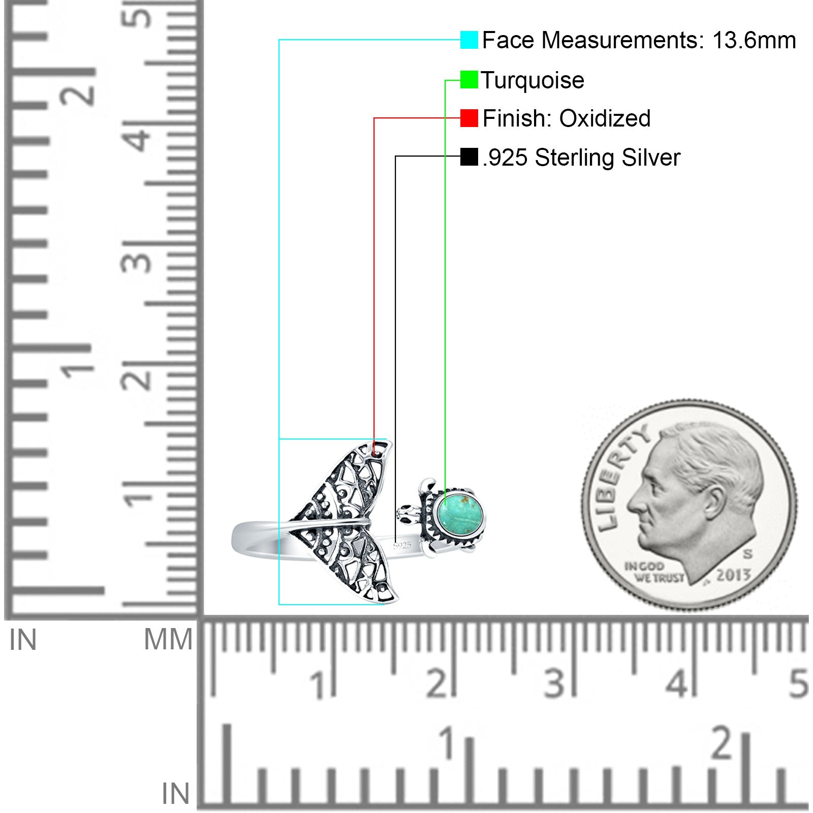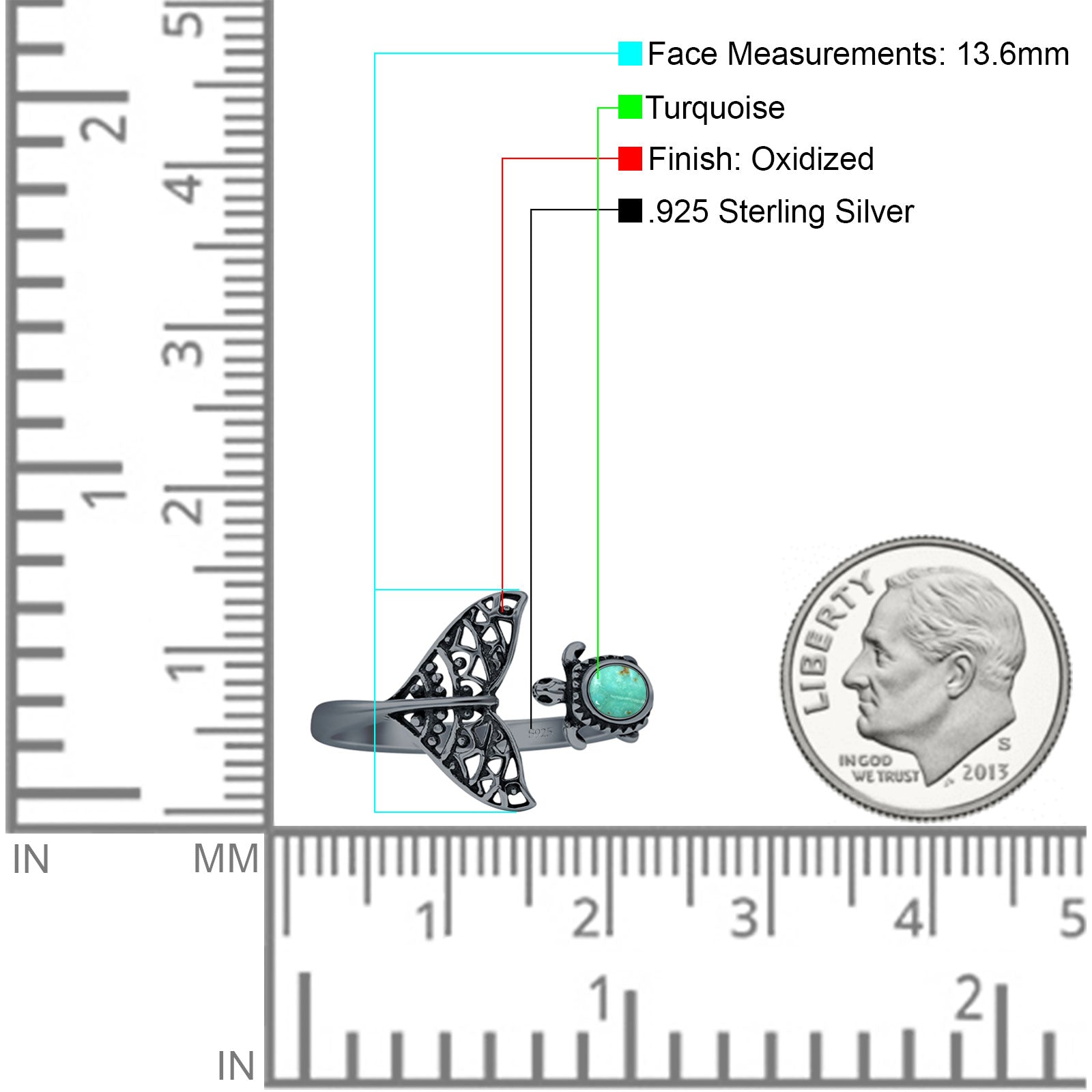 Design: Oval Turquoise Turtle & Whale Tail Ring.