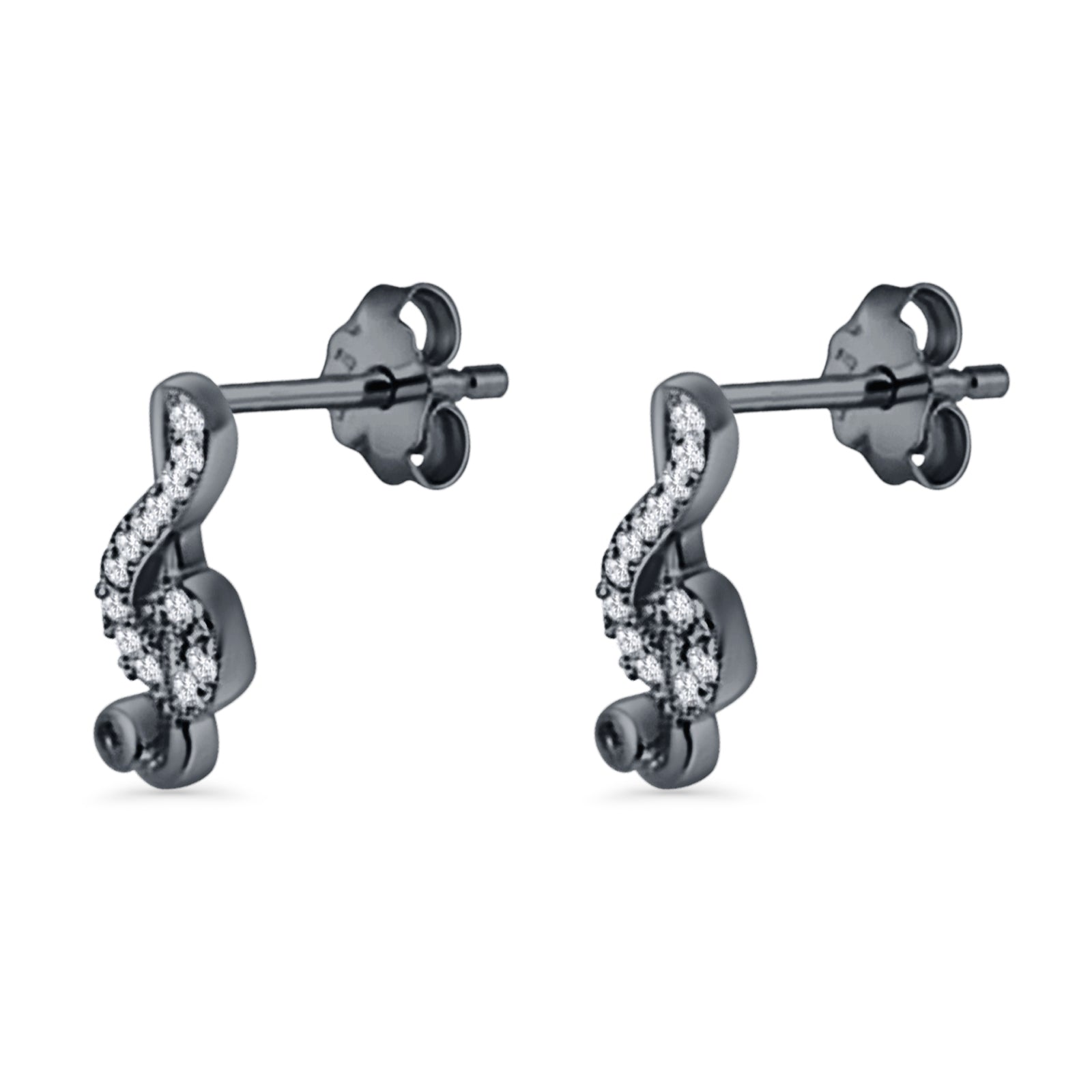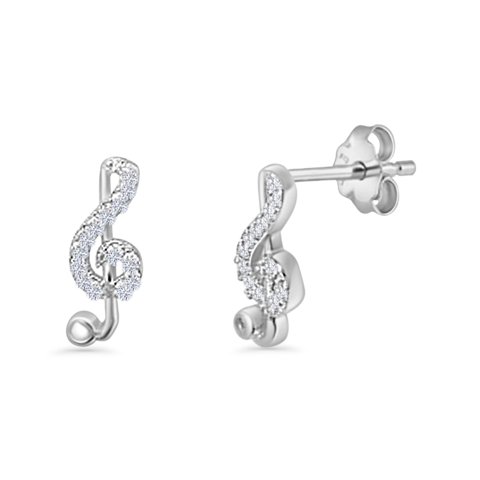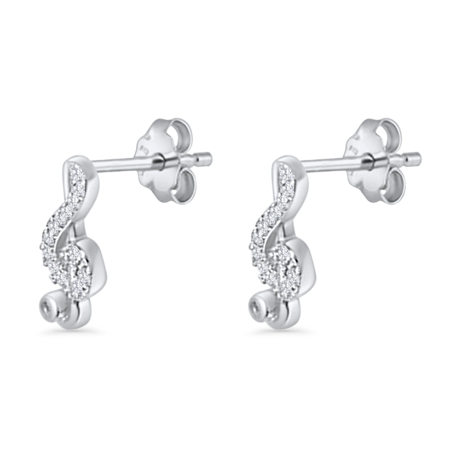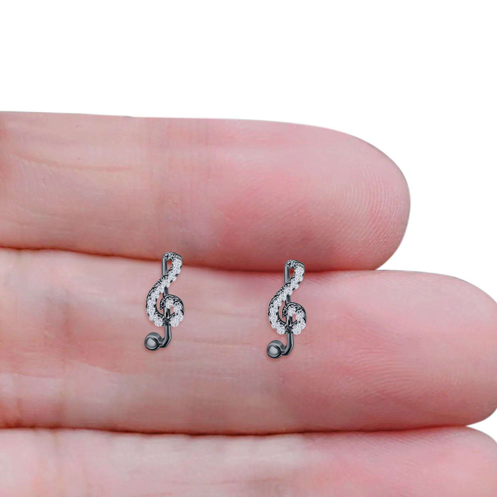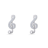 Minimalist 13mm Music Note Stud Earrings Cubic Zirconia 925 Sterling Silver