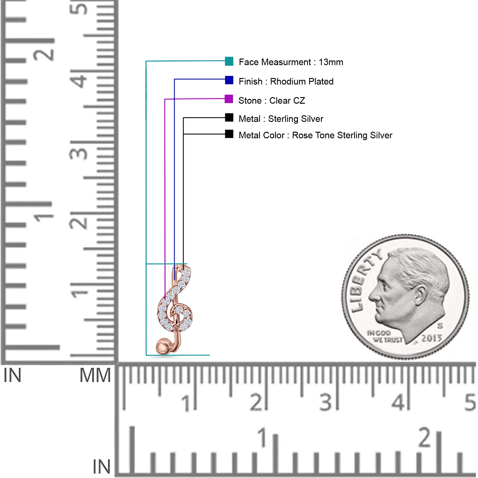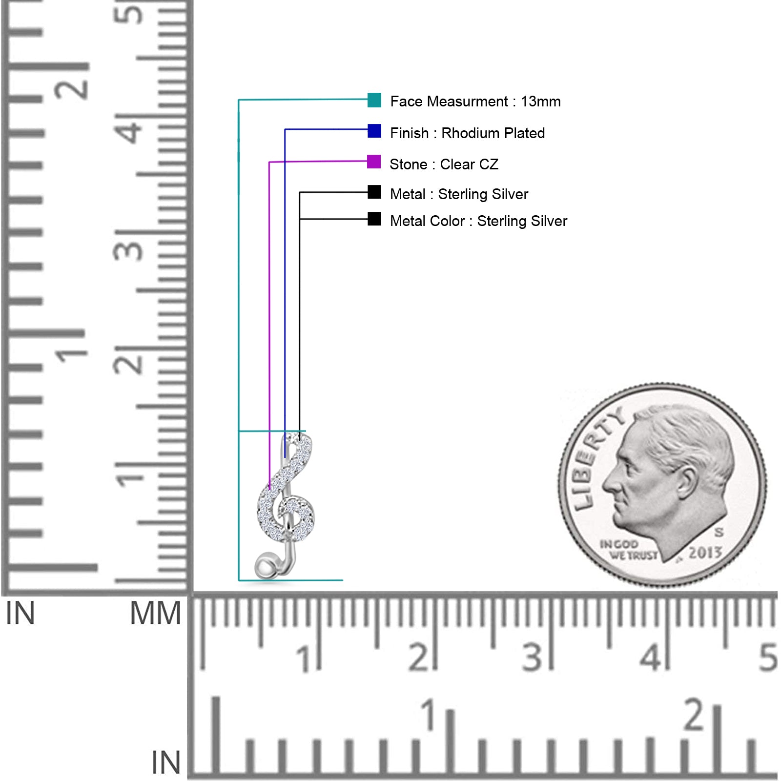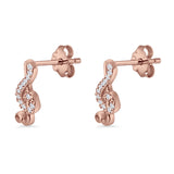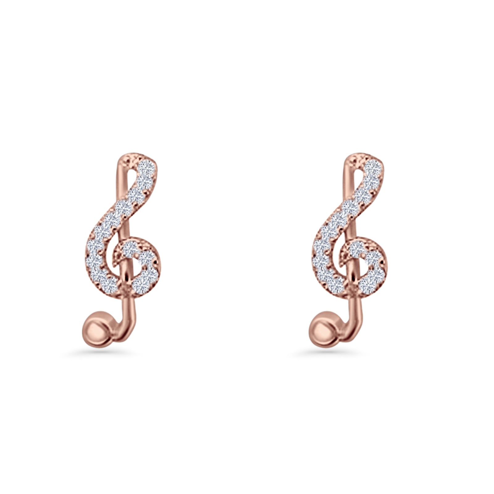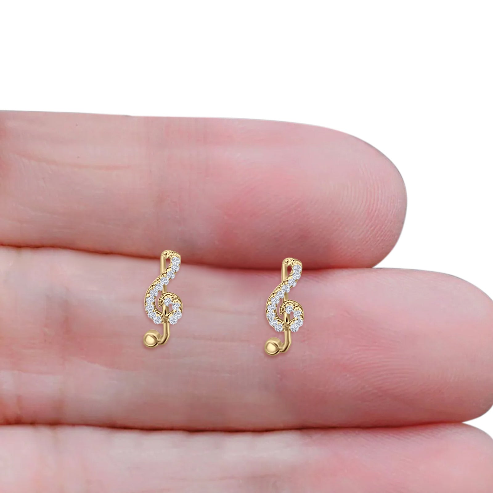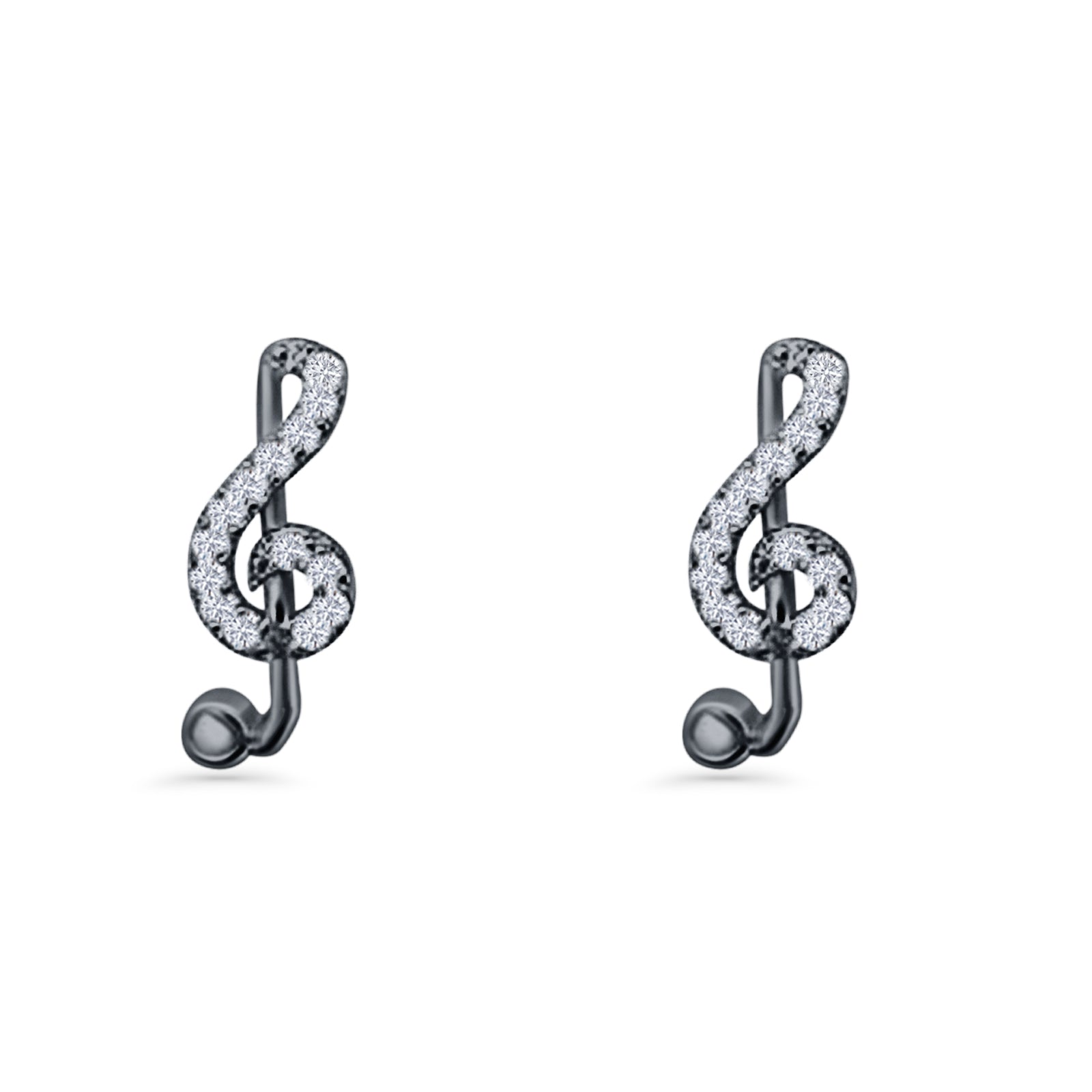 Minimalist 13mm Music Note Stud Earrings Cubic Zirconia 925 Sterling Silver
