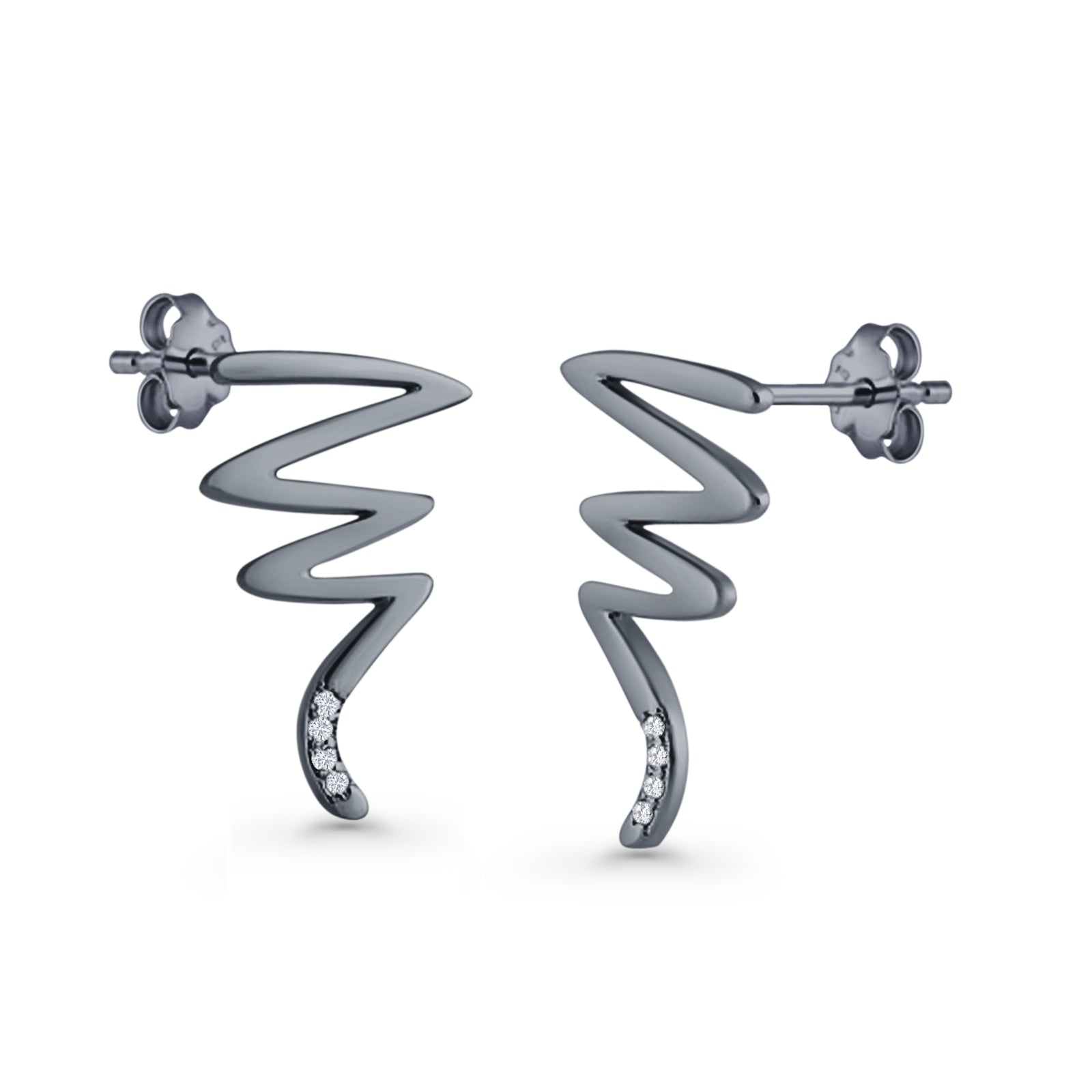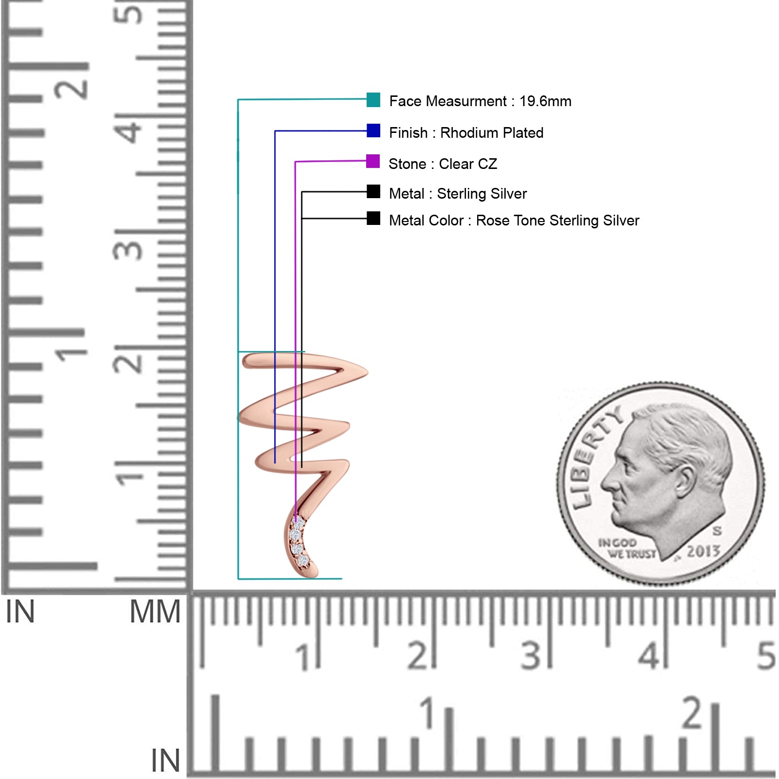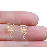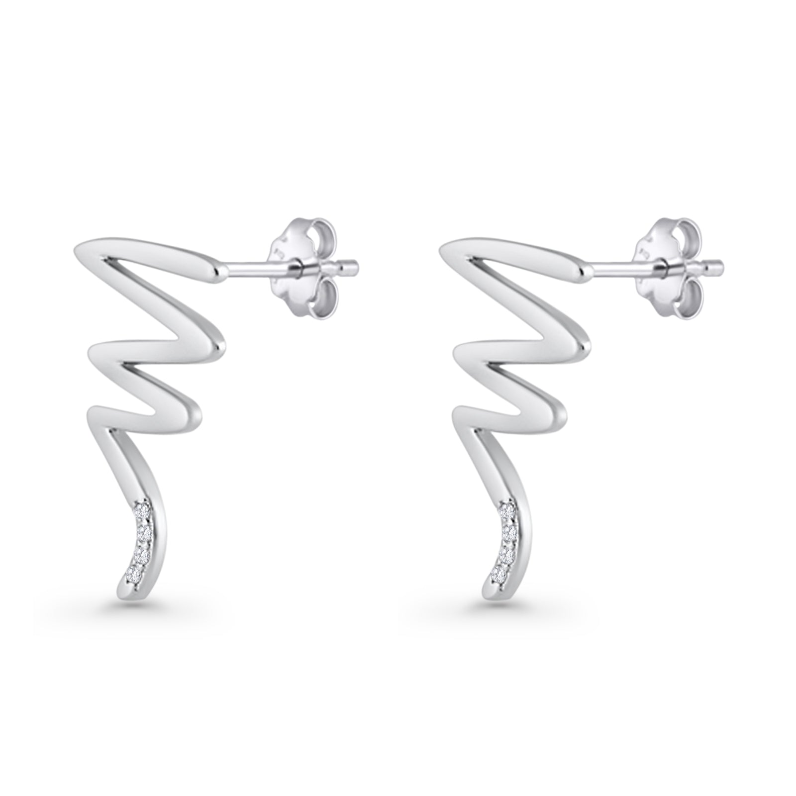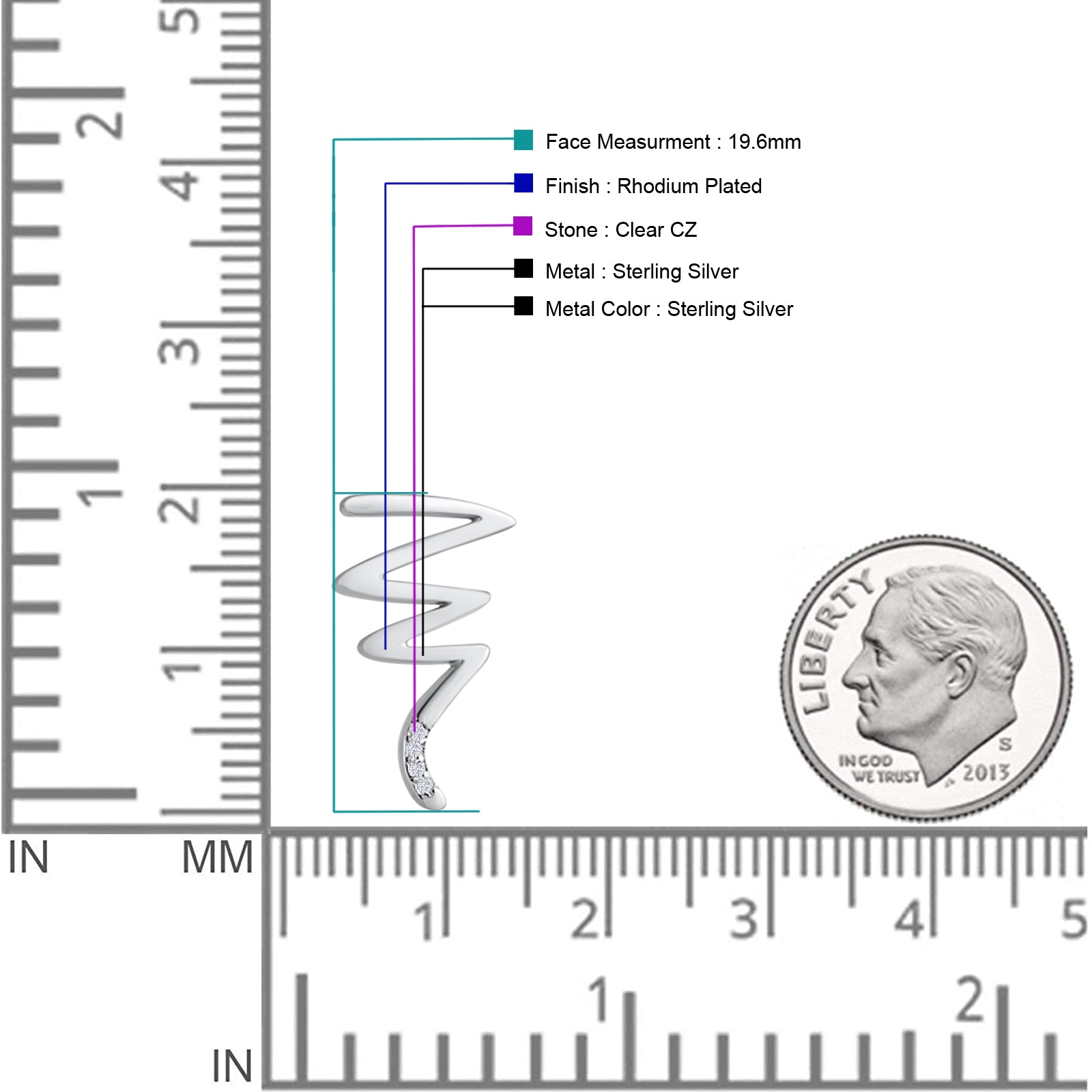 Minimalist 19.6mm Zig Zag Stud Earrings Cubic Zirconia 925 Sterling Silver